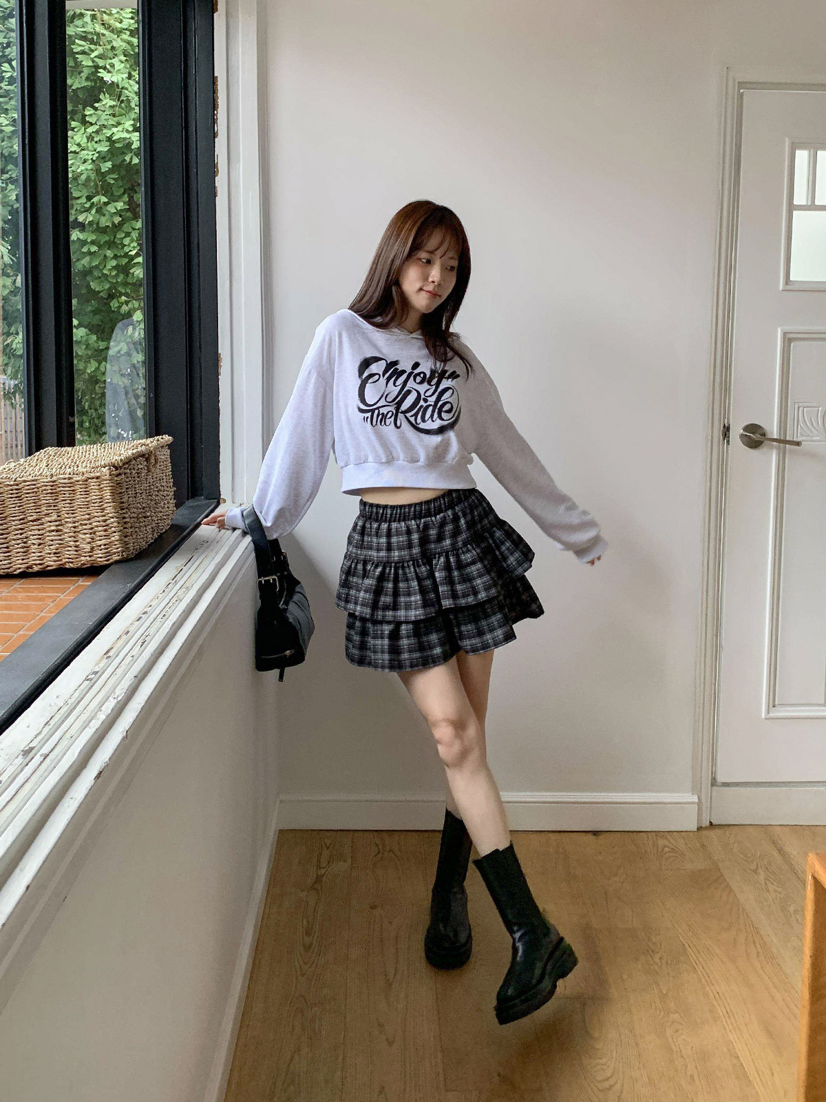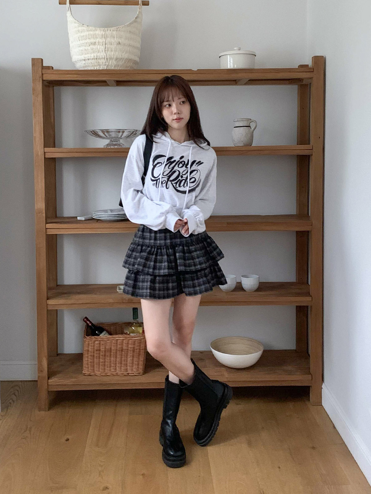 걸리시한 무드를 연출해 주는 체크 패턴의 캉캉 스커트
