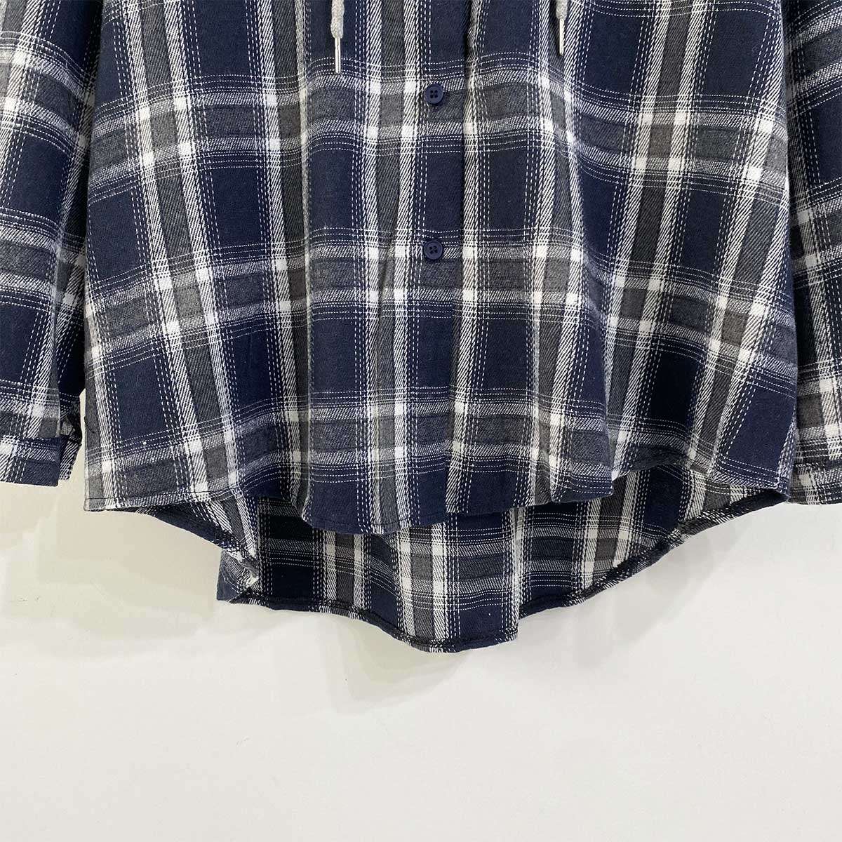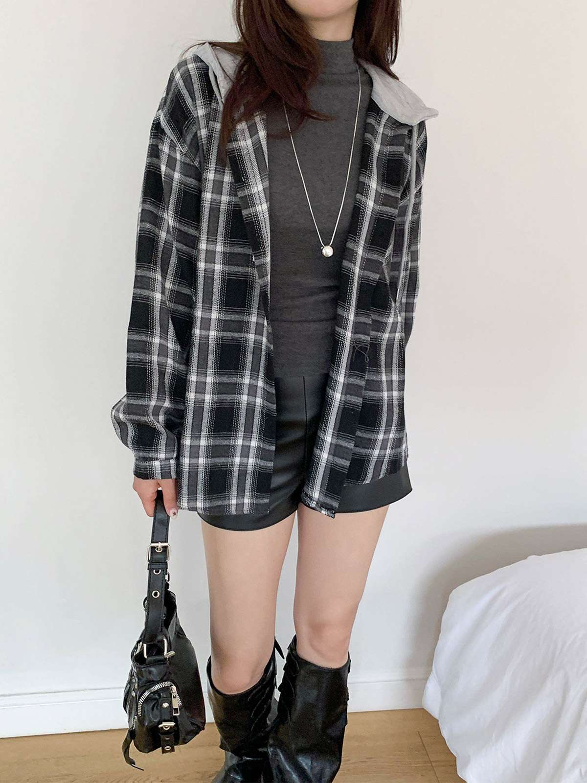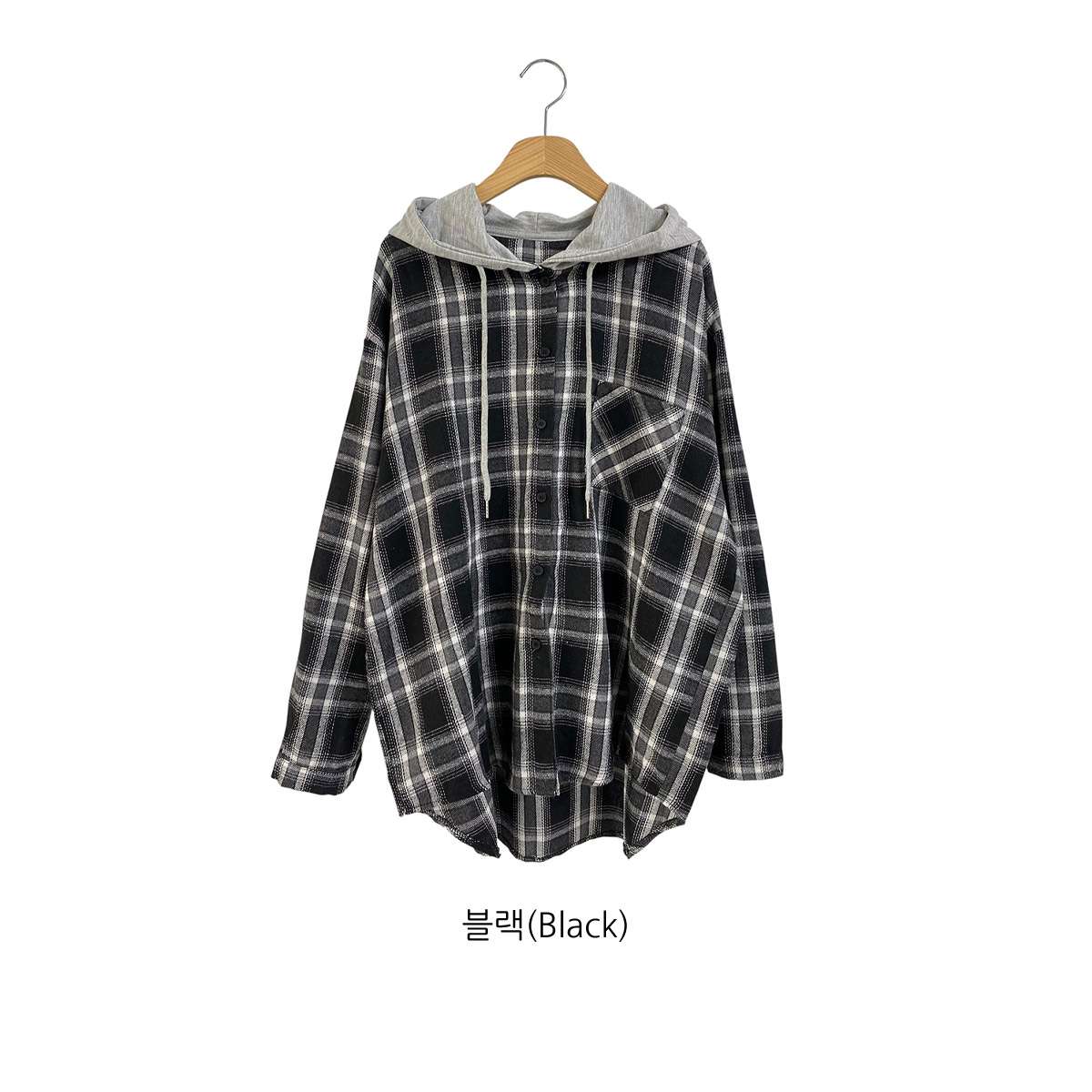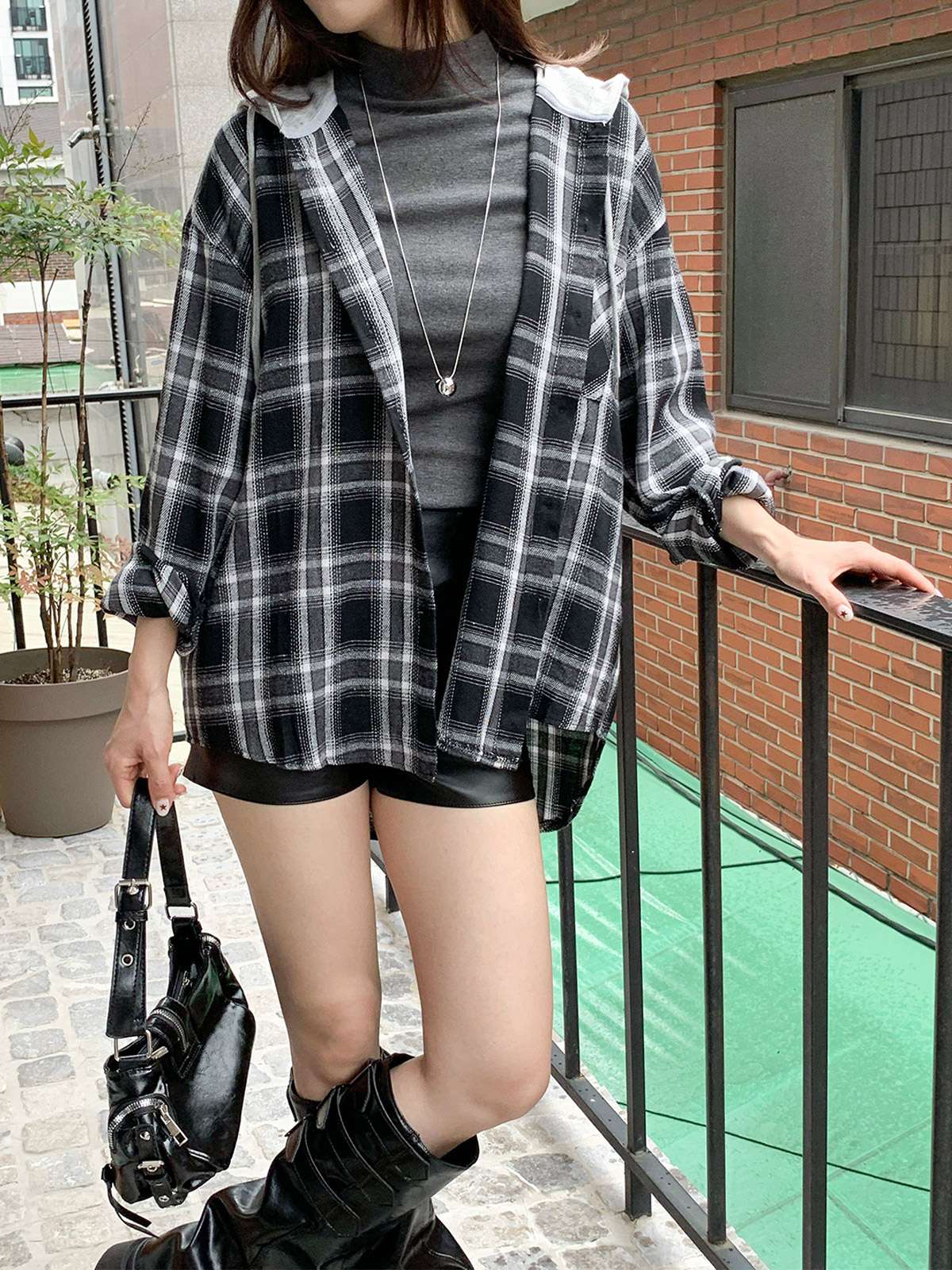 캐주얼한 후드와 클래식한 체크 패턴이 믹스된 오버핏 셔츠