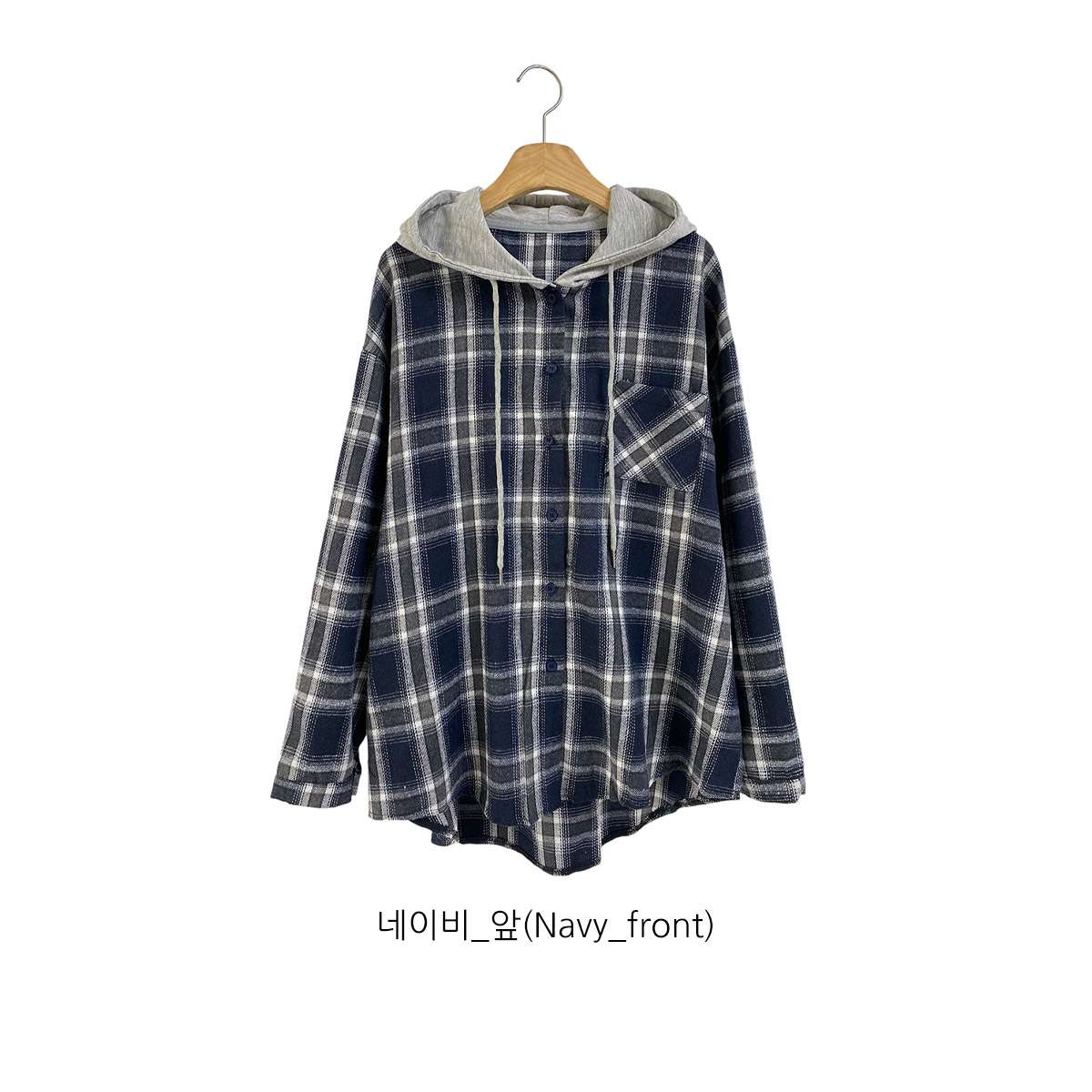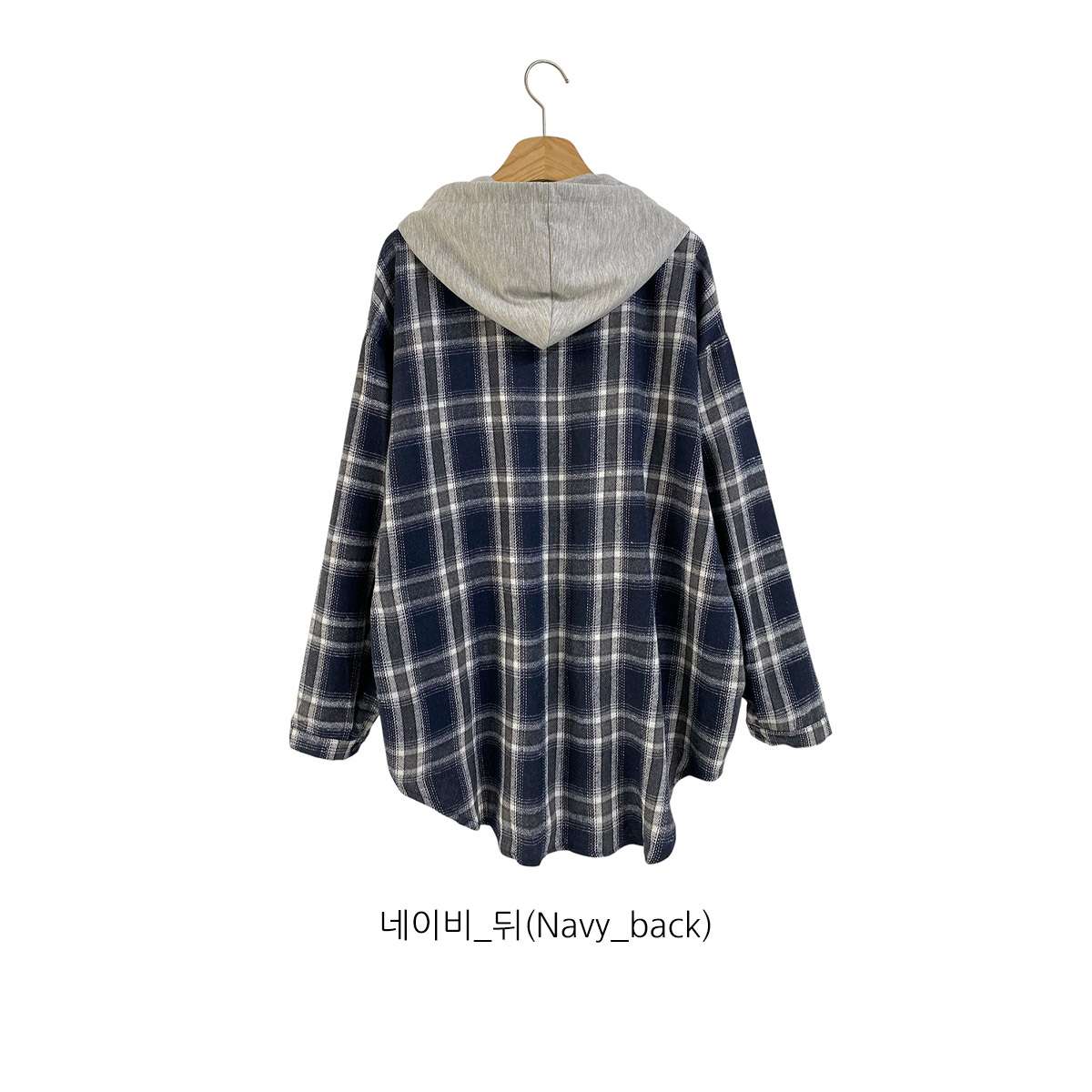 [ NB3317K59-호래나 오버핏 사각 체크 후드 남방 ]