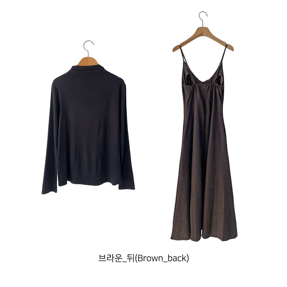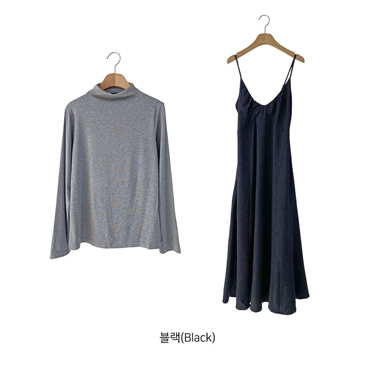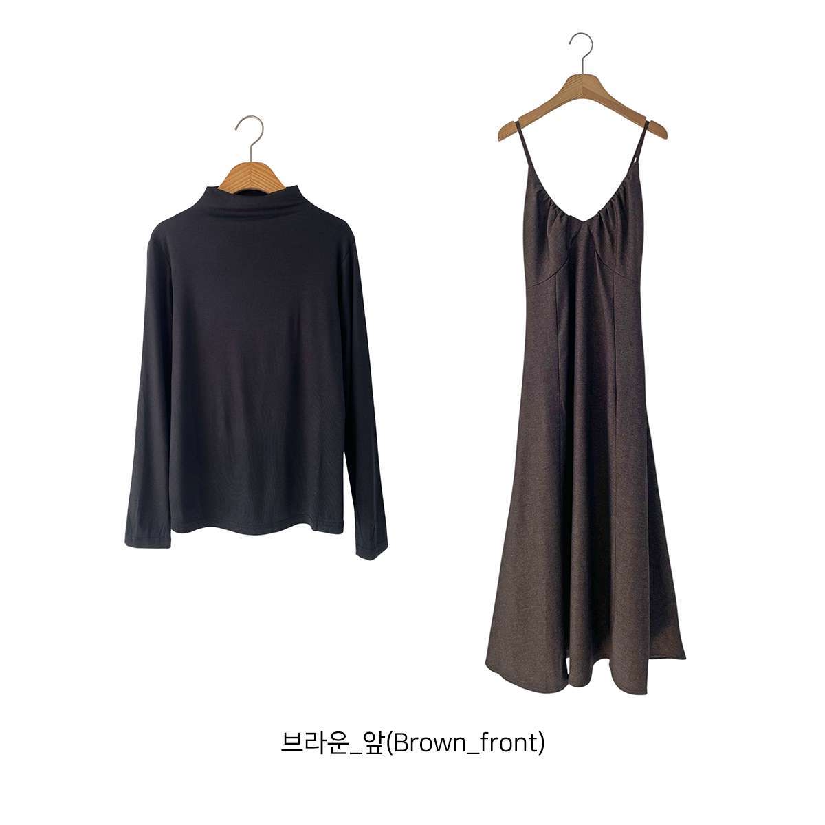 기본 목폴라 긴팔티와 플레어 롱 뷔스티에 원피스가 세트로 구성된 상품