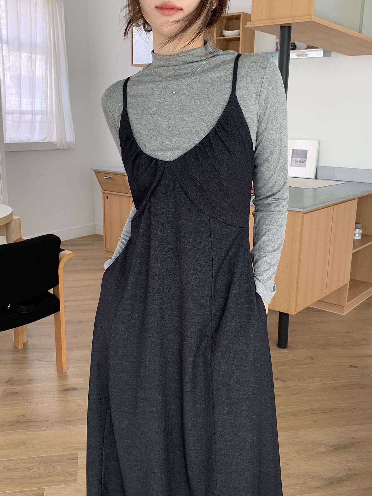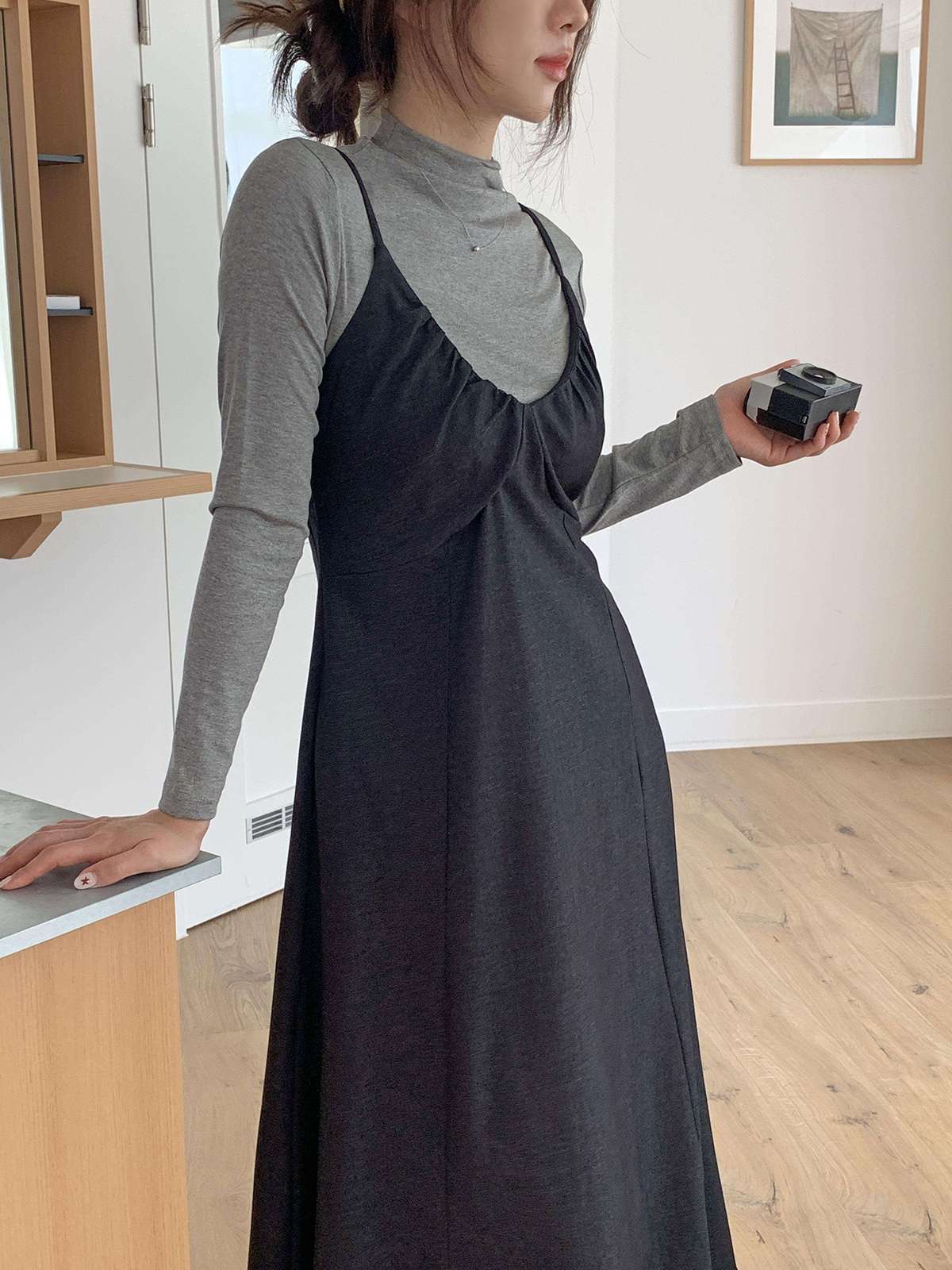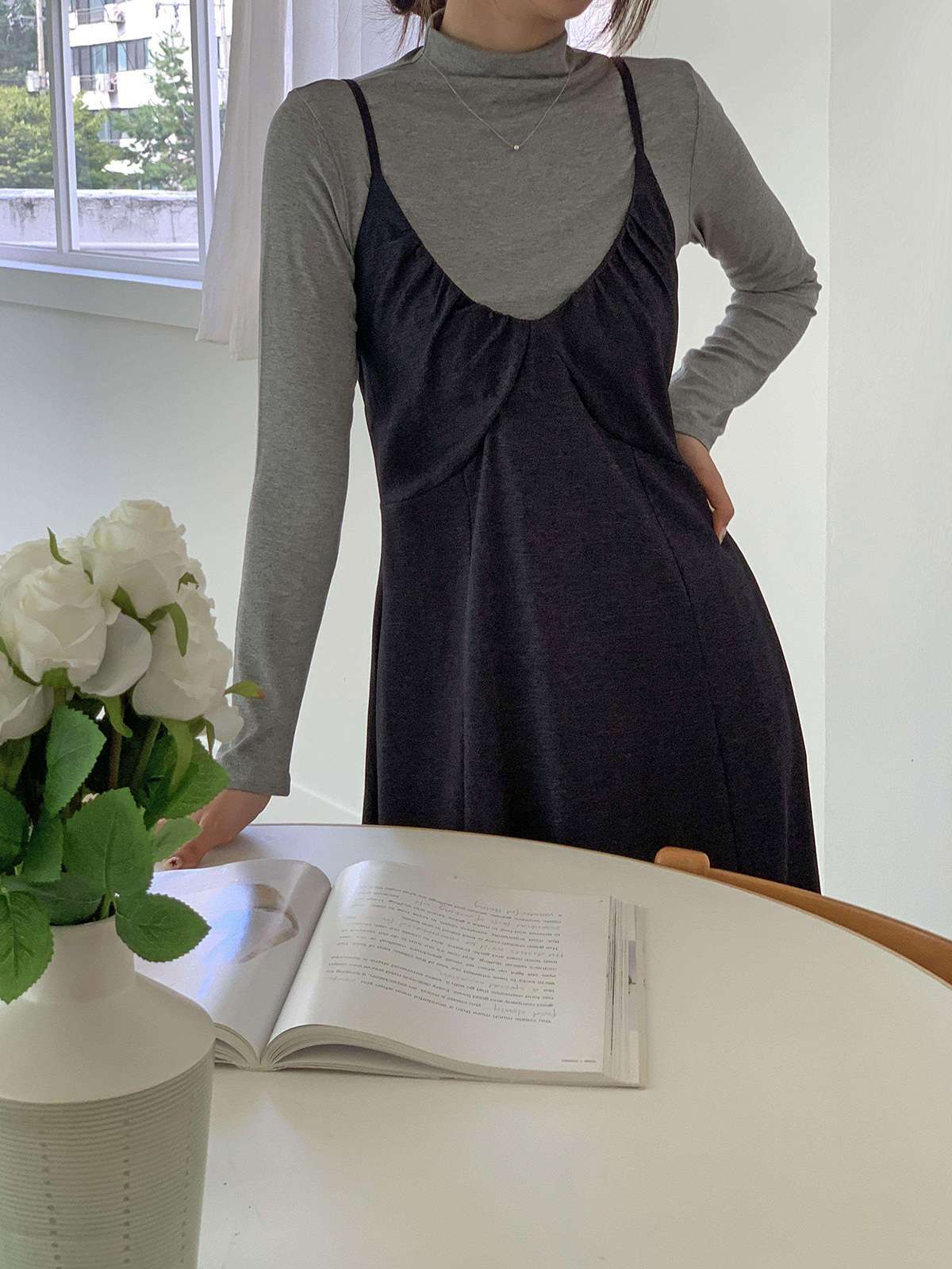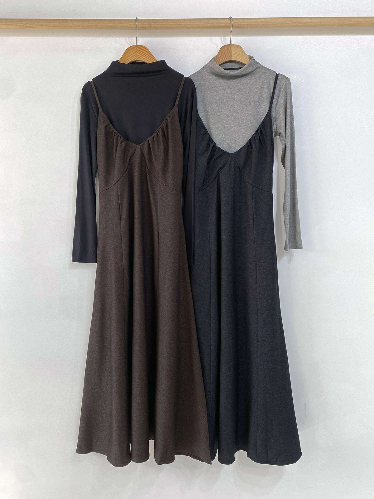 기본 목폴라 긴팔티와 플레어 롱 뷔스티에 원피스가 세트로 구성된 상품