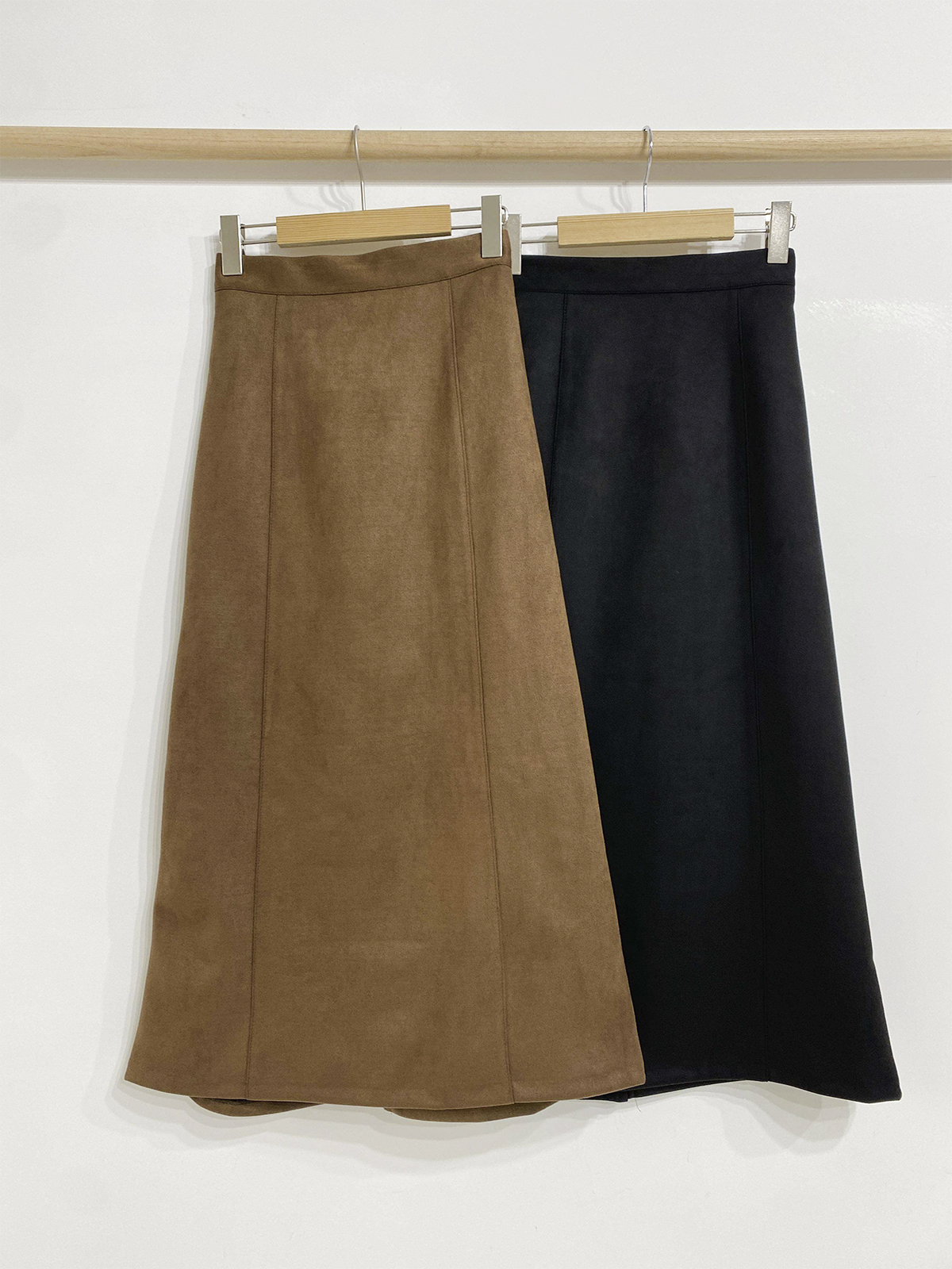 SK7453K59-레로니 밴딩 스웨이드 트임 H라인 롱스커트