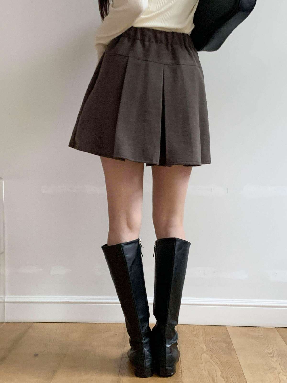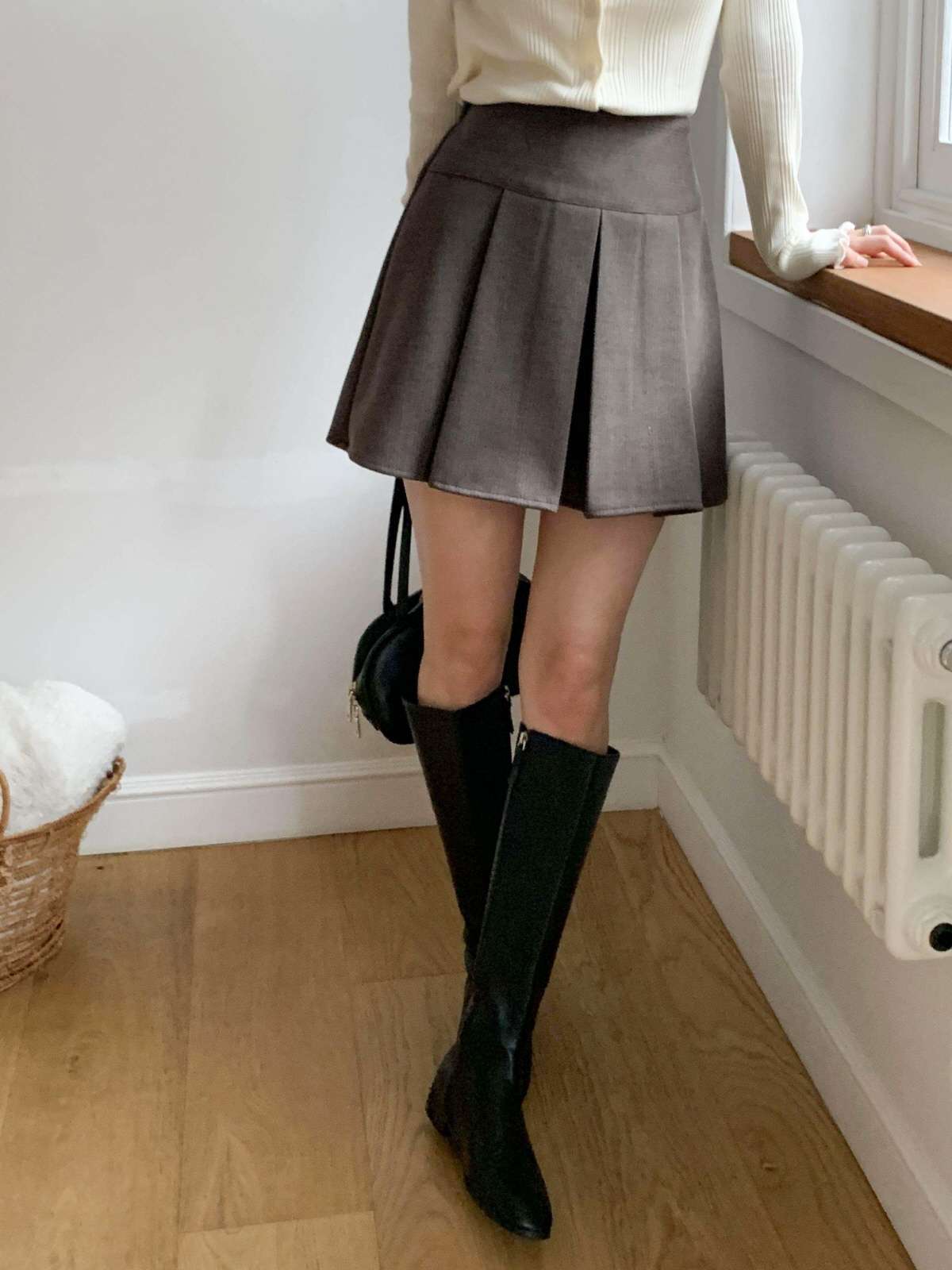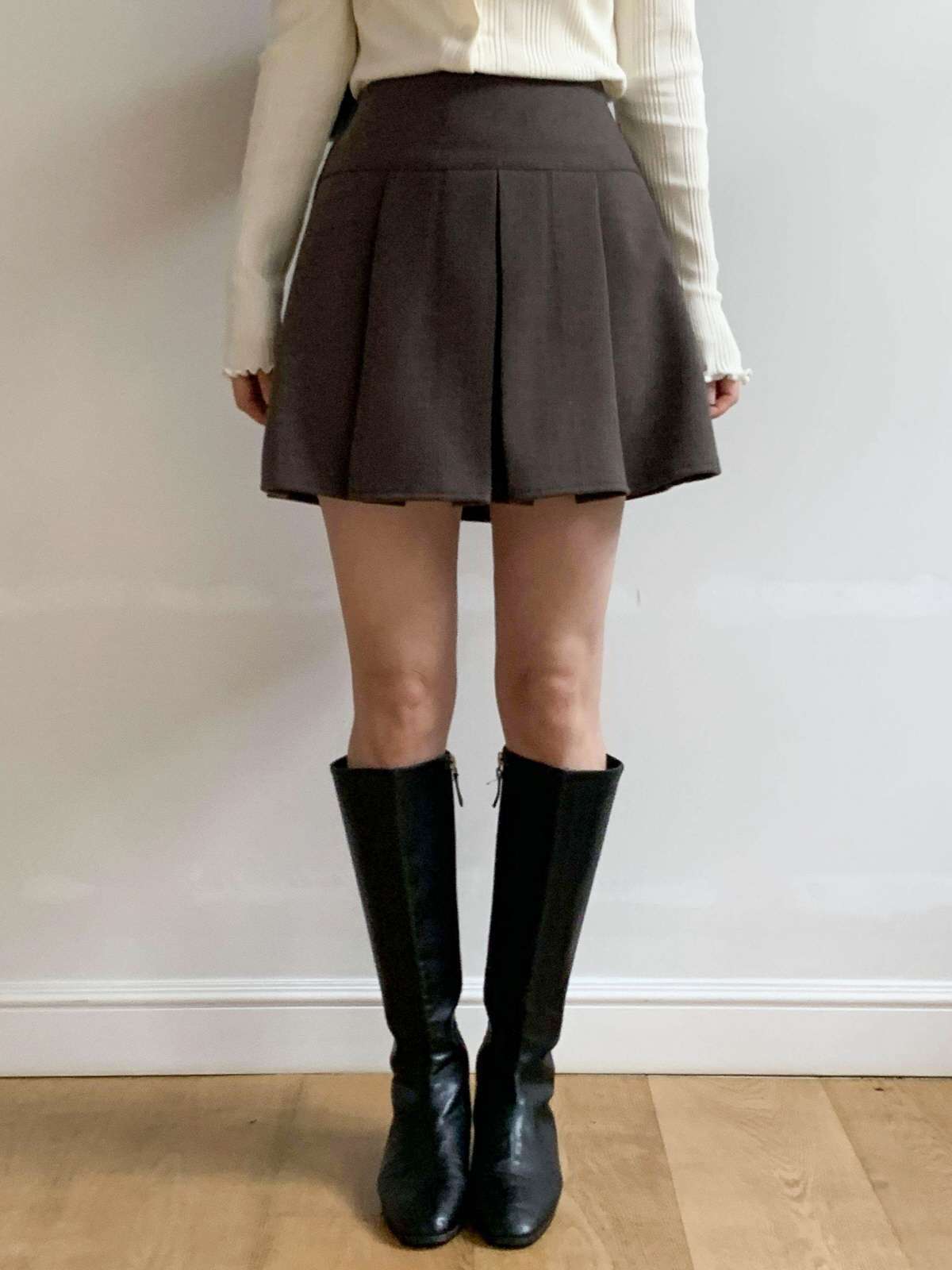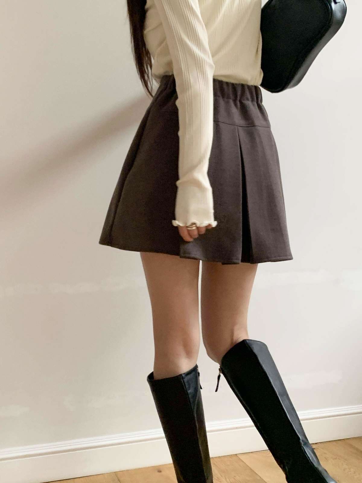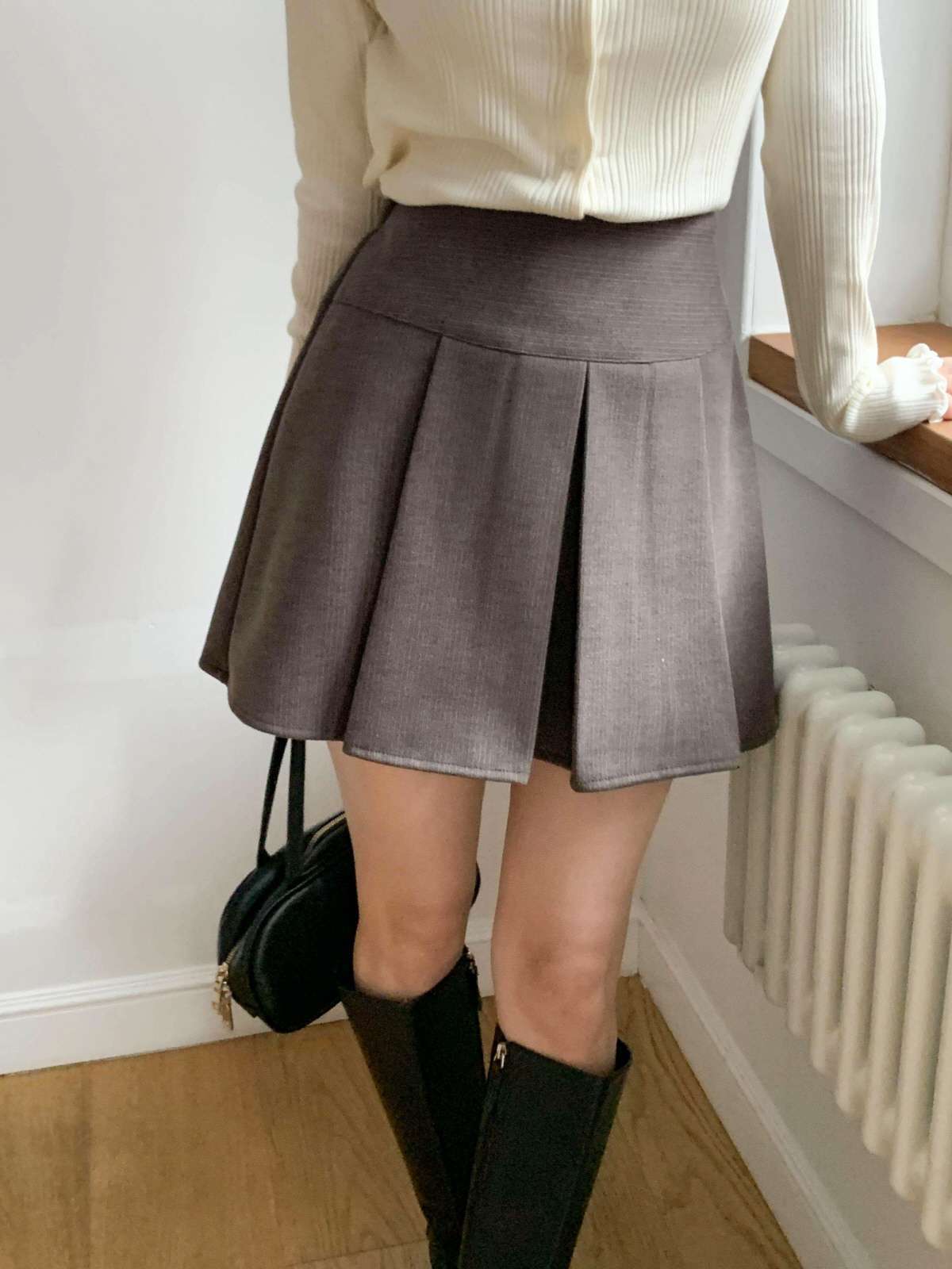 도톰하고 탄탄한 소재의 플리츠 미니스커트