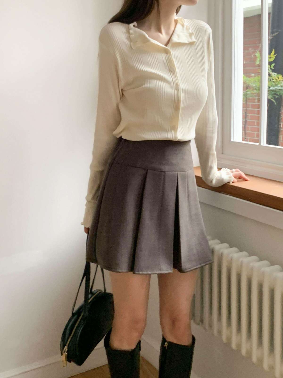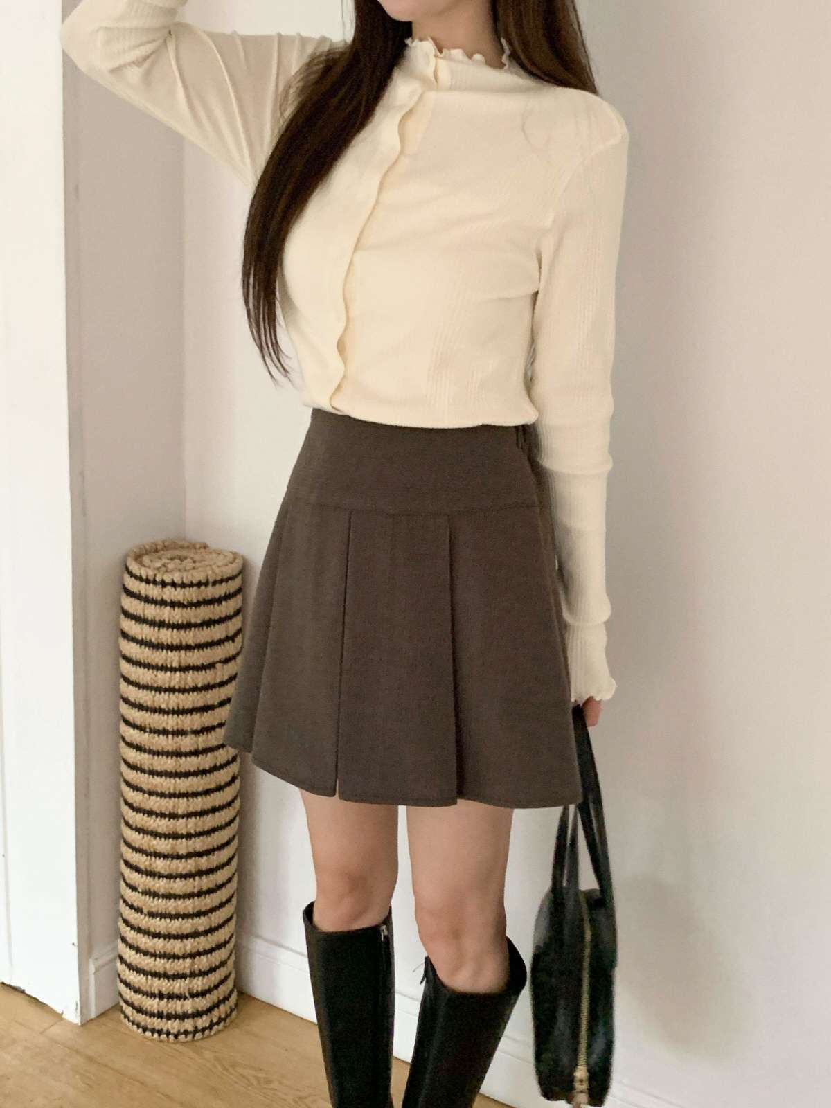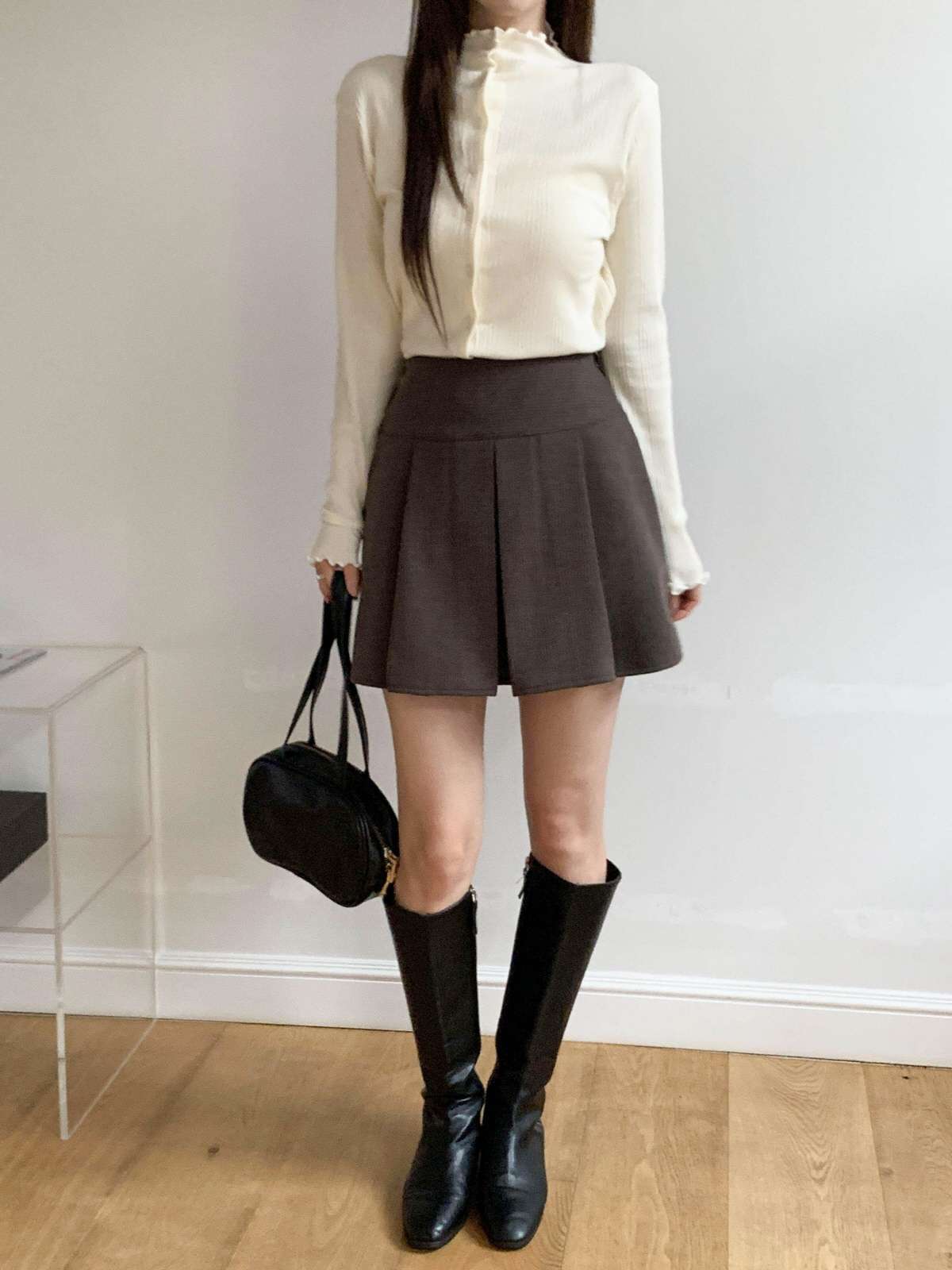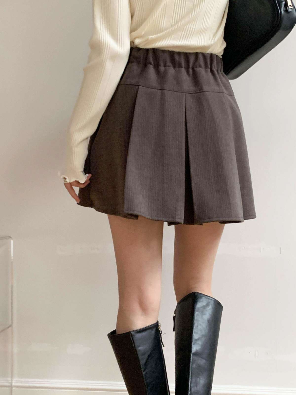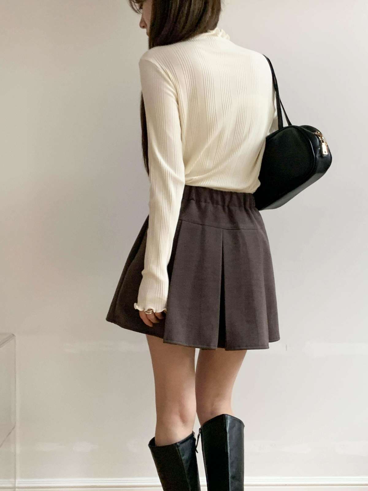 도톰하고 탄탄한 소재의 플리츠 미니스커트