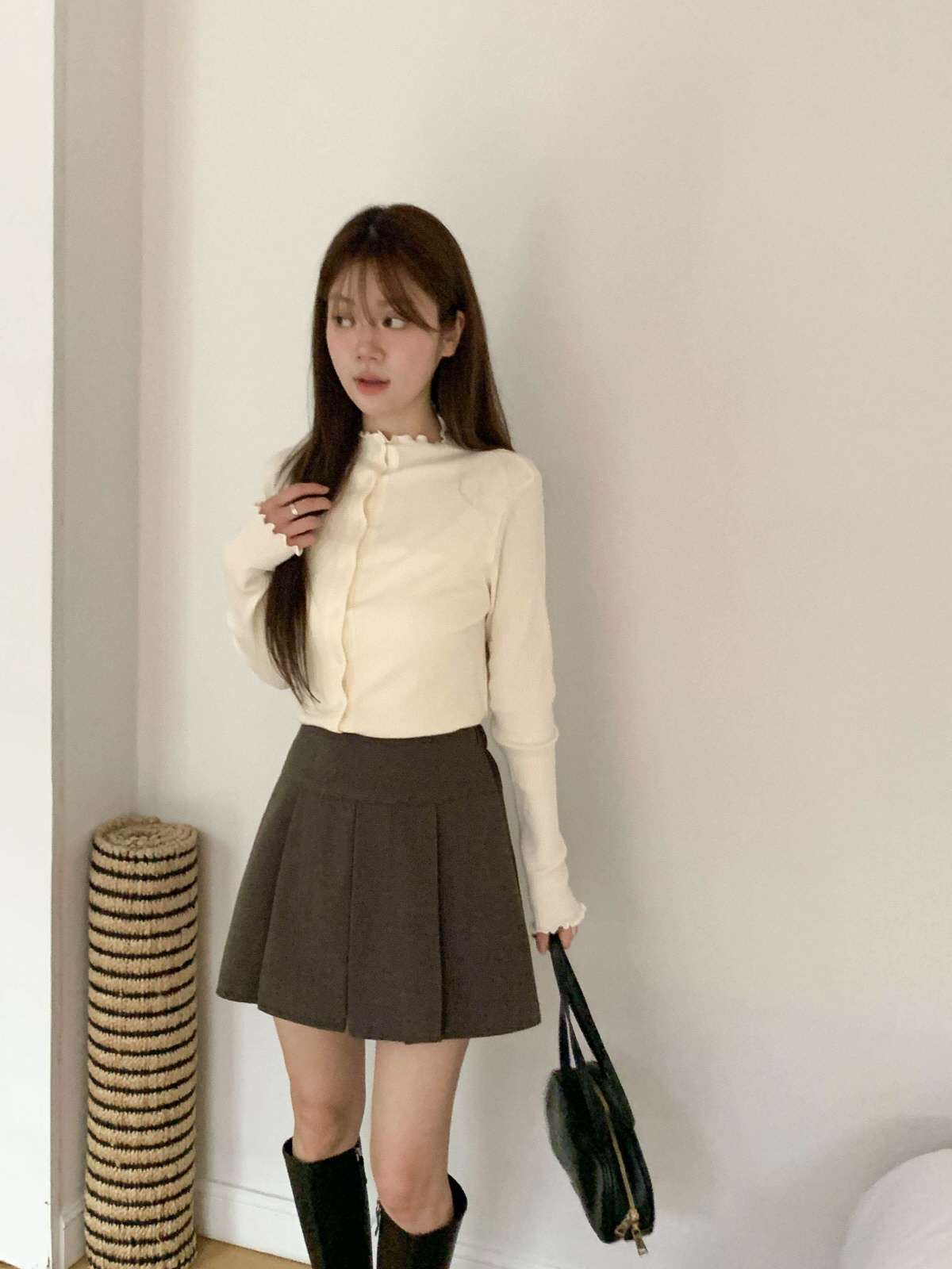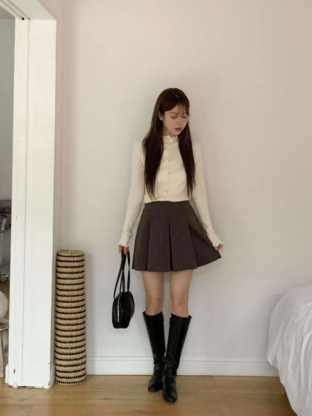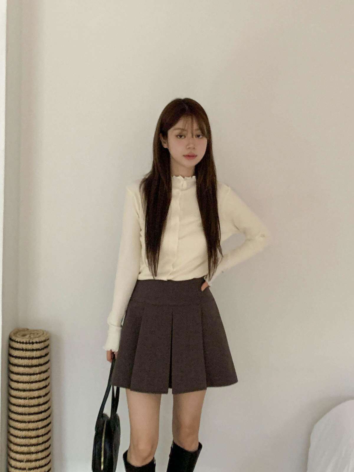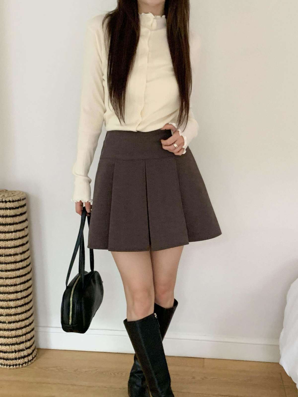도톰하고 탄탄한 소재의 플리츠 미니스커트