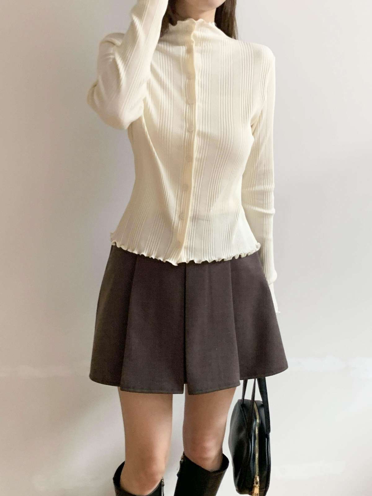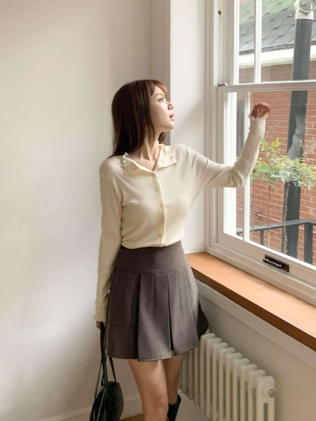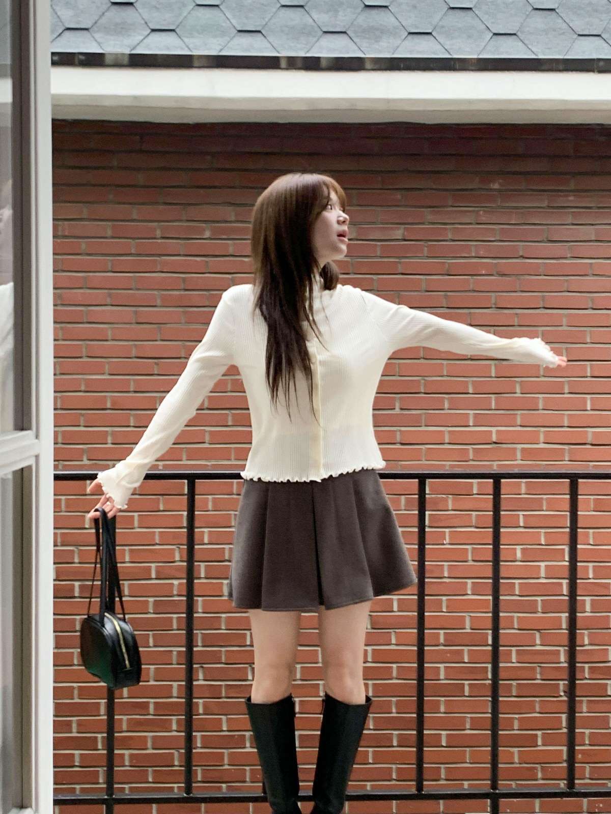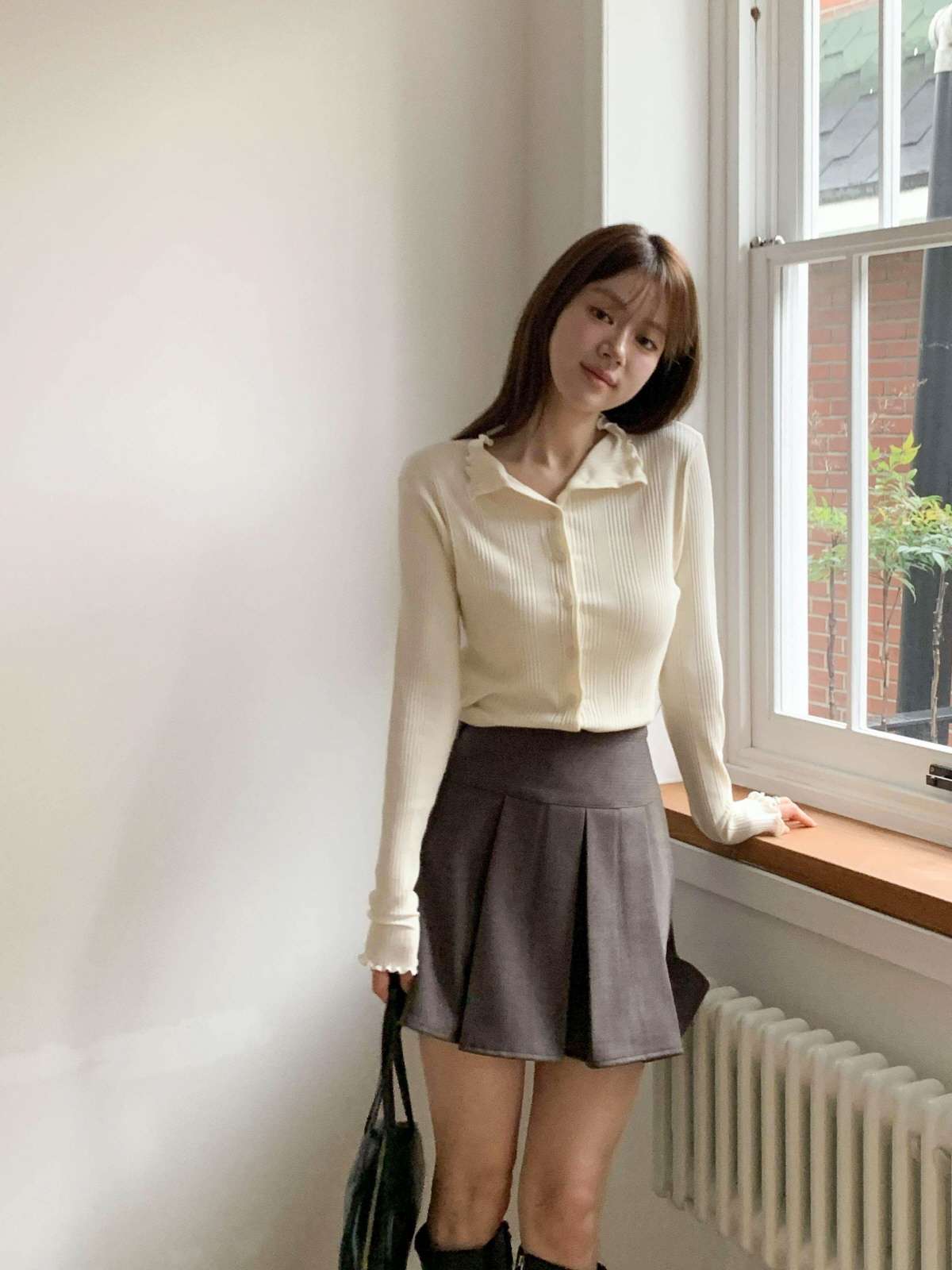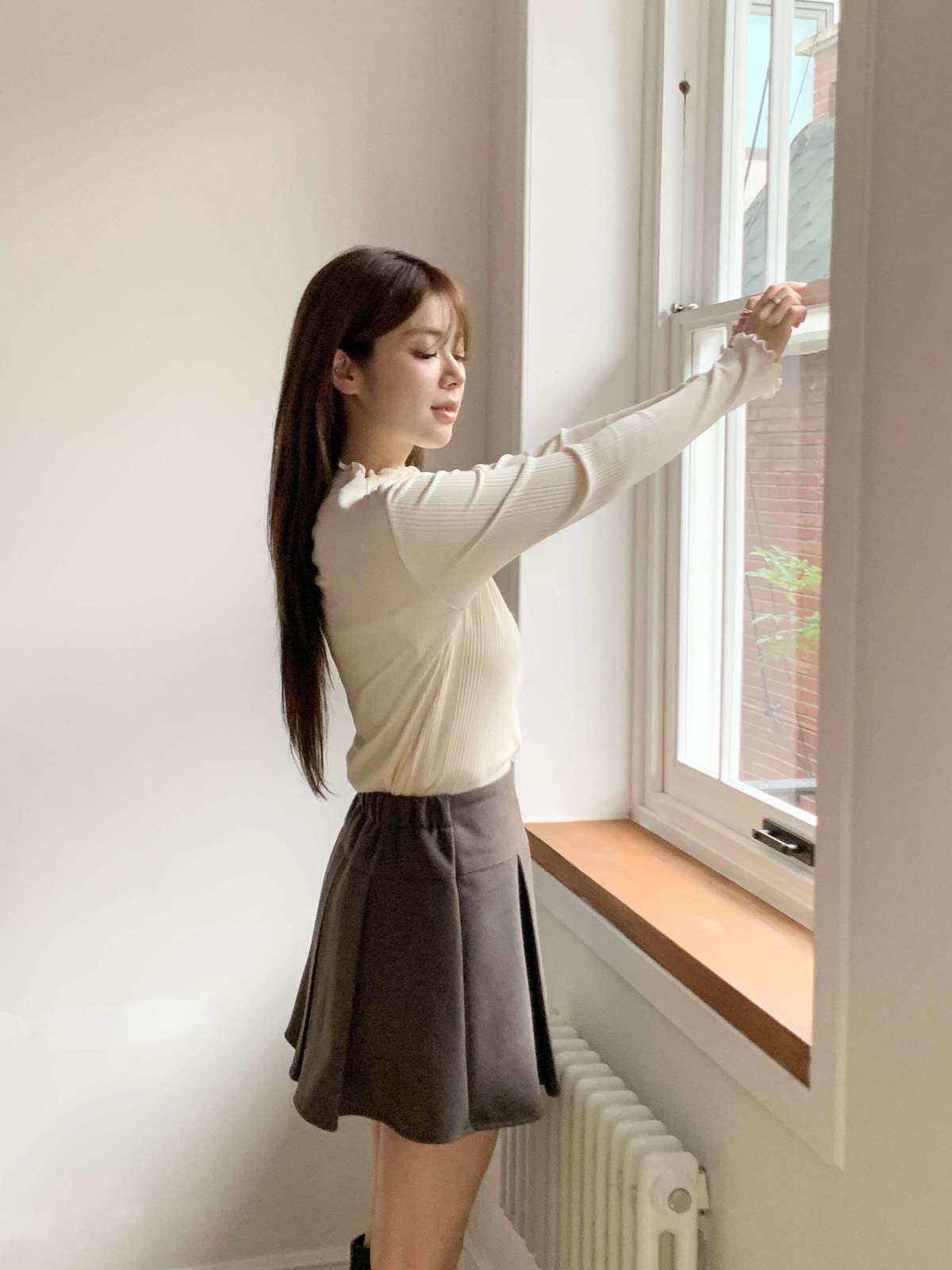 도톰하고 탄탄한 소재의 플리츠 미니스커트