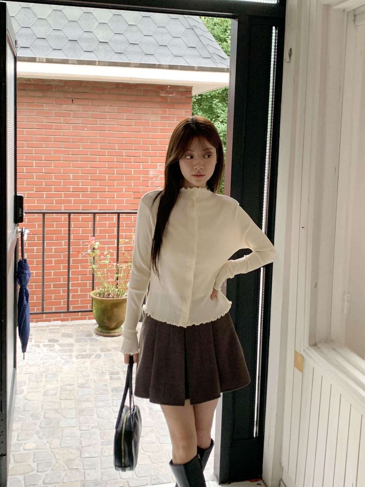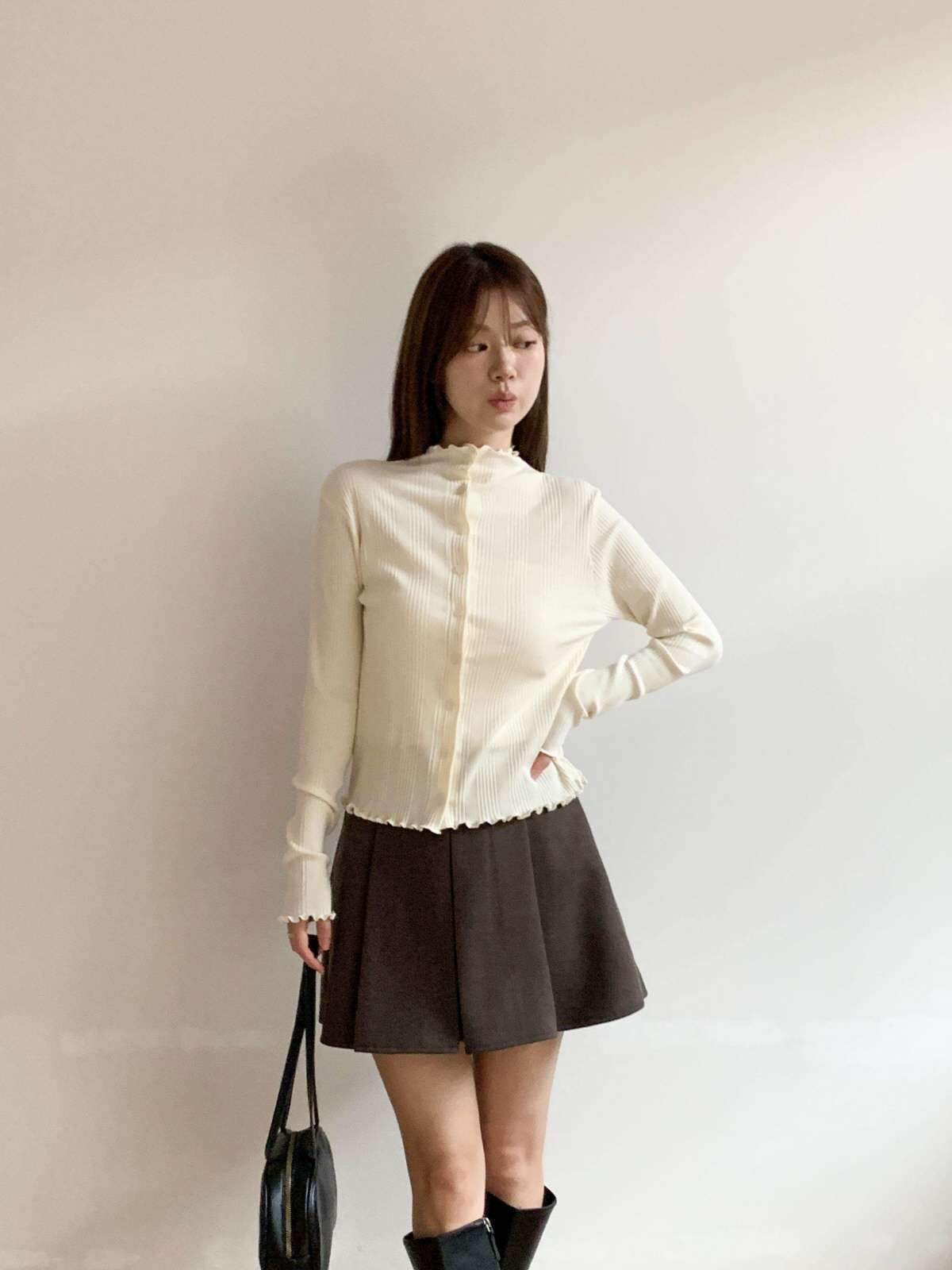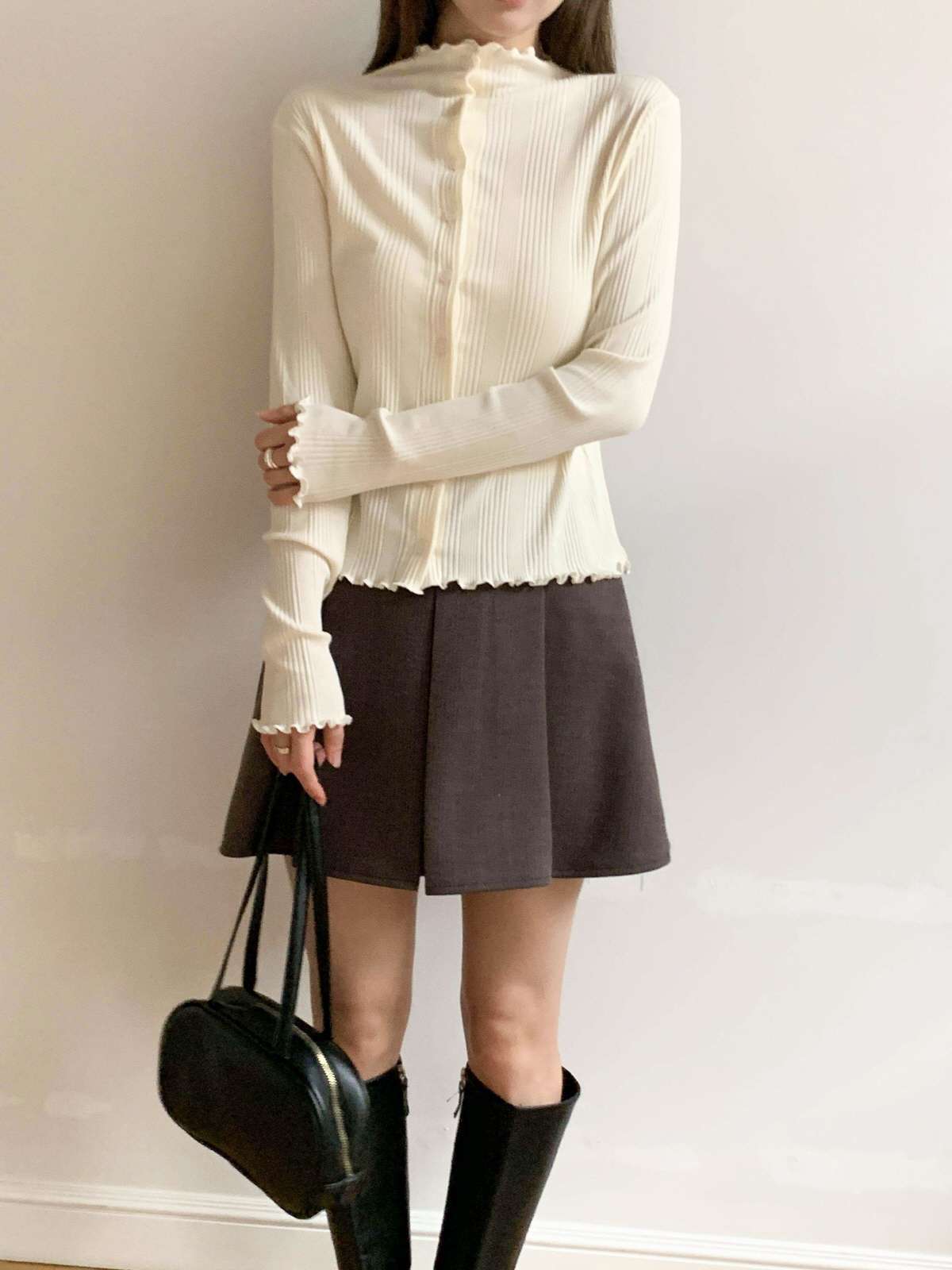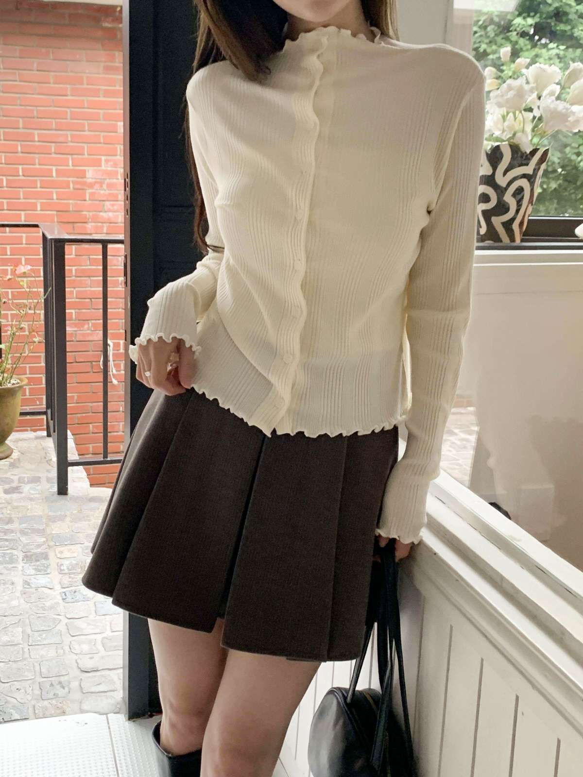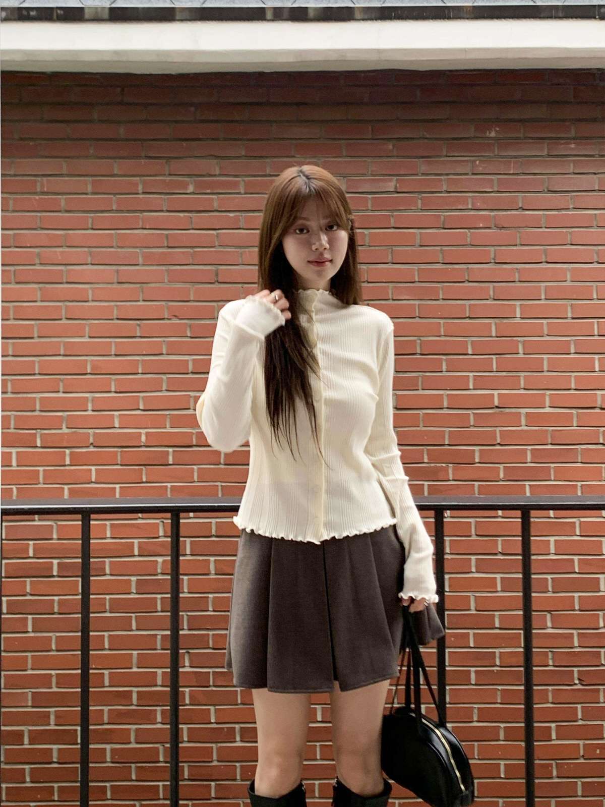 도톰하고 탄탄한 소재의 플리츠 미니스커트