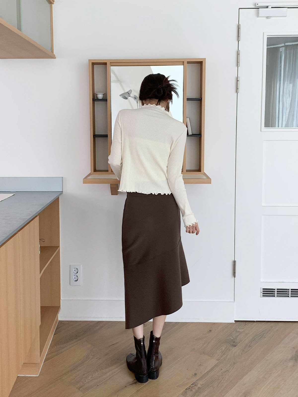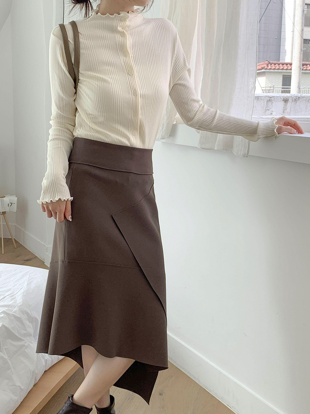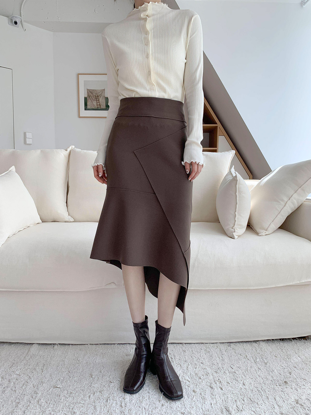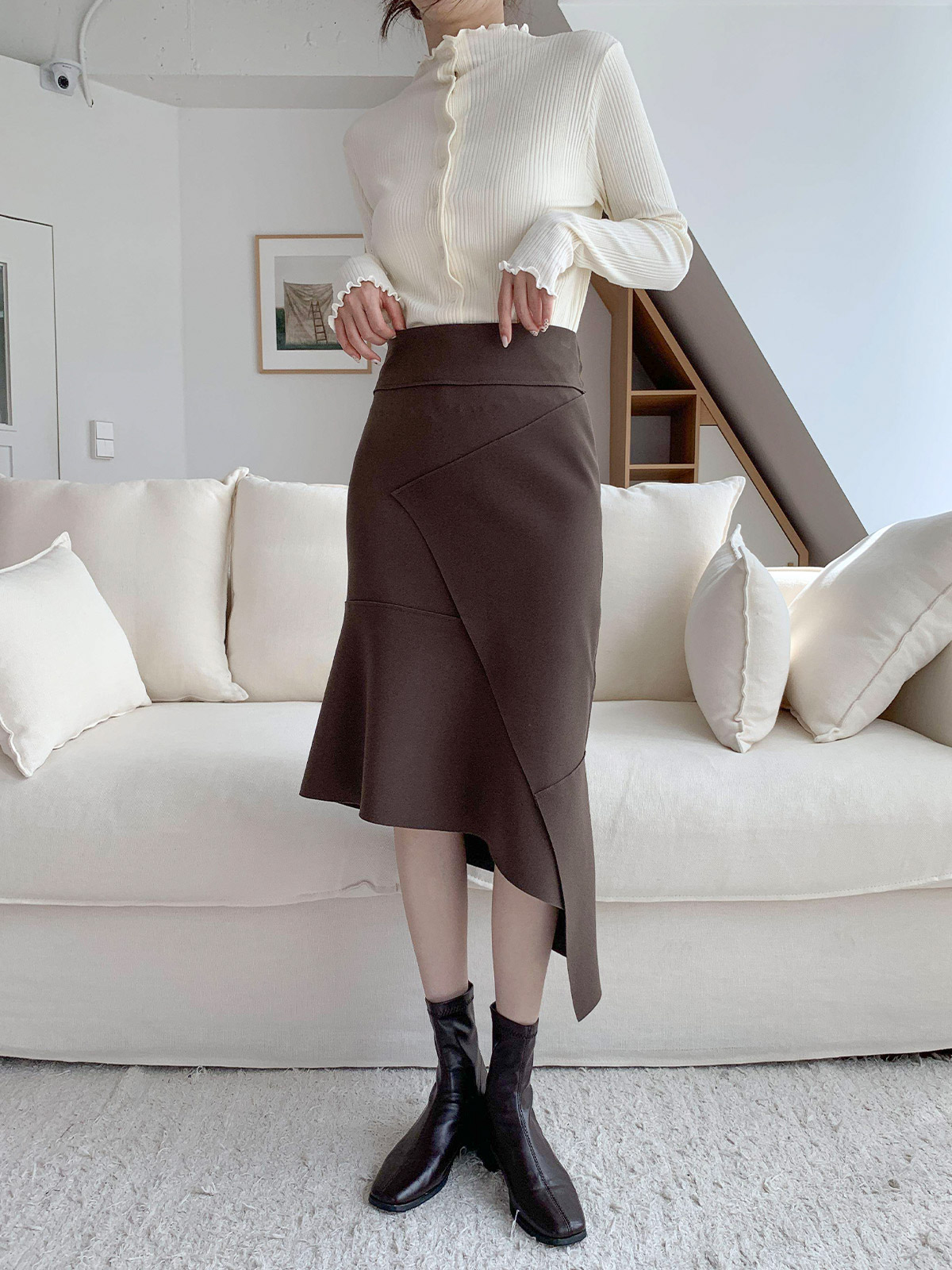 감각적인 언발란스 컷팅이 돋보이는 롱 스커트
