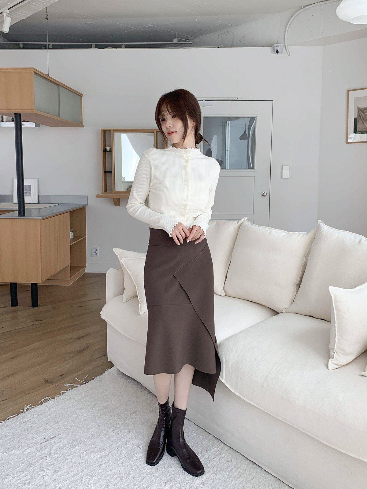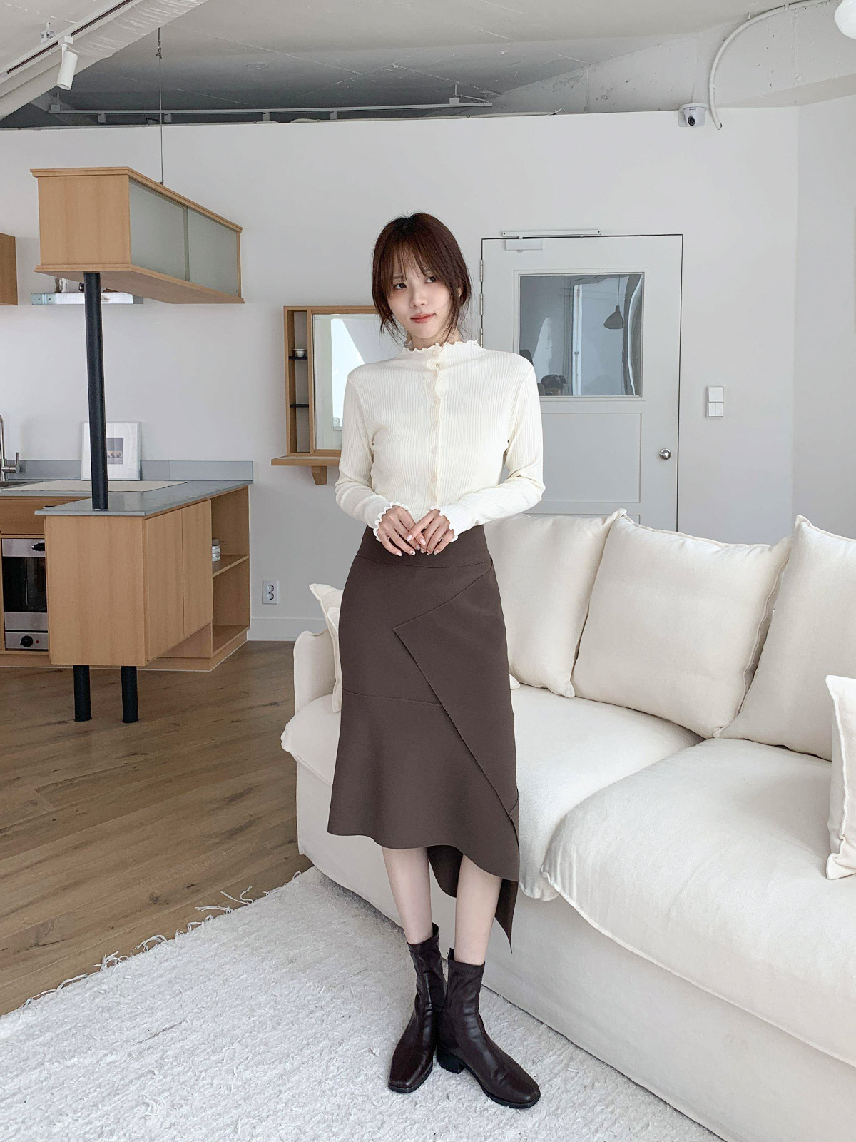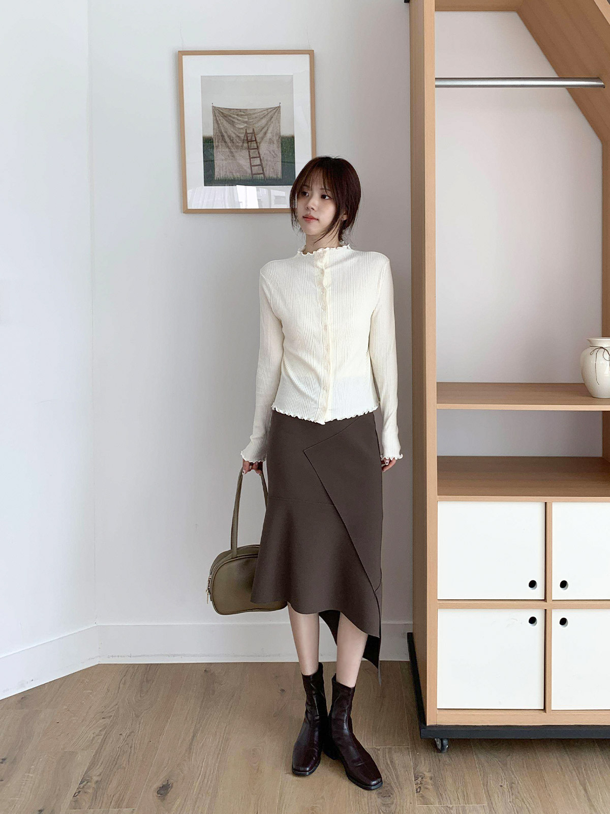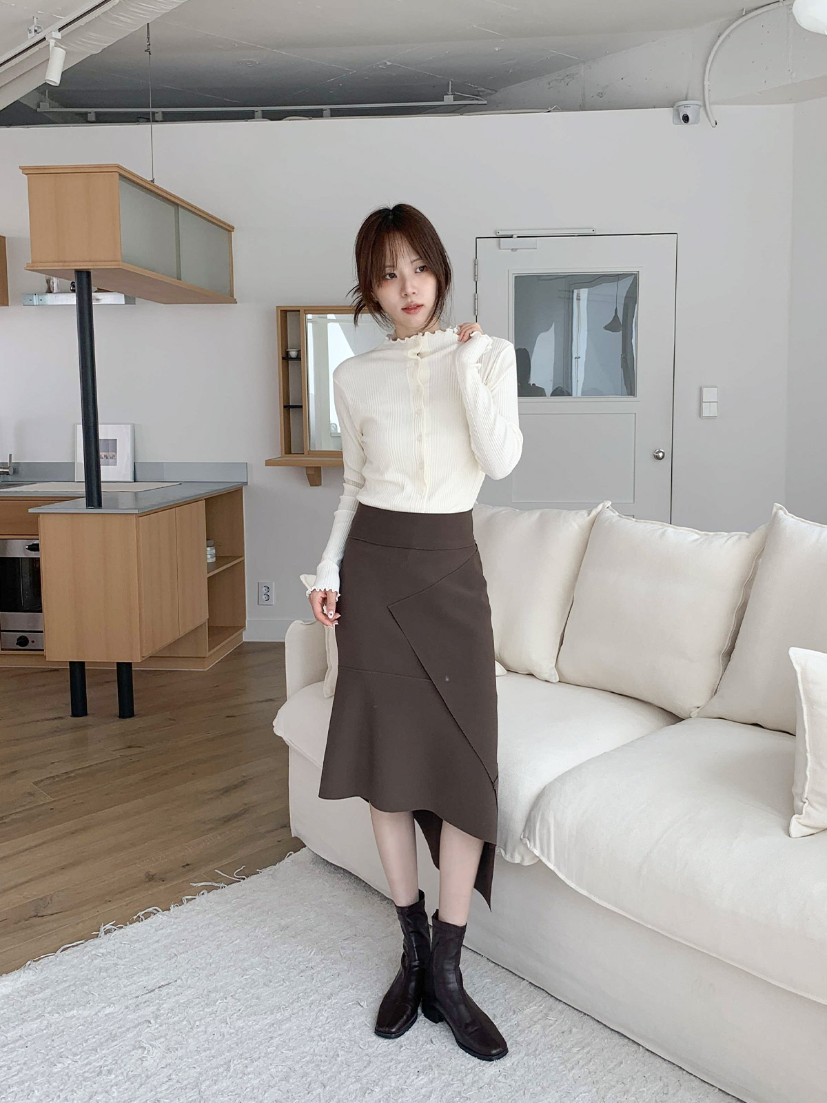 감각적인 언발란스 컷팅이 돋보이는 롱 스커트