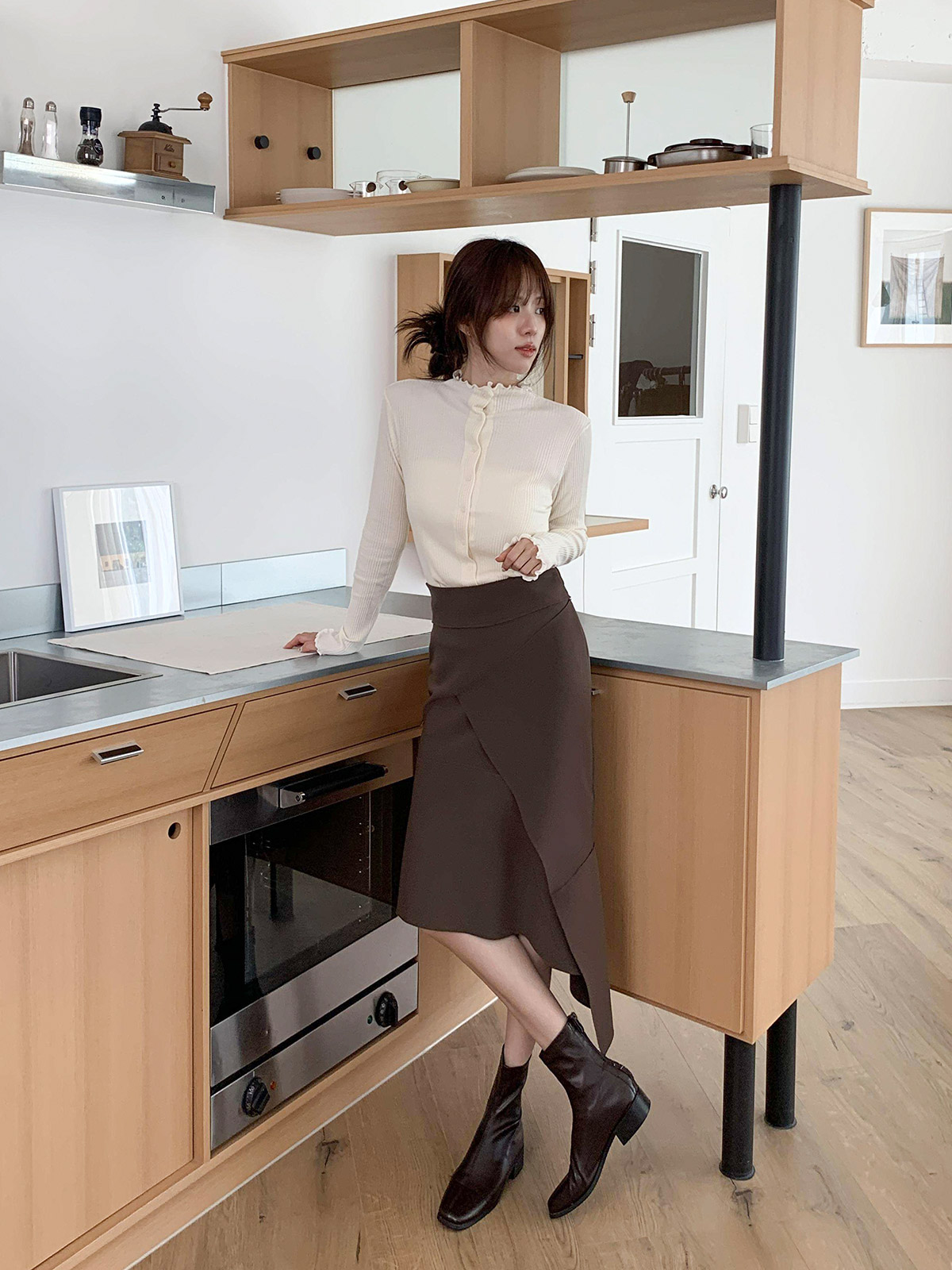 SK7455K59-프로니 언발 랩 밴딩 롱스커트