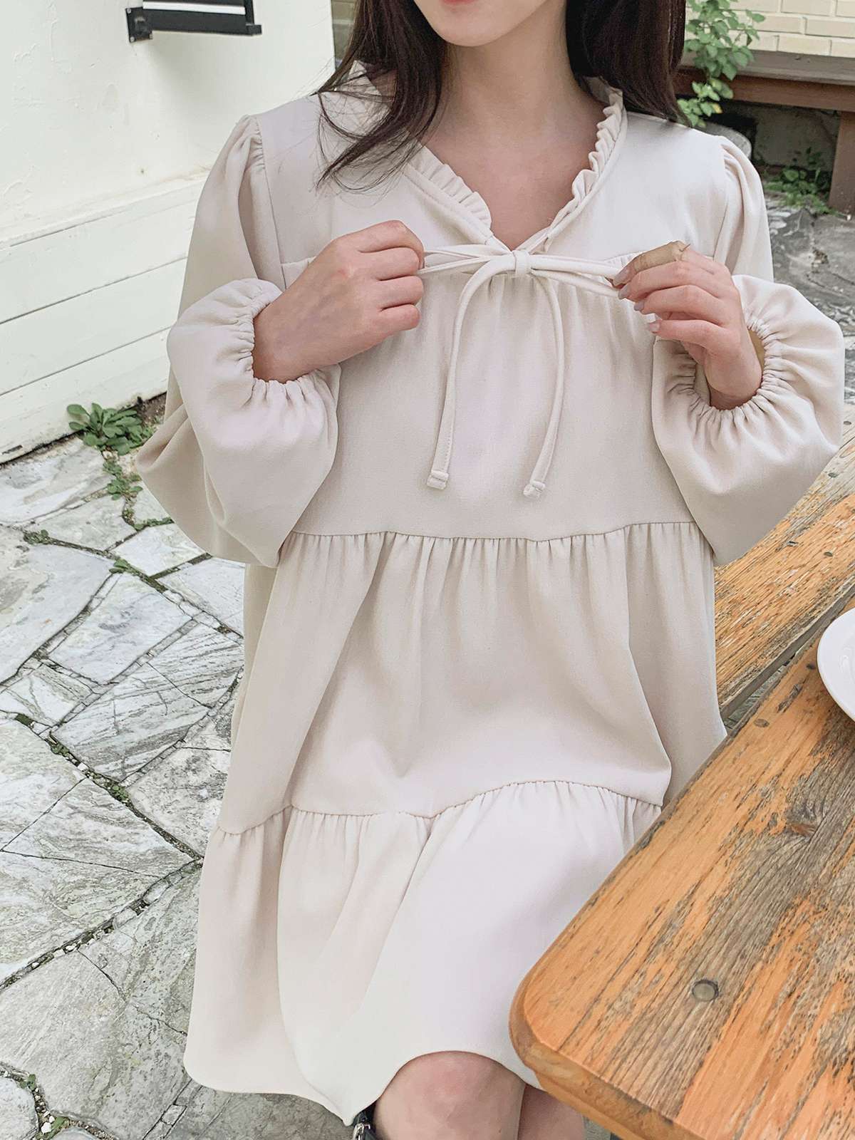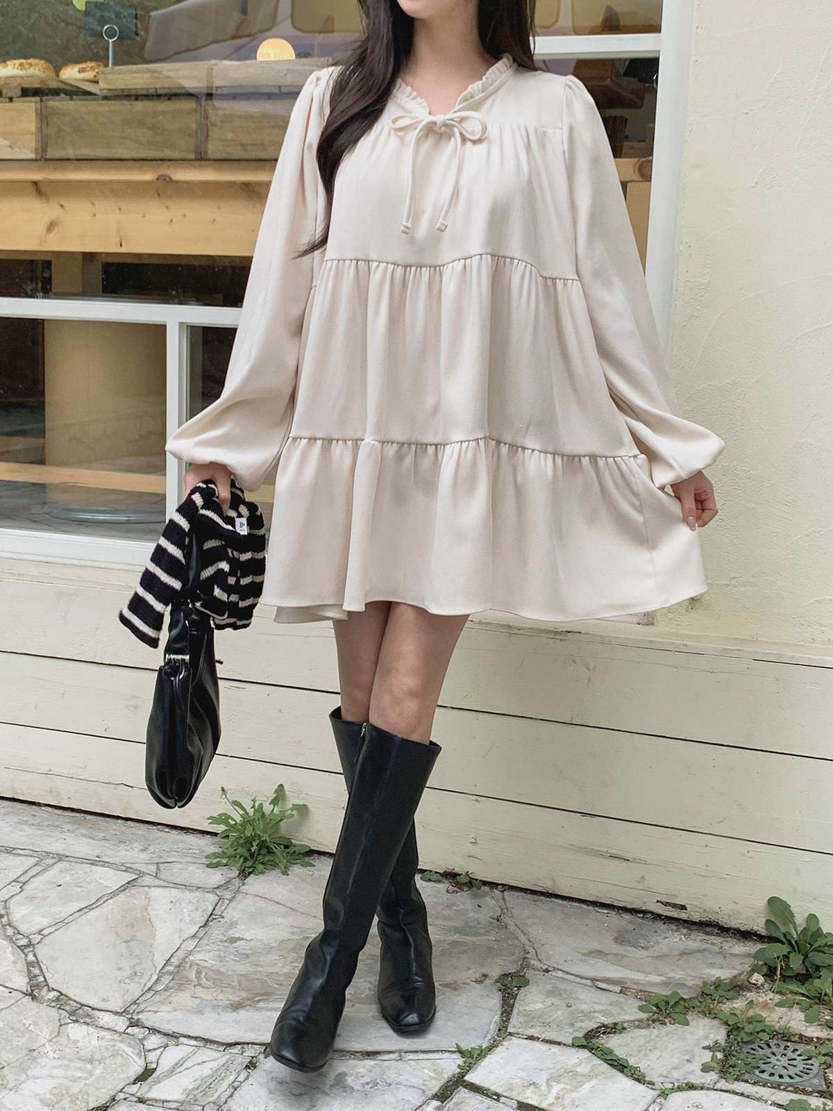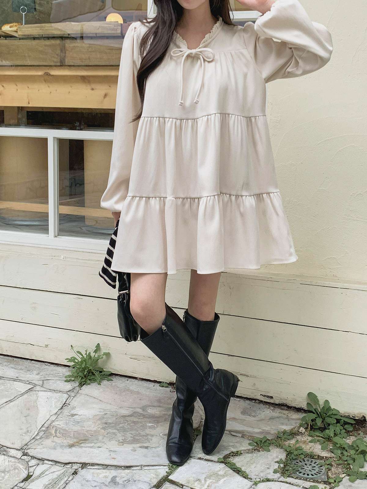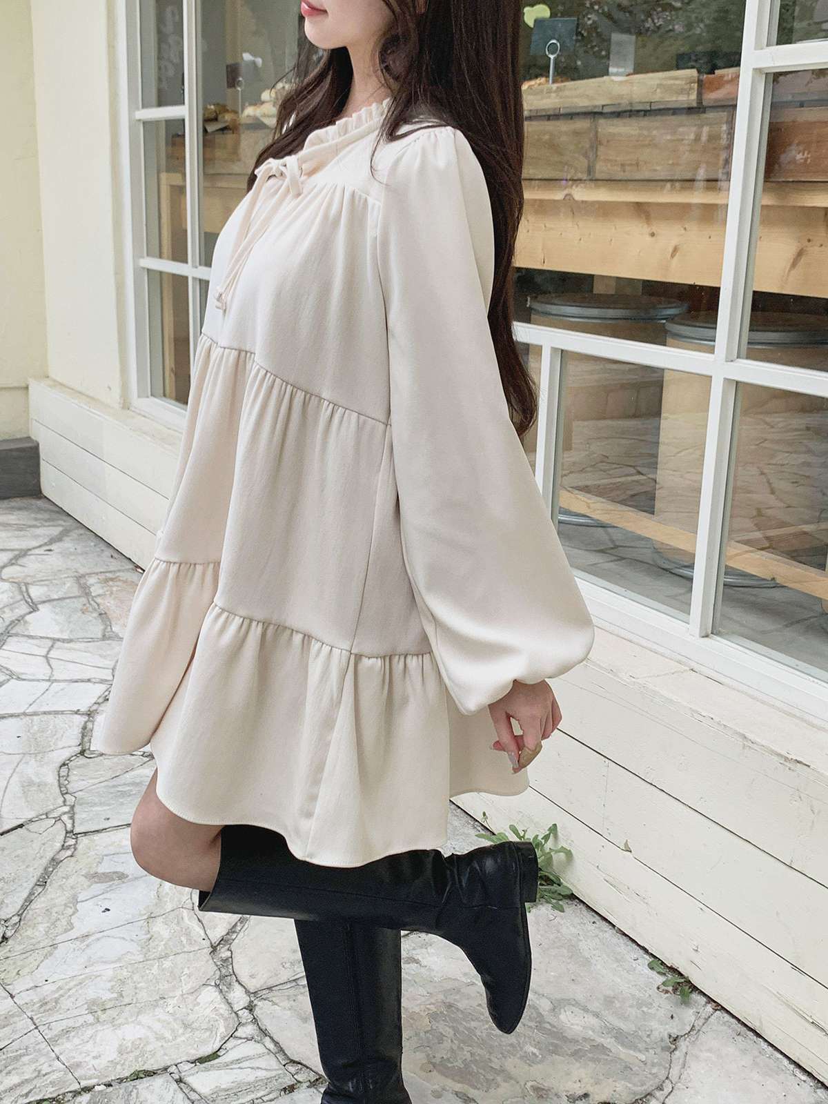 셔링과 티어드 디자인이 포인트인 미니 원피스