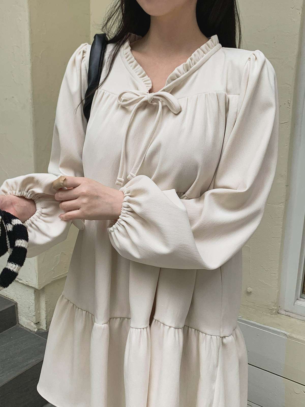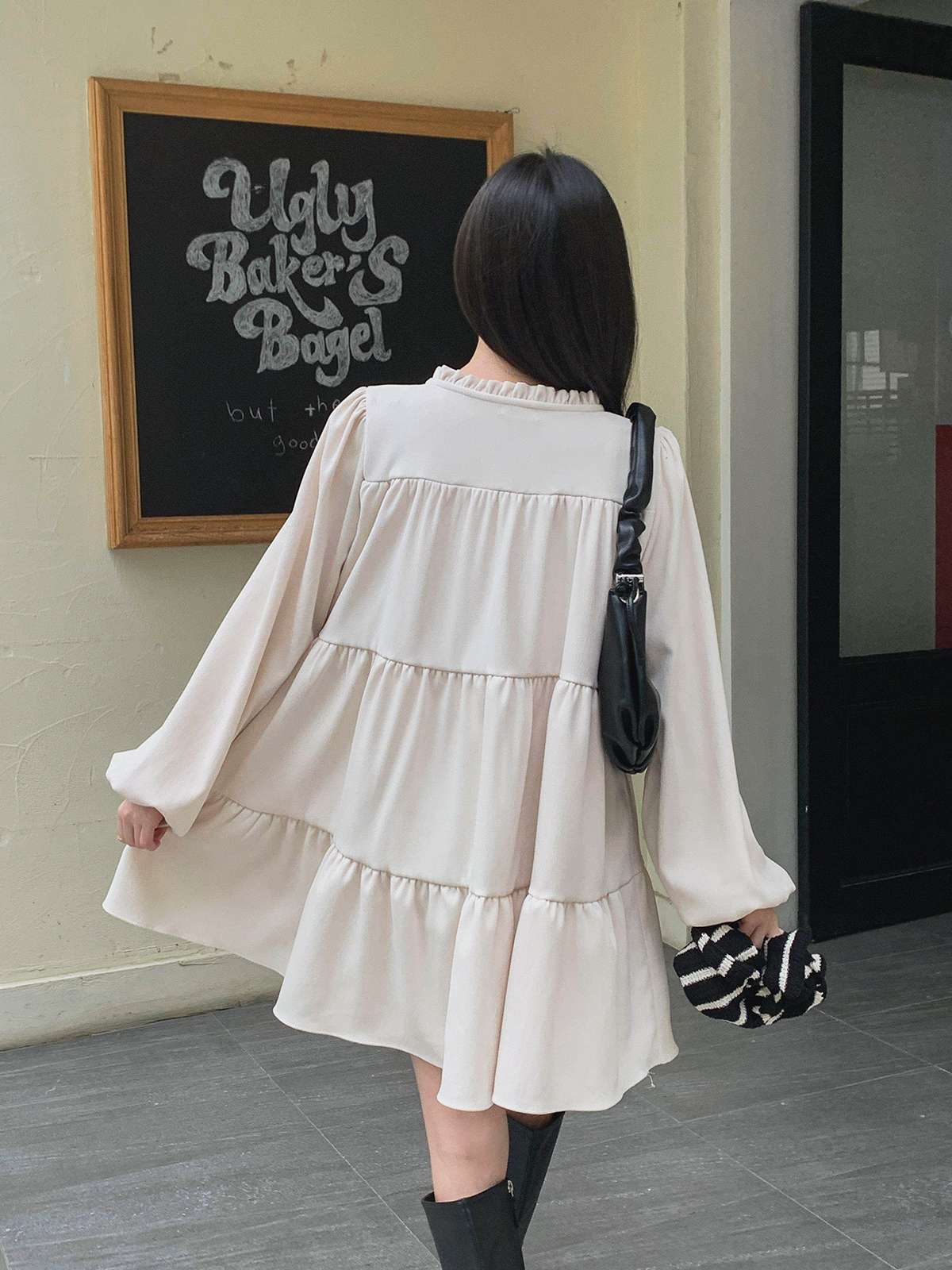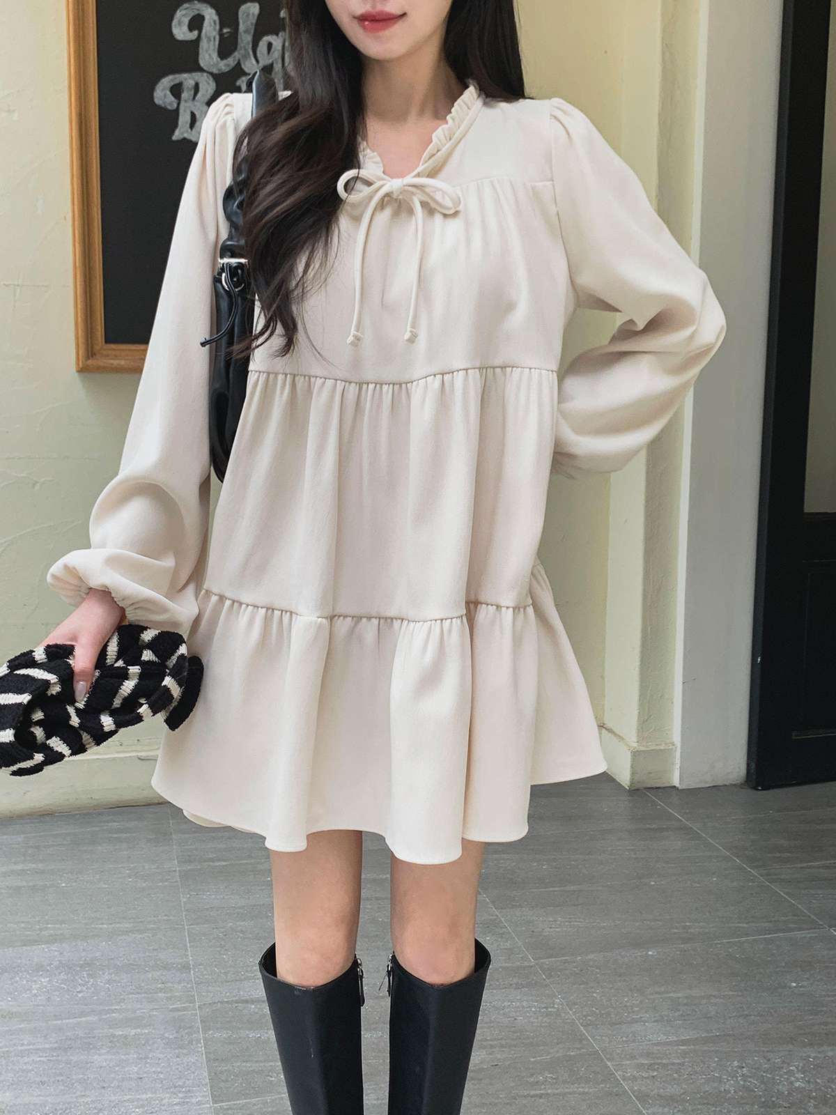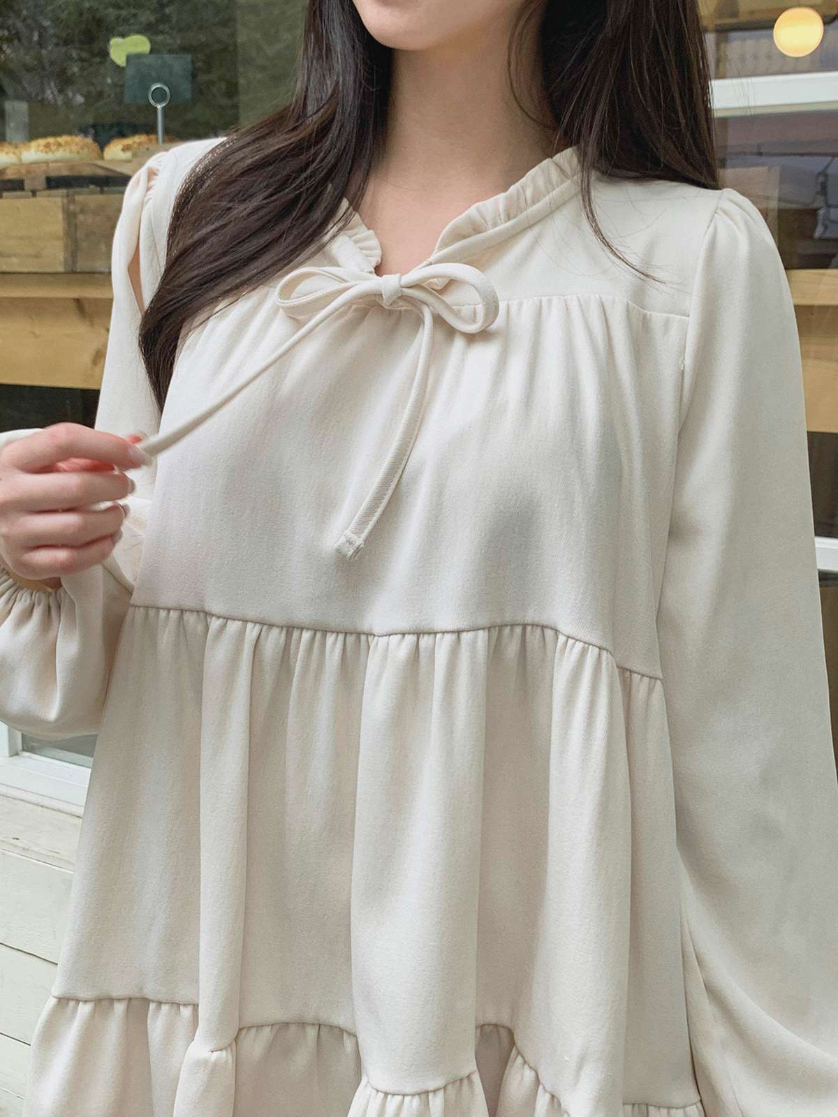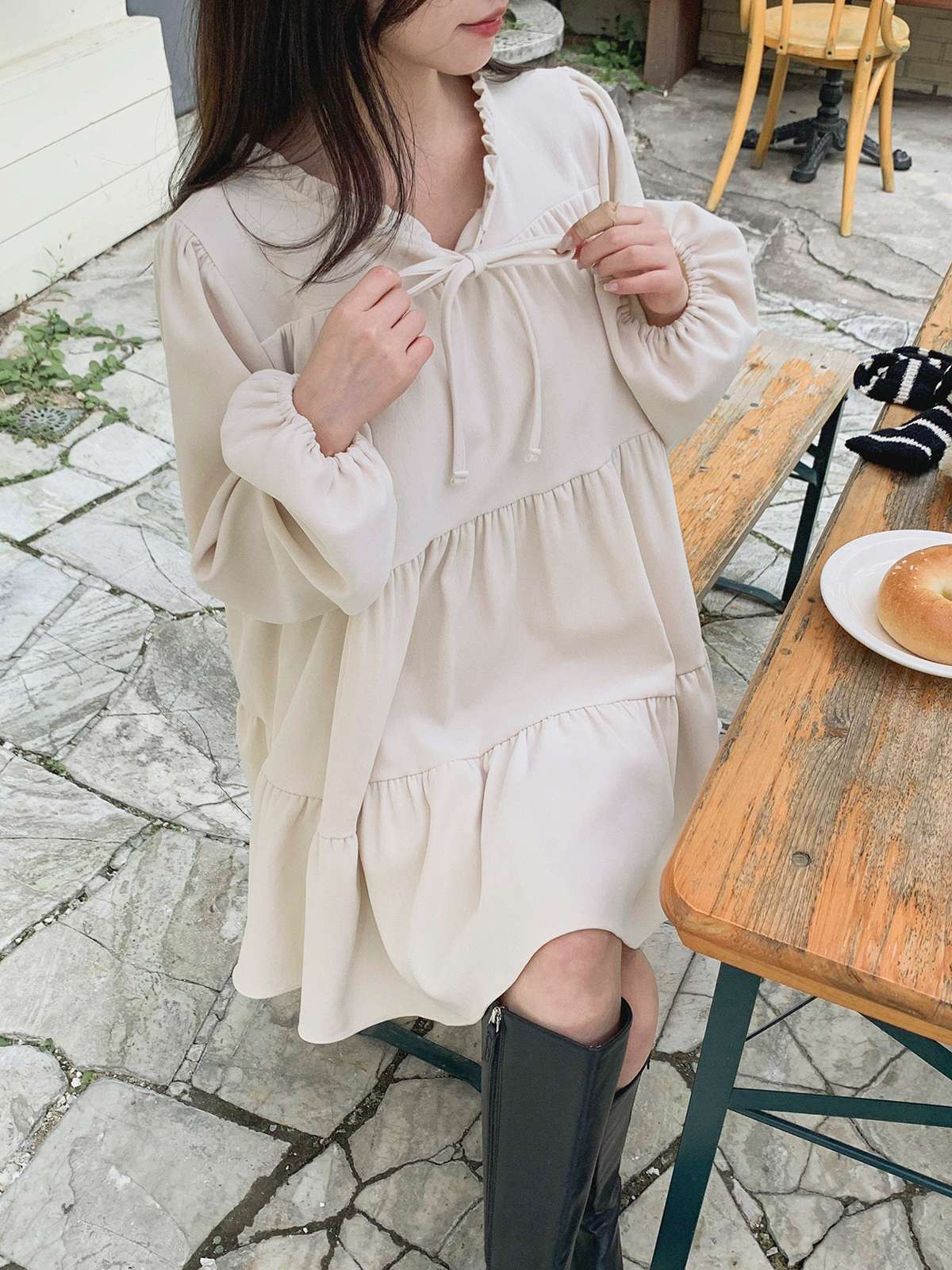 셔링과 티어드 디자인이 포인트인 미니 원피스