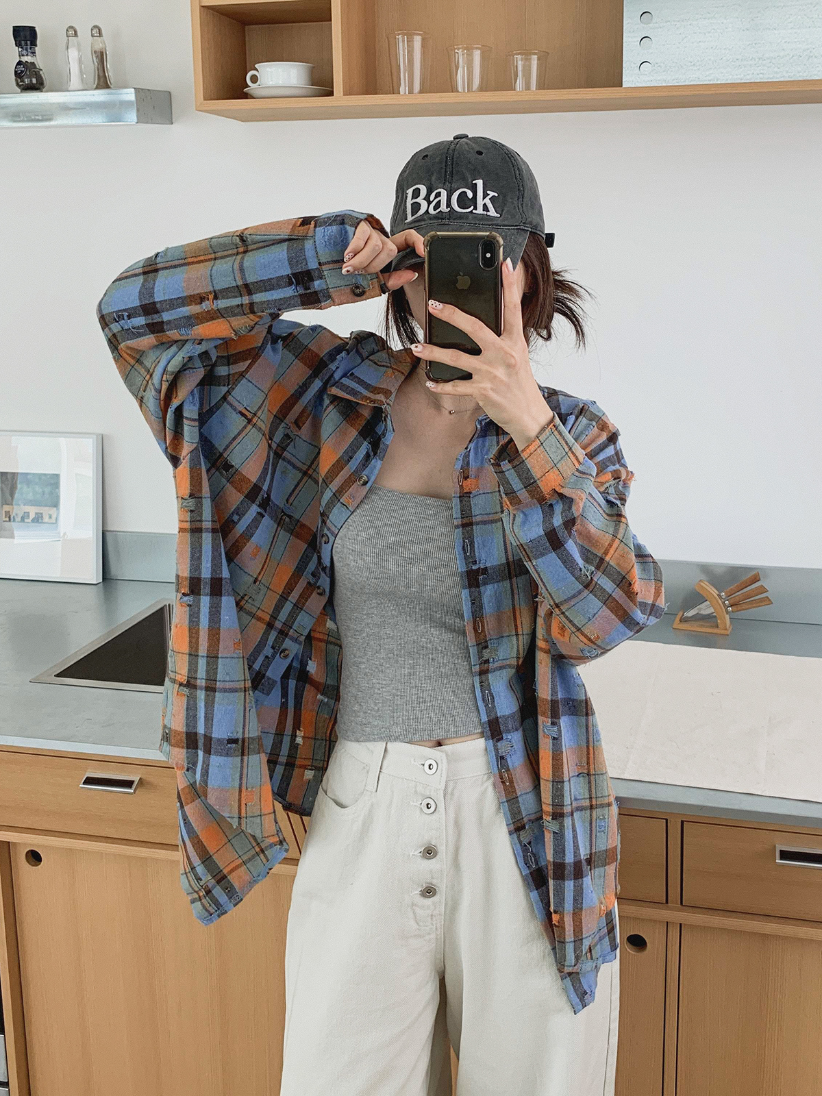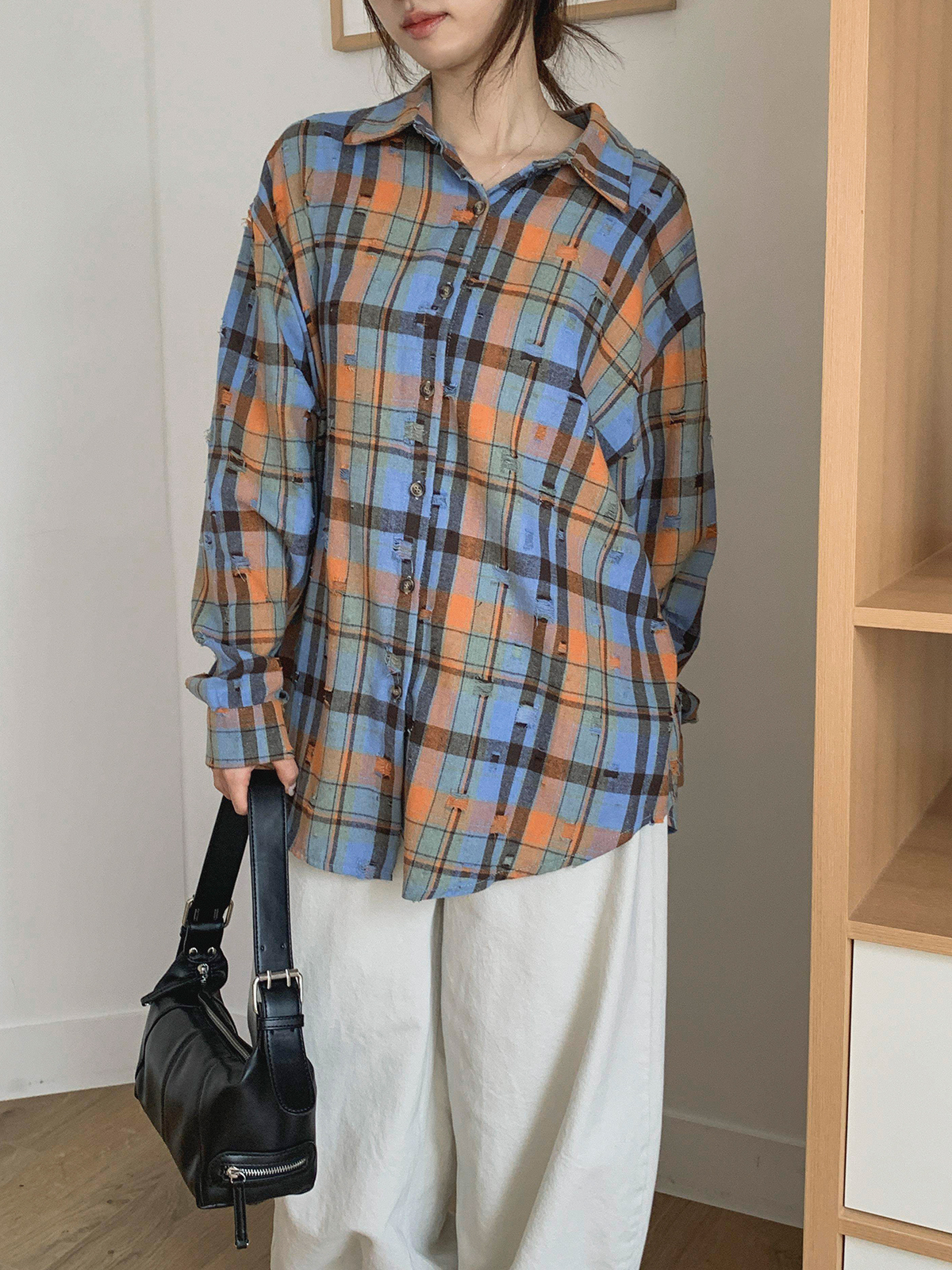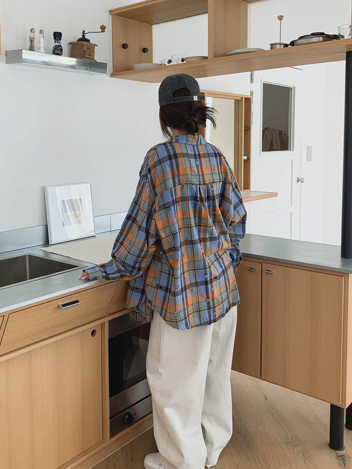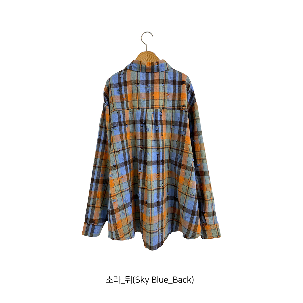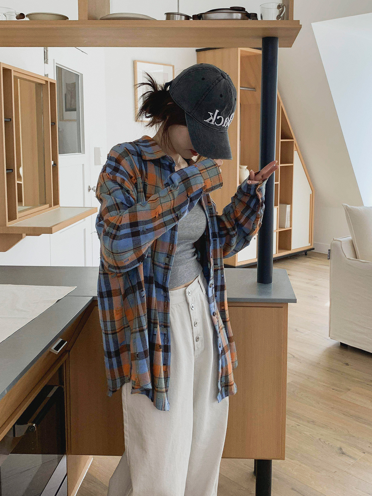 데미지 디테일이 포인트인 빈티지 체크 남방