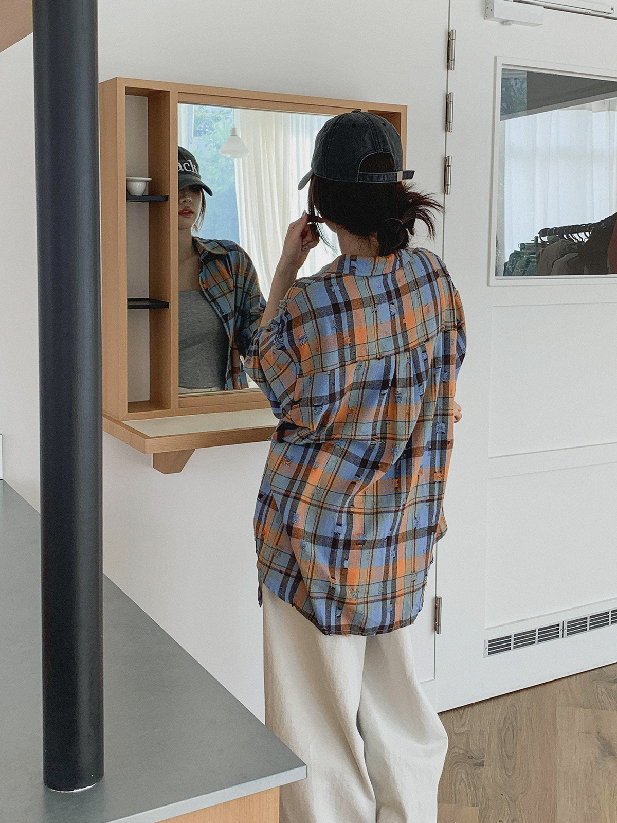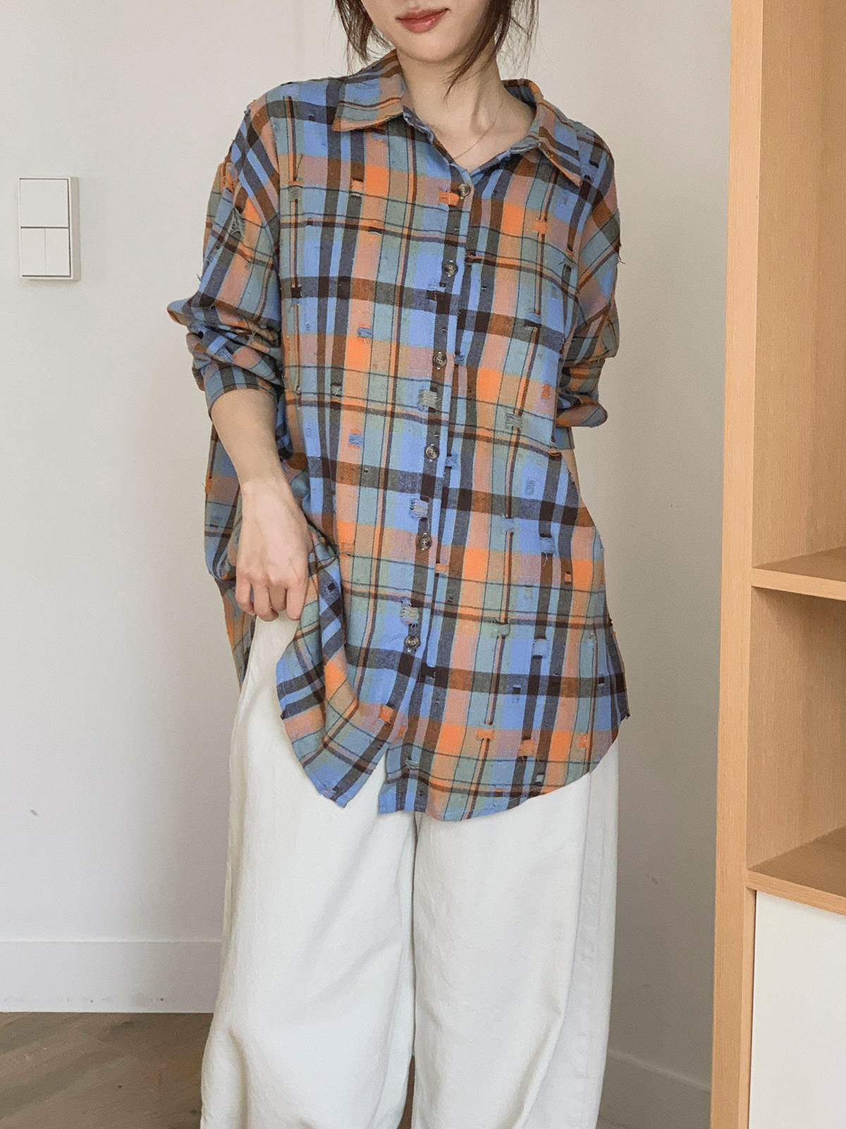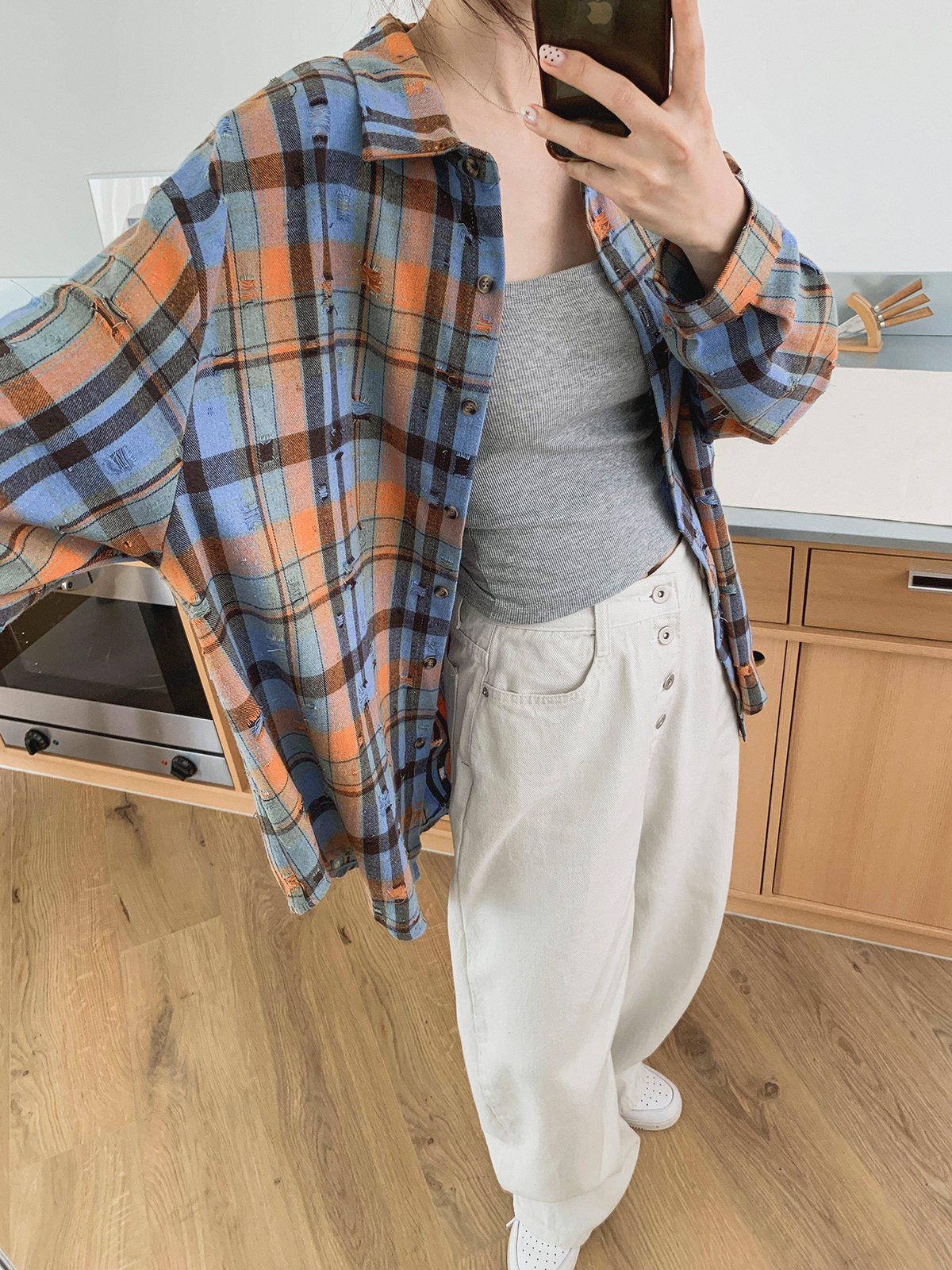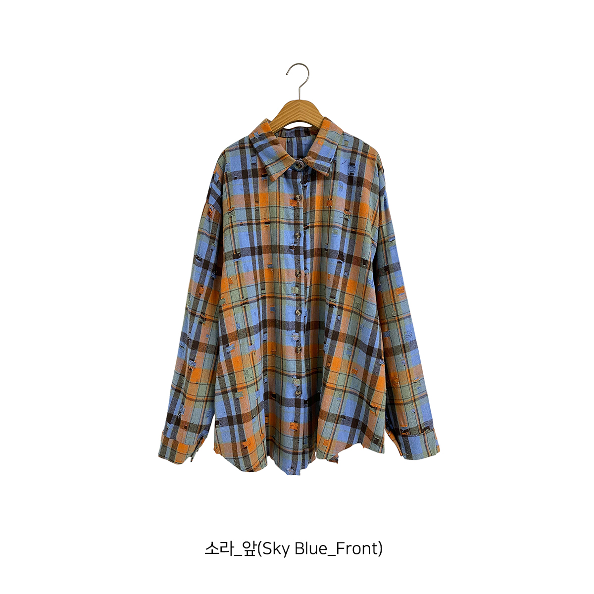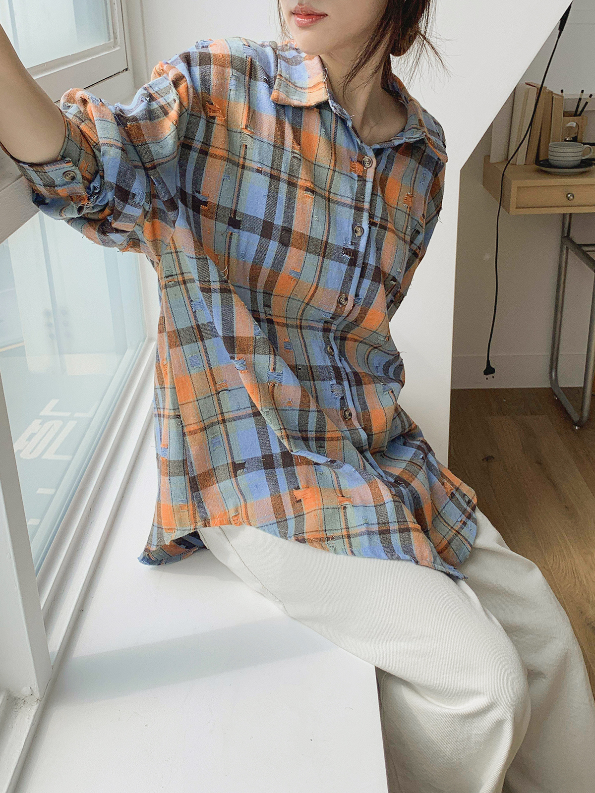 데미지 디테일이 포인트인 빈티지 체크 남방
