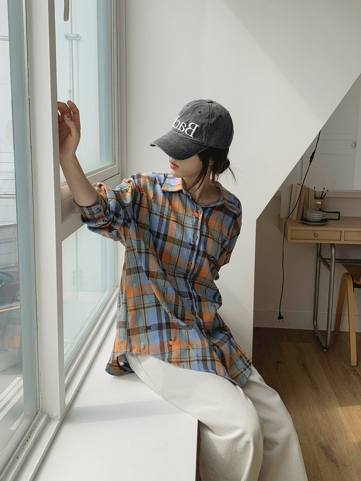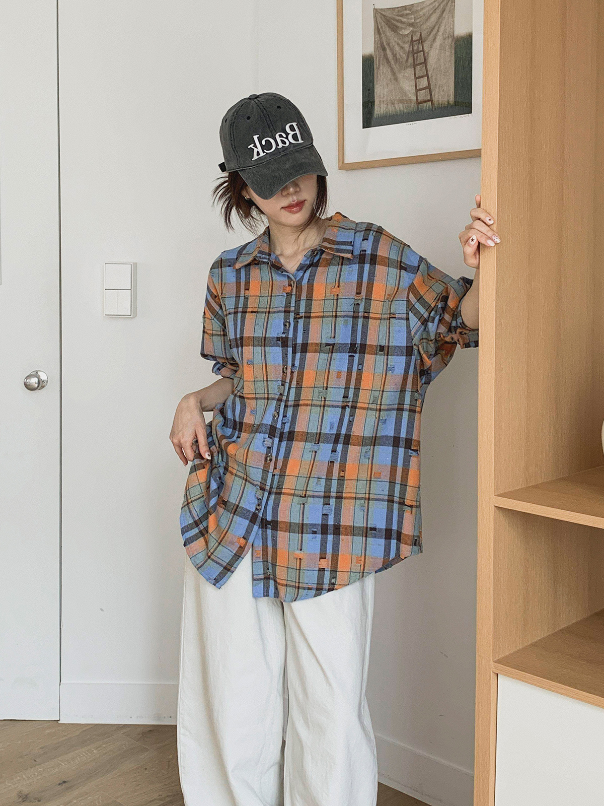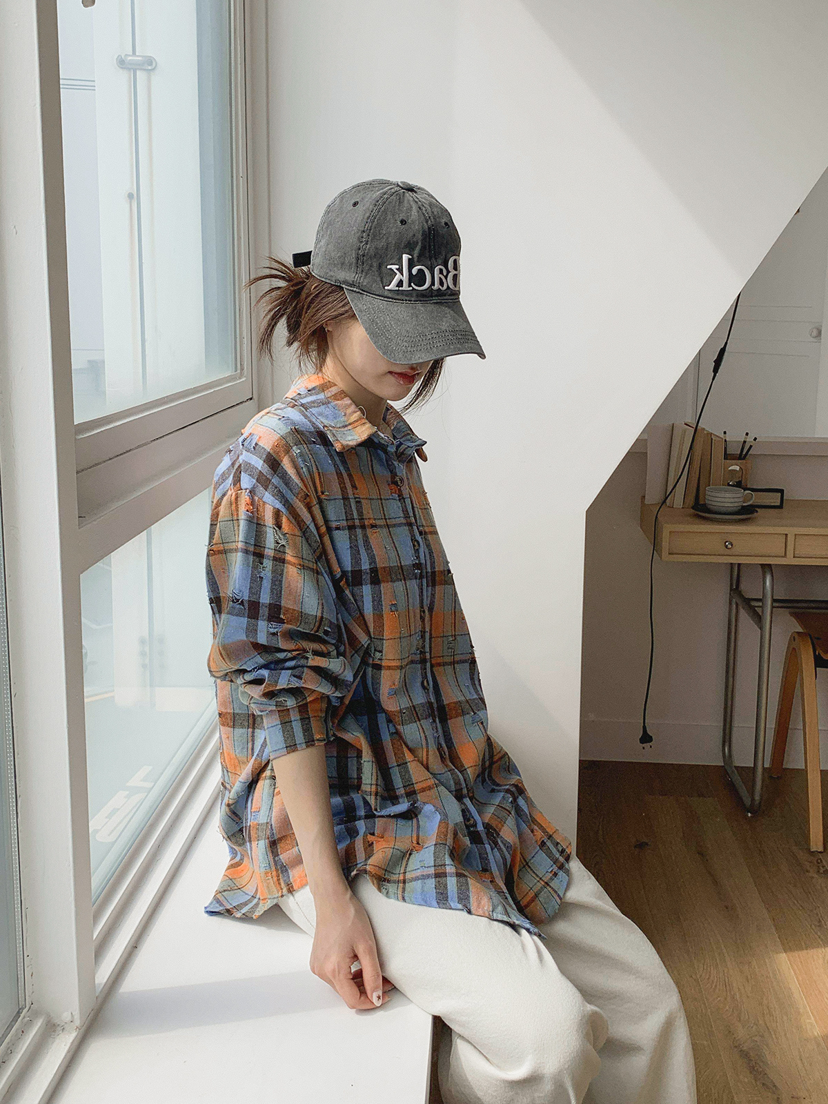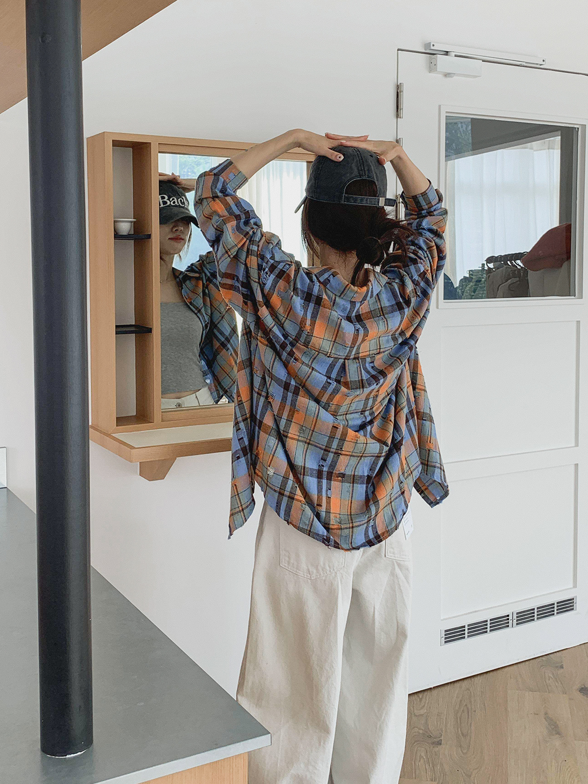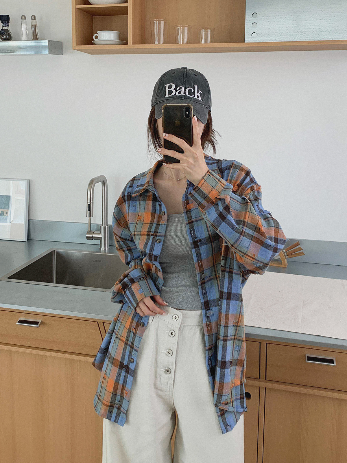 데미지 디테일이 포인트인 빈티지 체크 남방