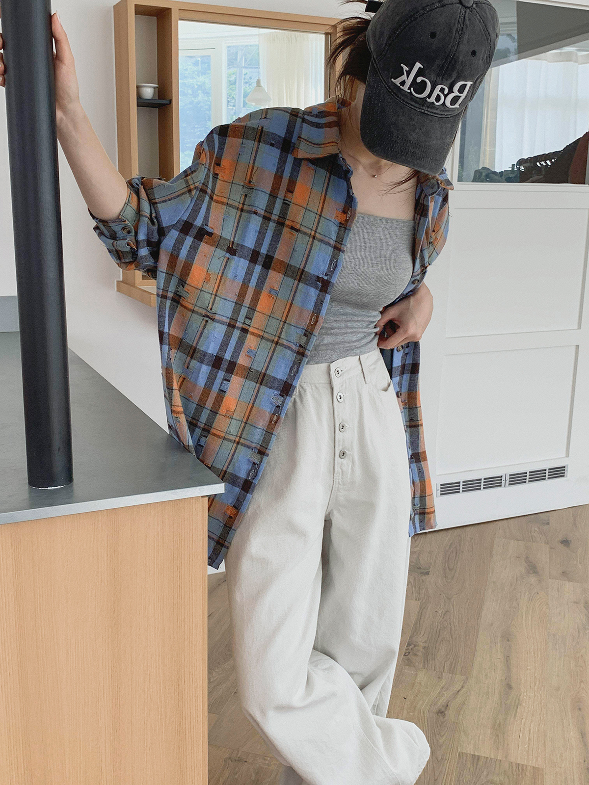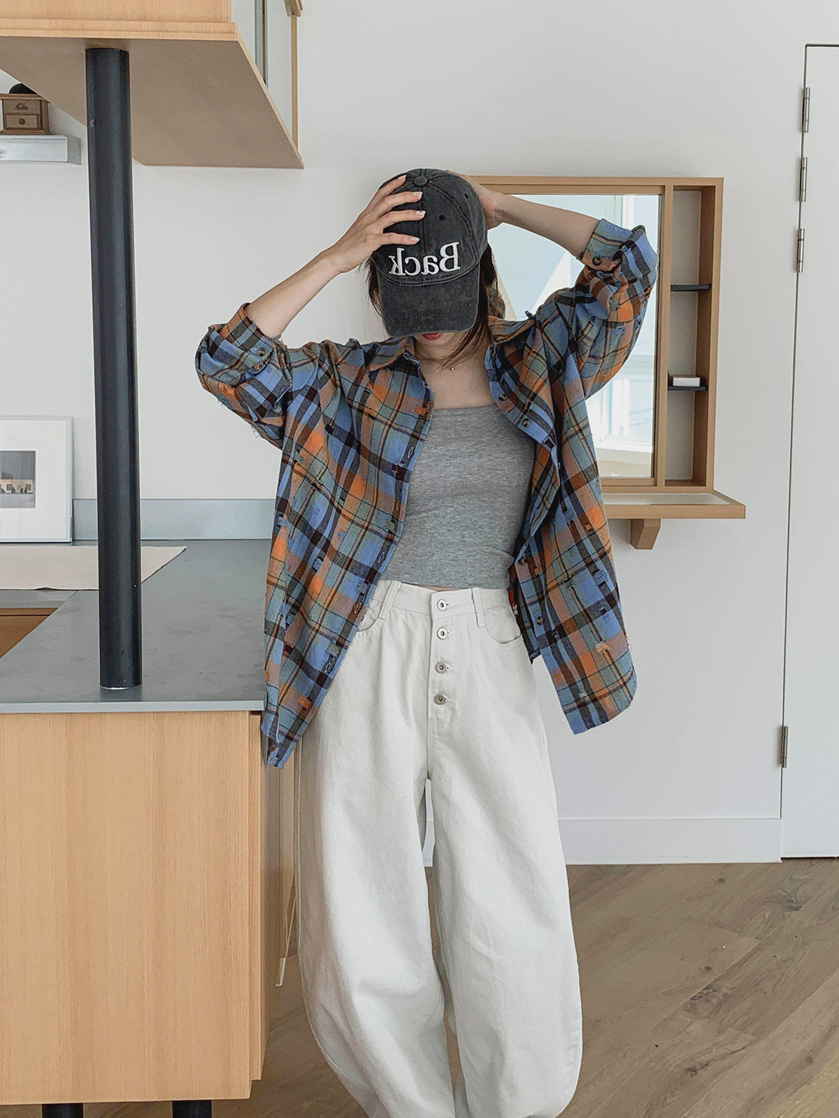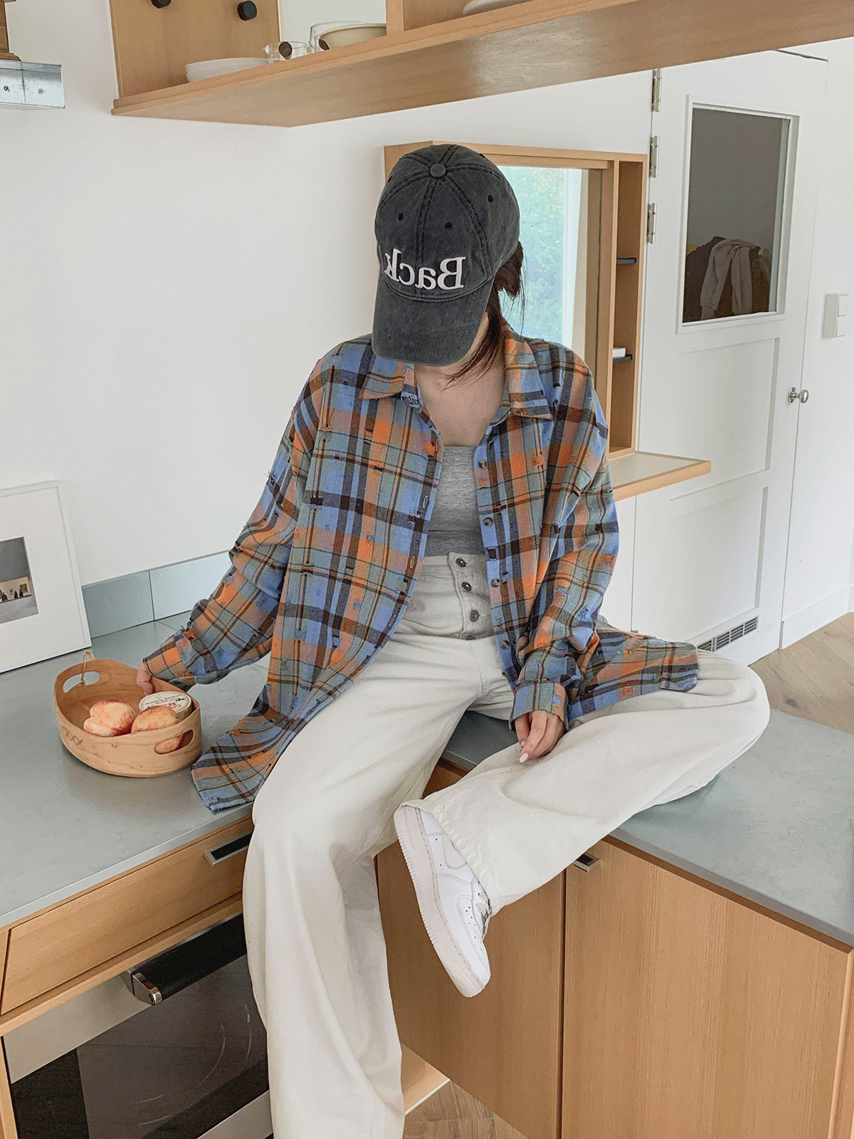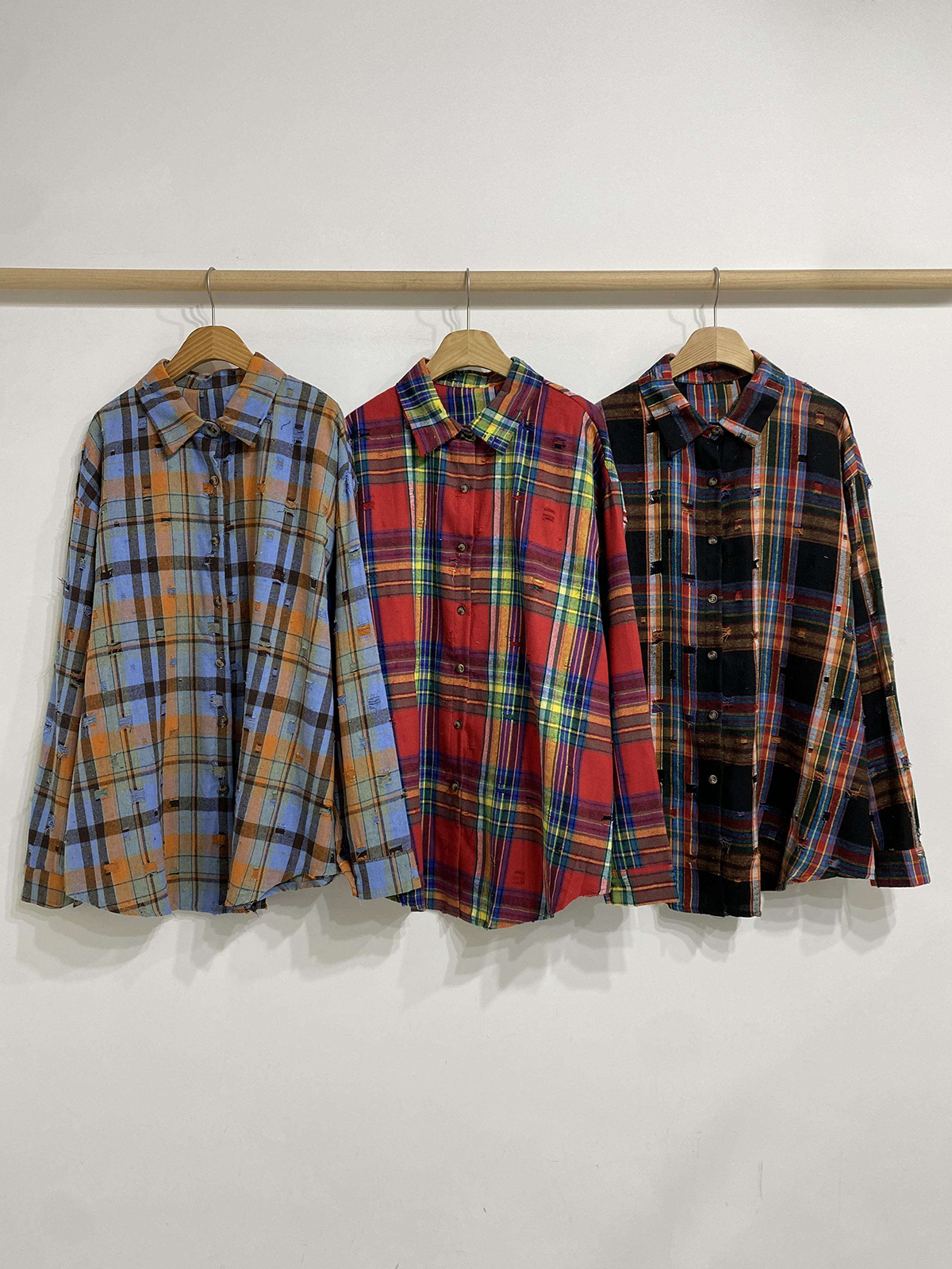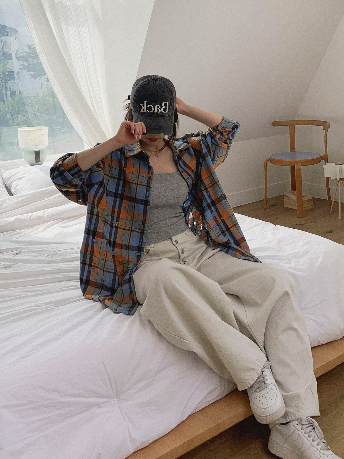 데미지 디테일이 포인트인 빈티지 체크 남방
