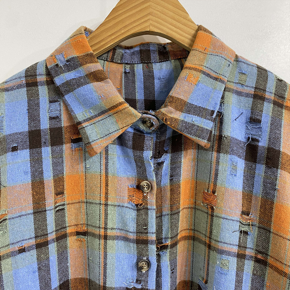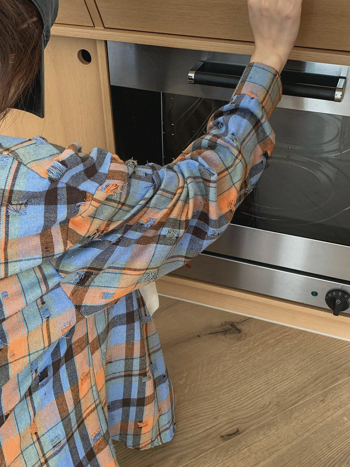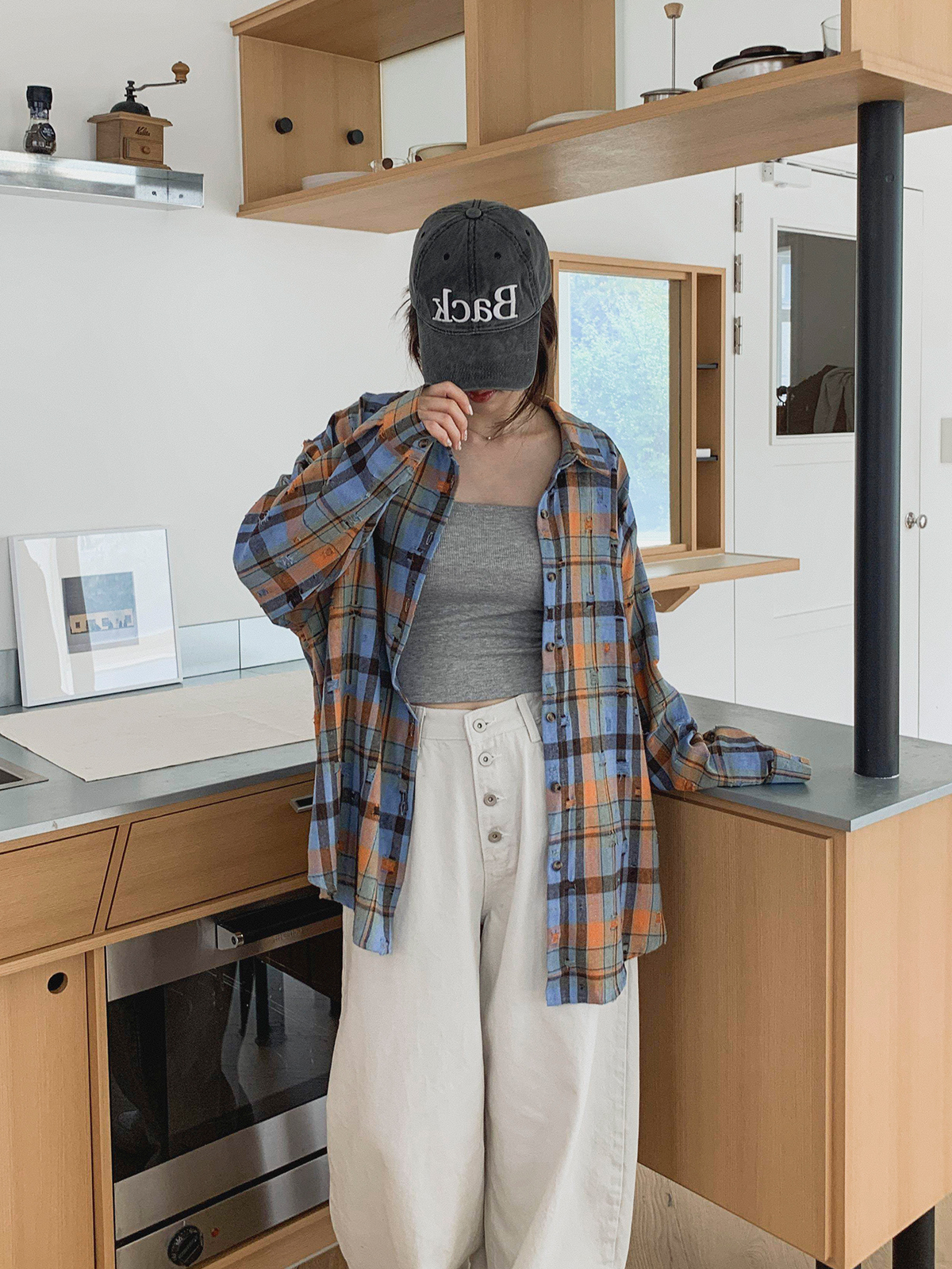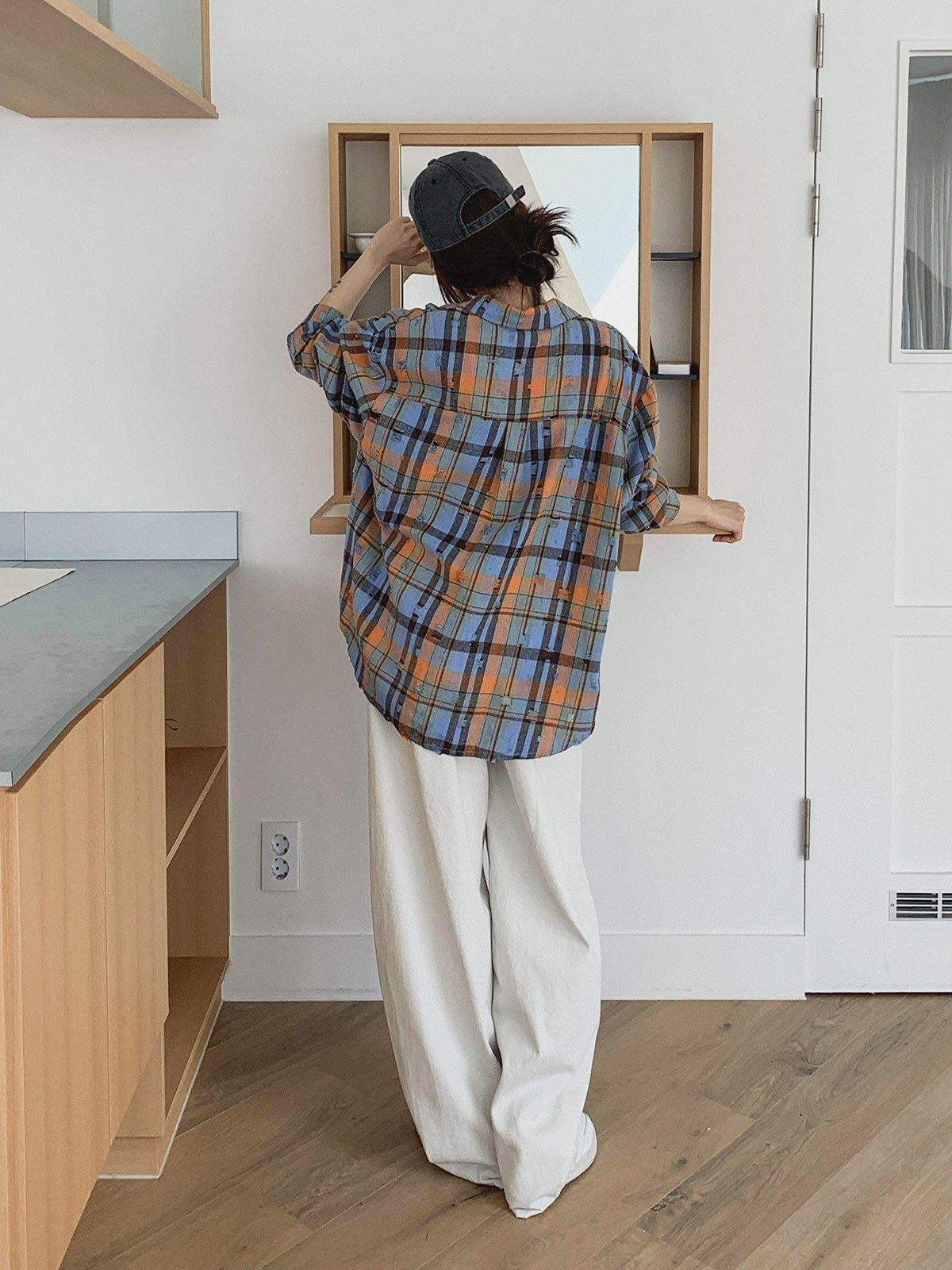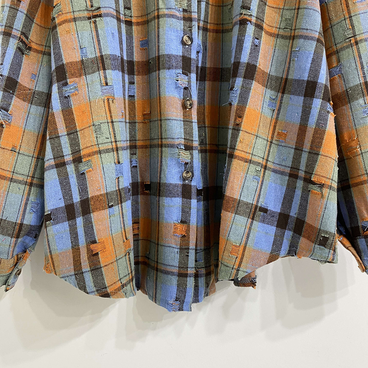 데미지 디테일이 포인트인 빈티지 체크 남방
