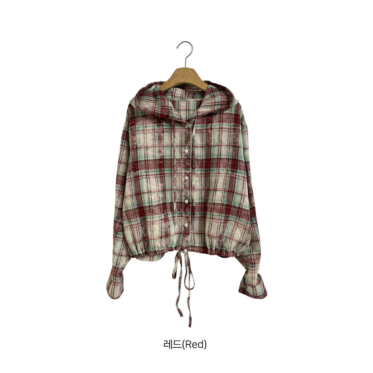NB3322K59-차로니 오버핏 체크 후드 남방