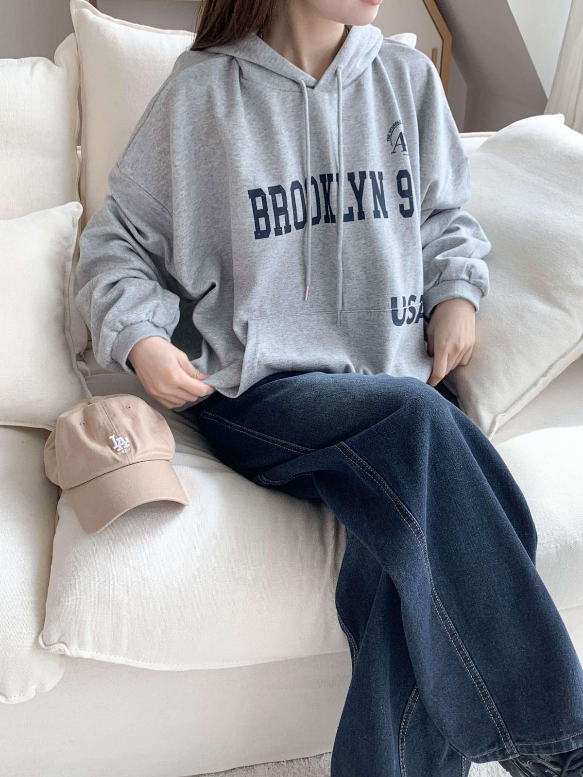 심플한 레터링 포인트로 캐주얼한 무드를 더했으며,