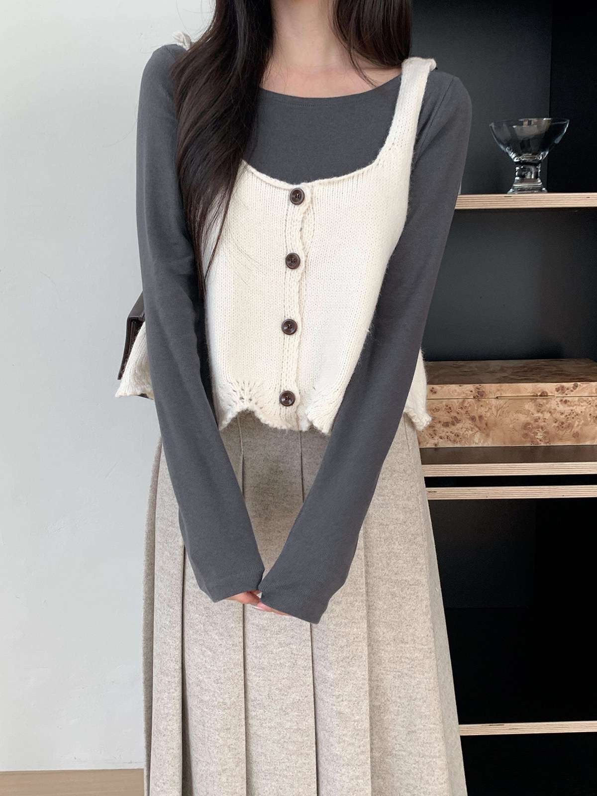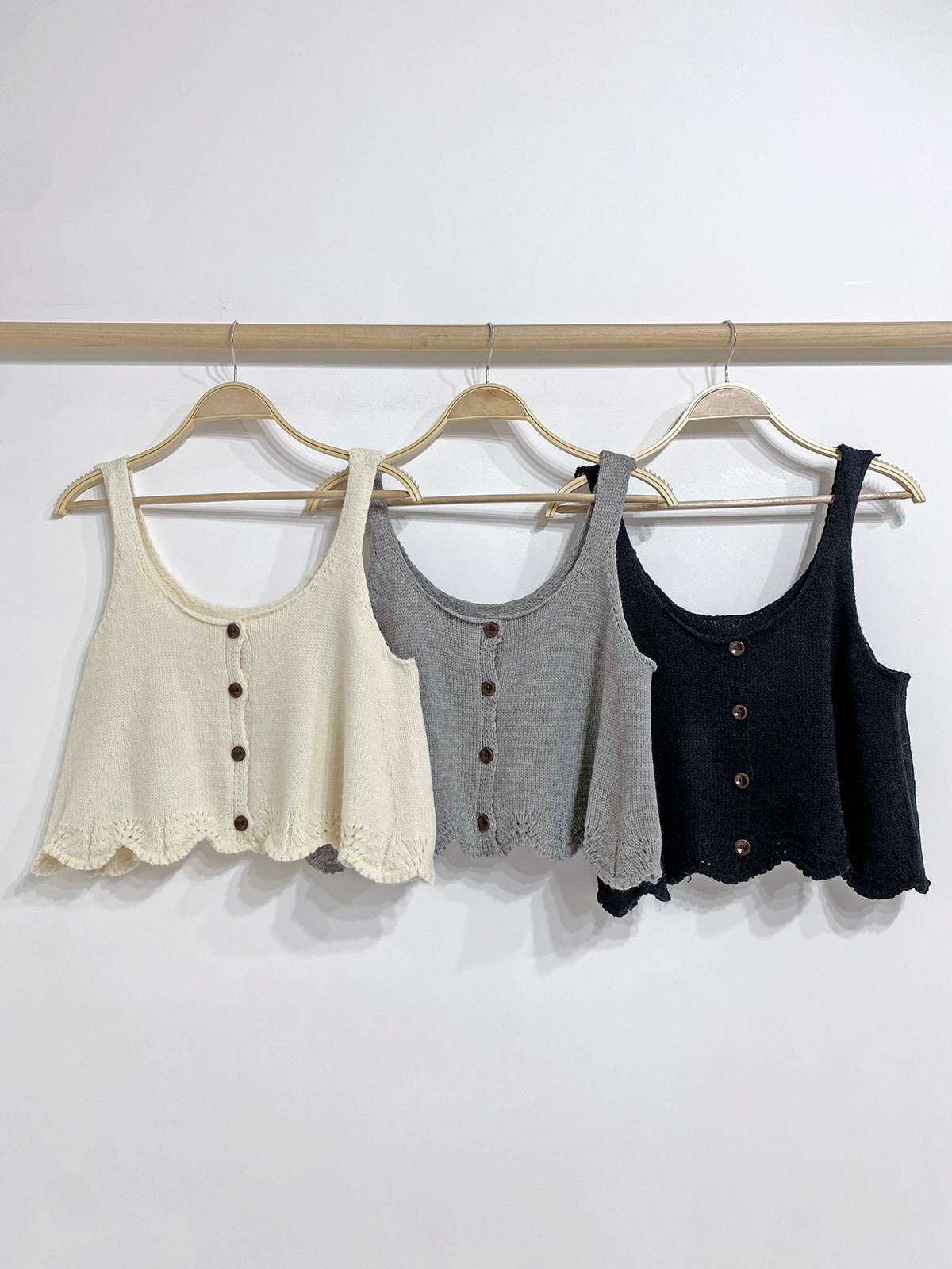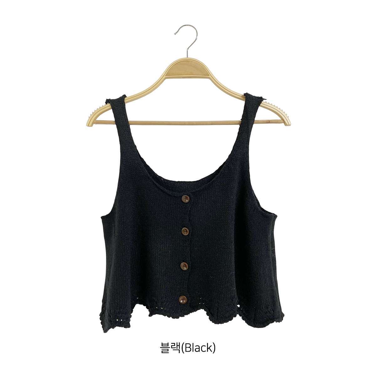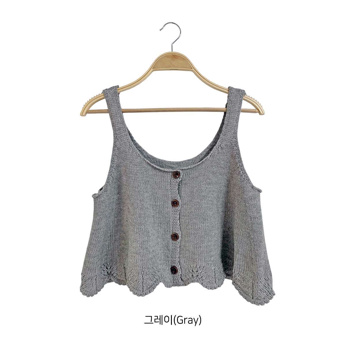 [ VT1387K59-므로히 물결 펀칭 버튼 크롭 니트 뷔스티에 ]