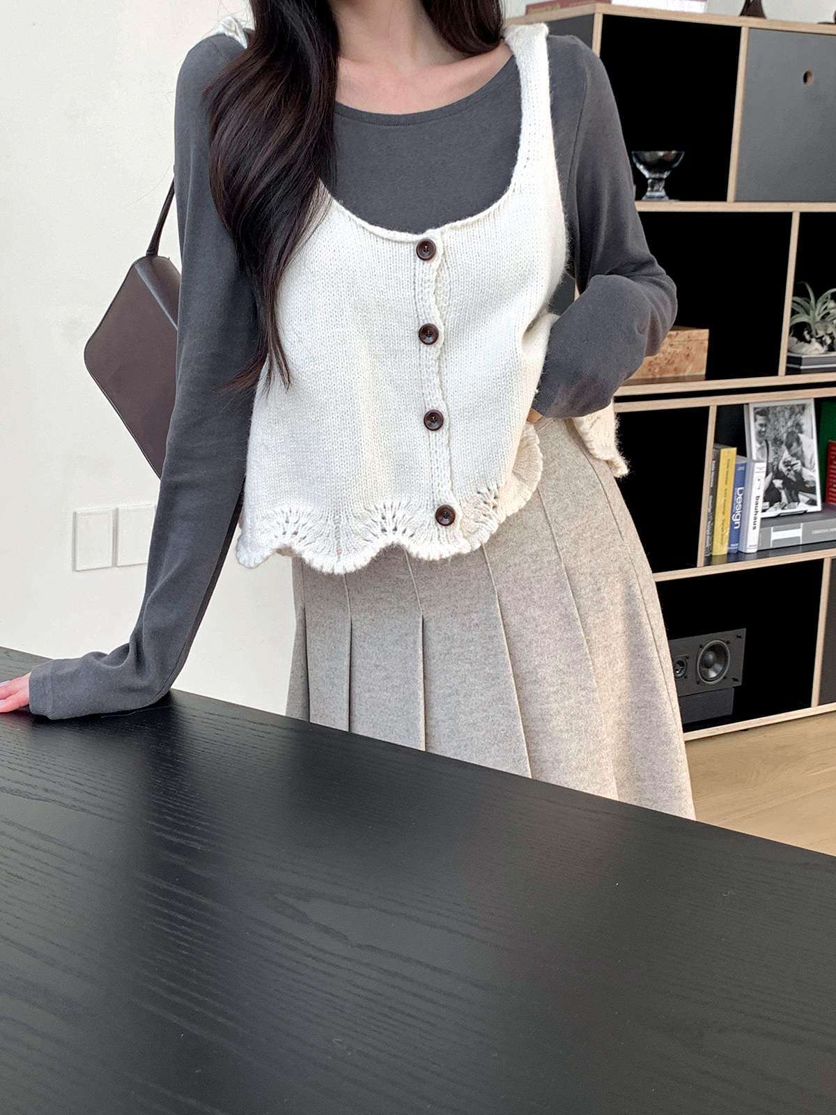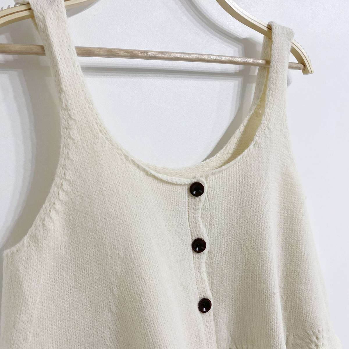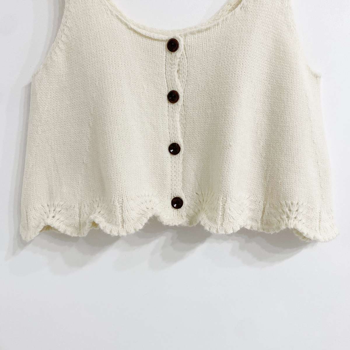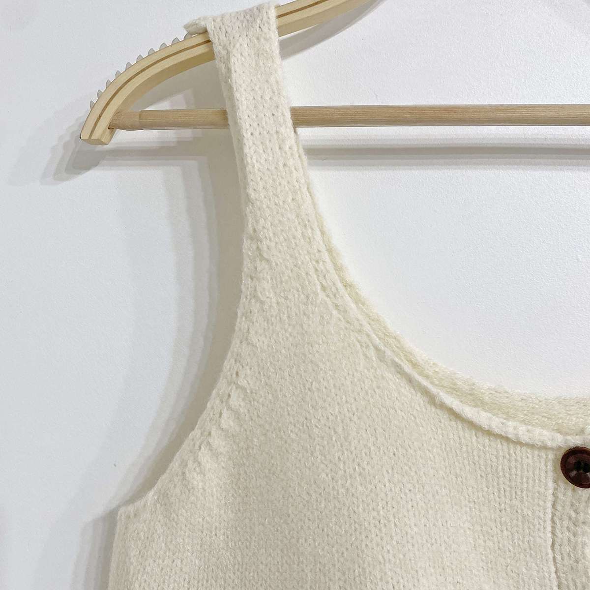 귀여운 버튼 포인트가 돋보이는 물결 펀칭 니트 뷔스티에