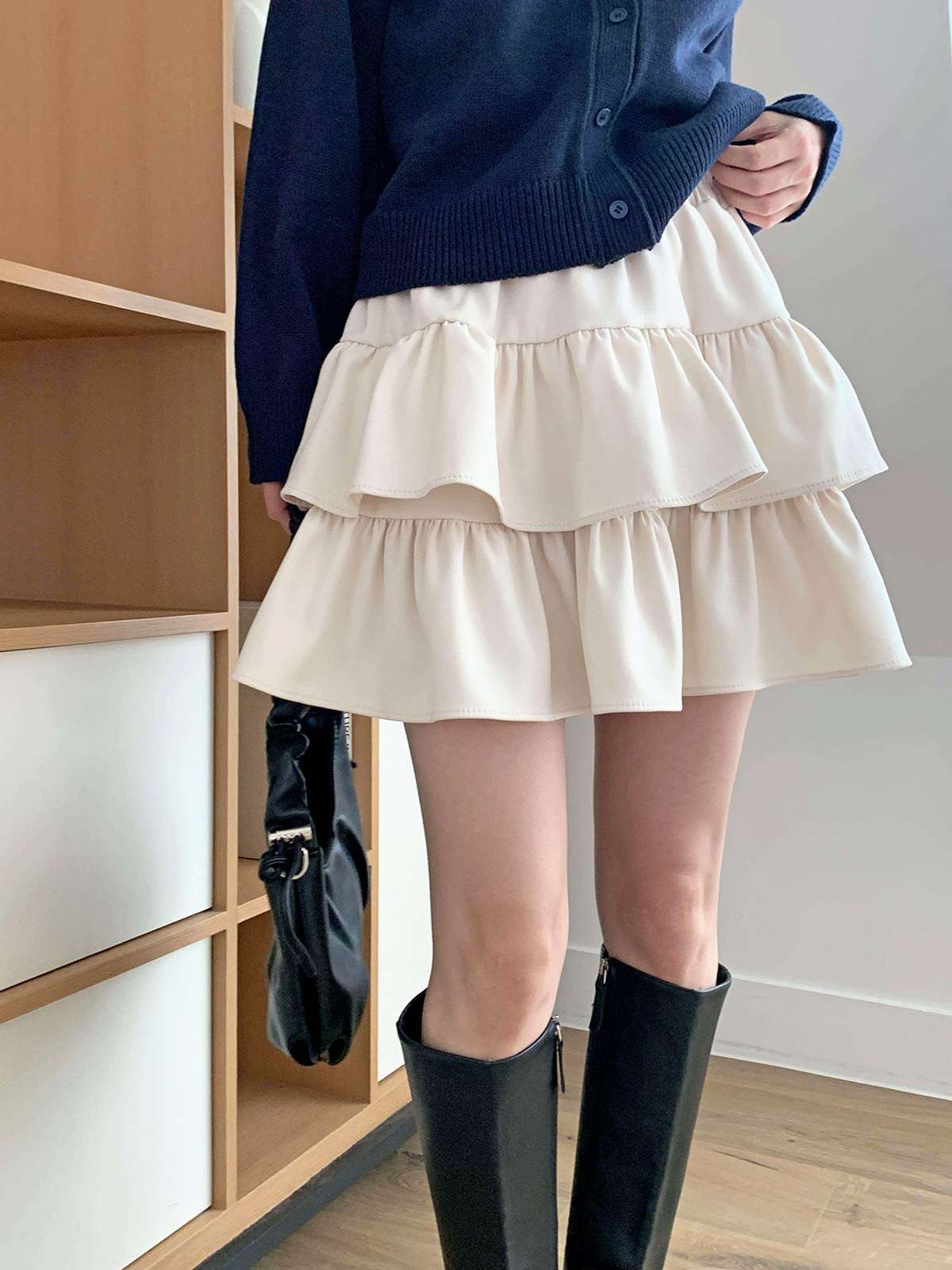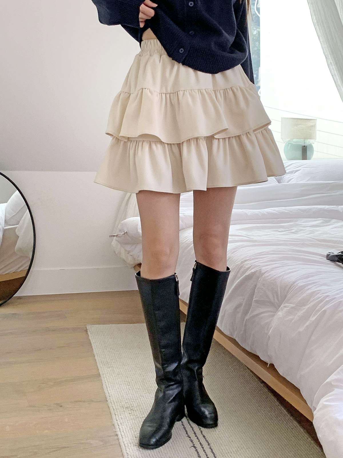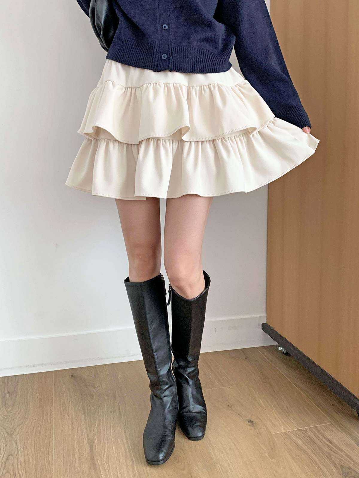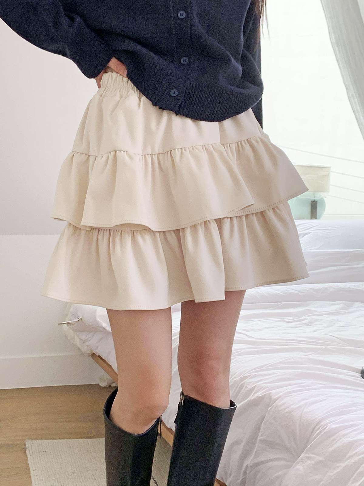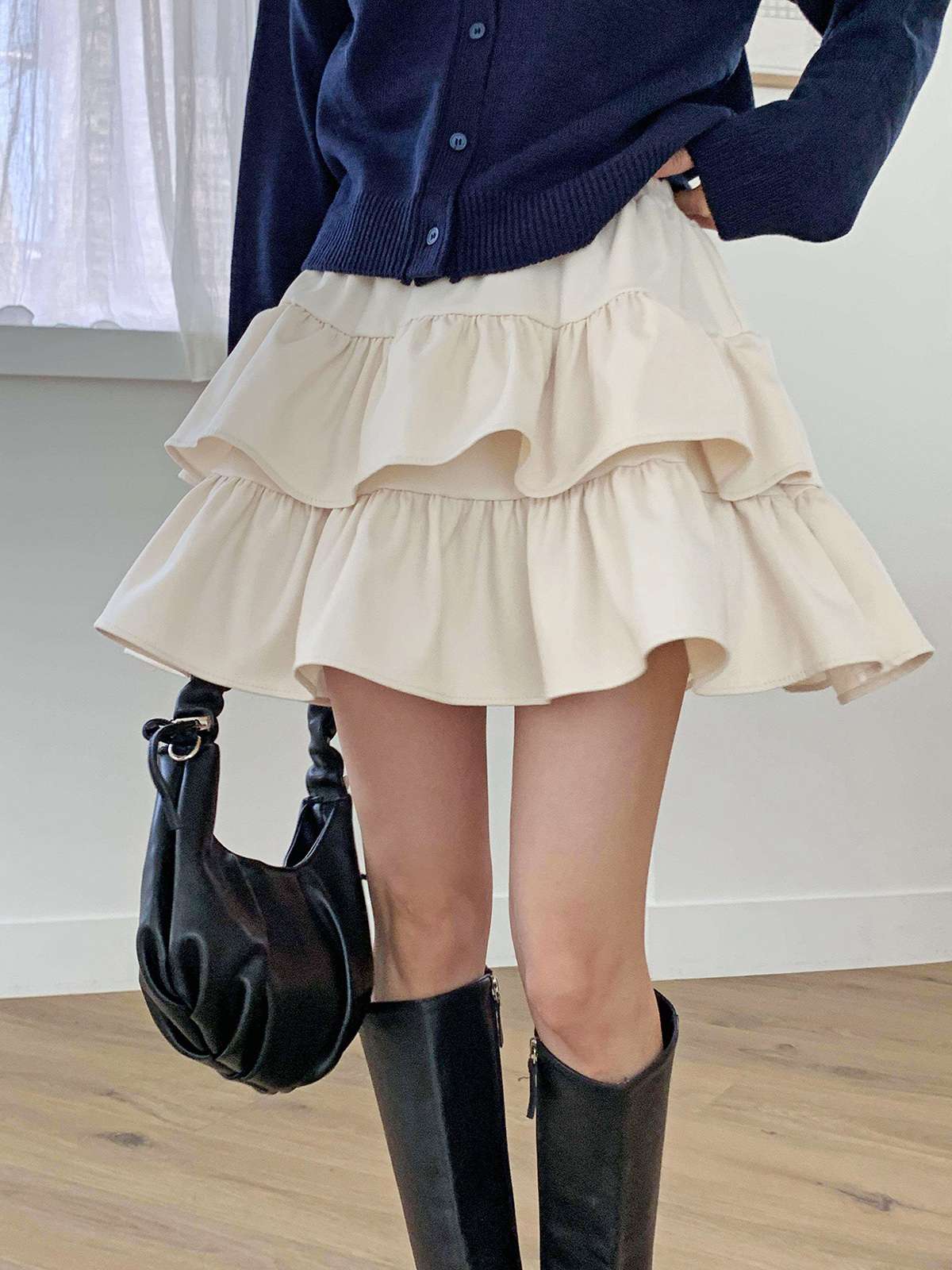 풍성한 캉캉 디자인과 셔링 디테일이 사랑스러운 미니 스커트