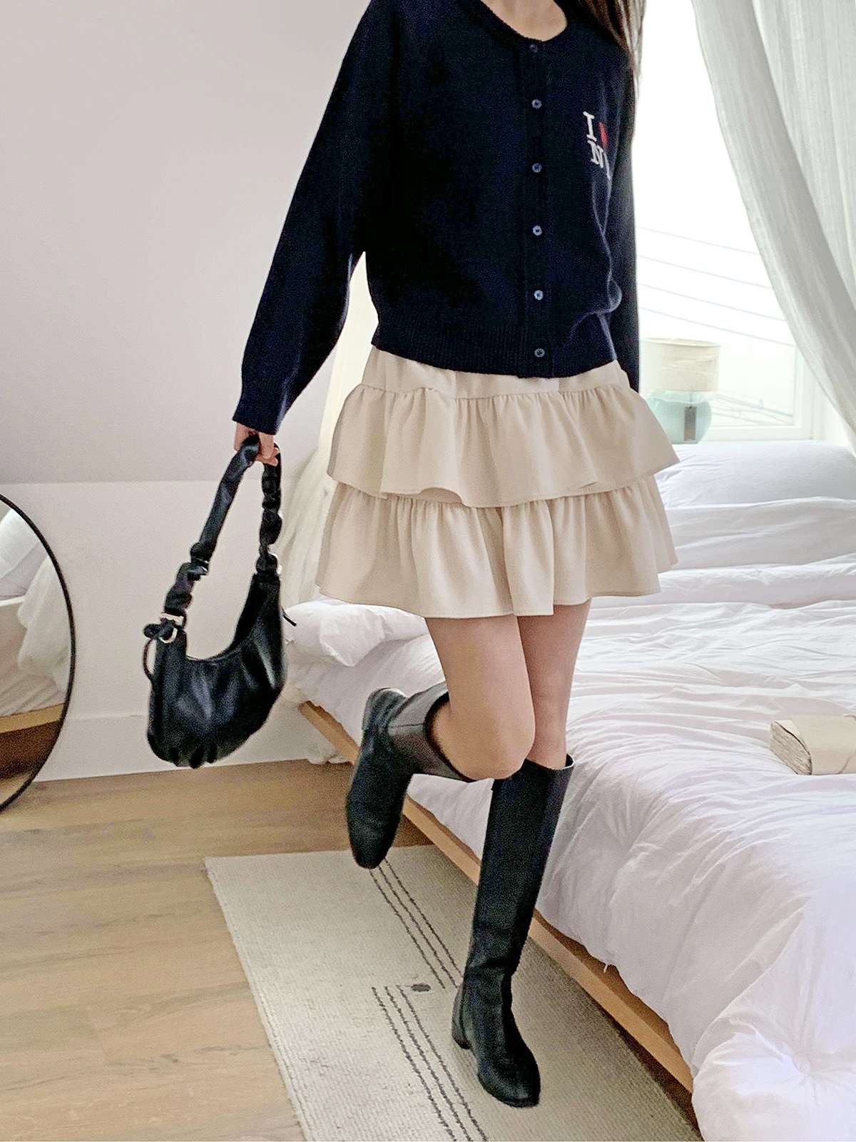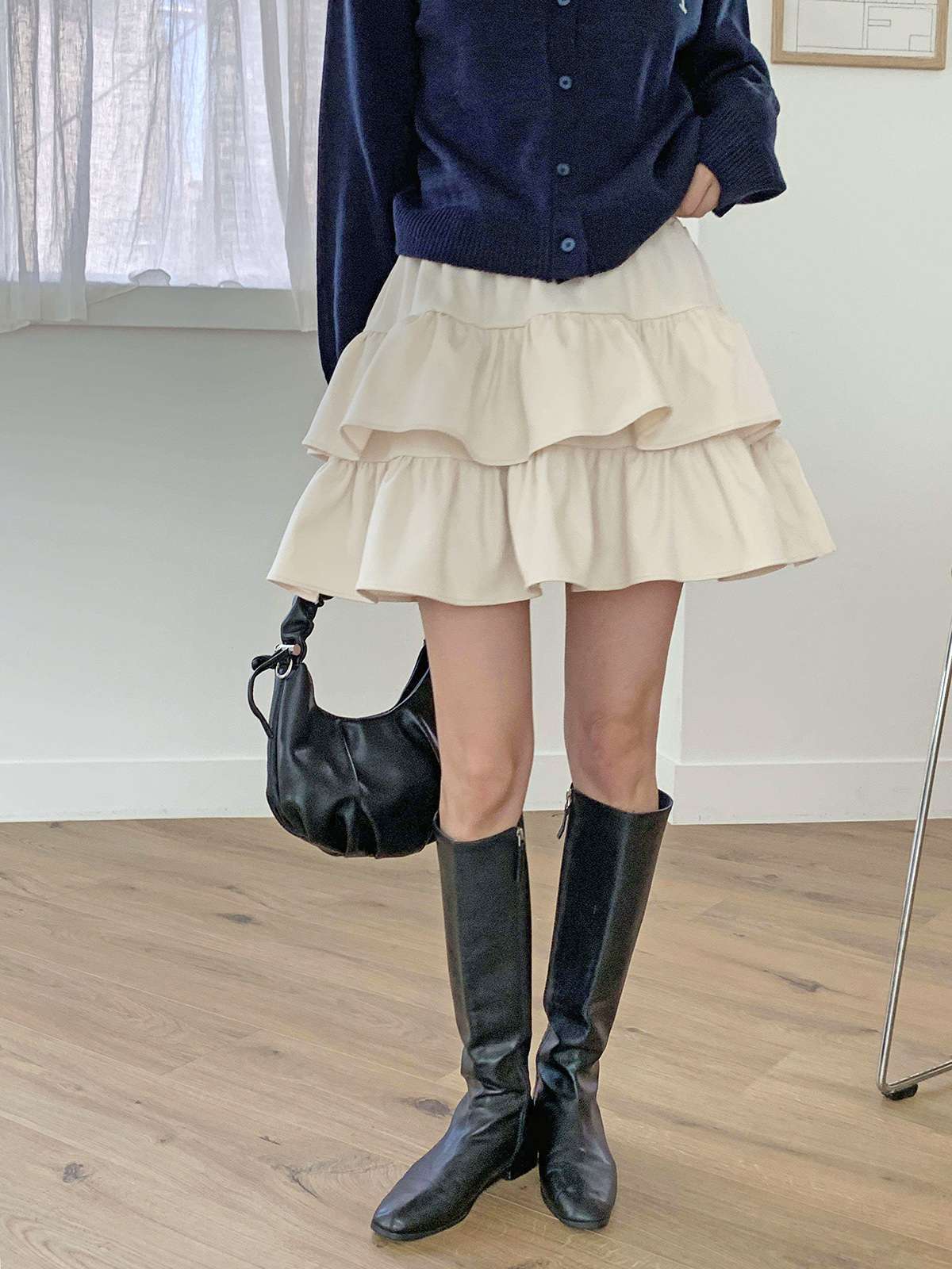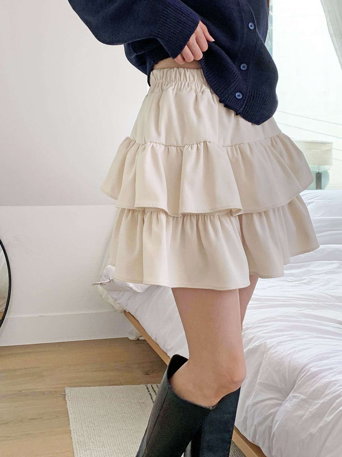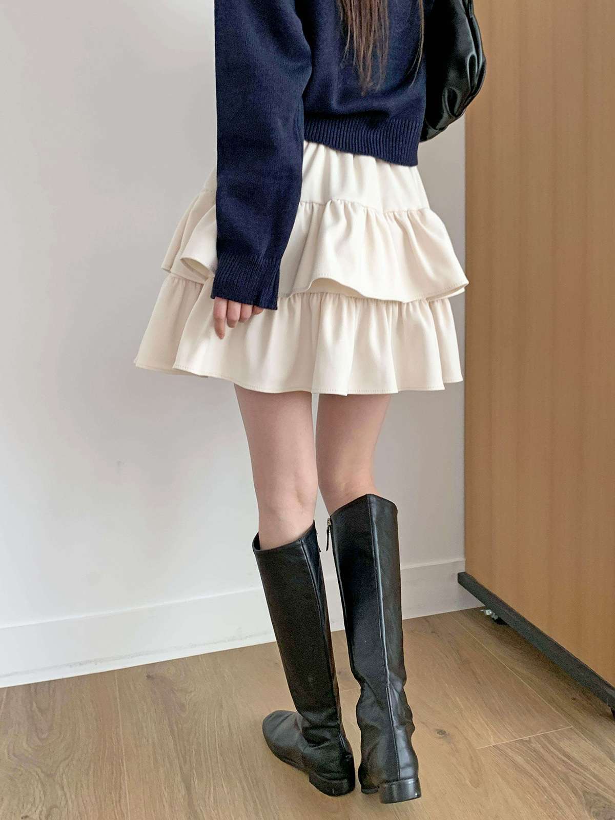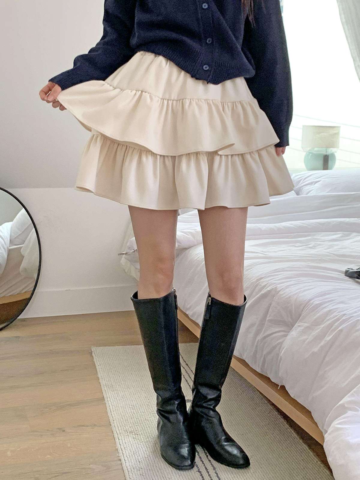 풍성한 캉캉 디자인과 셔링 디테일이 사랑스러운 미니 스커트