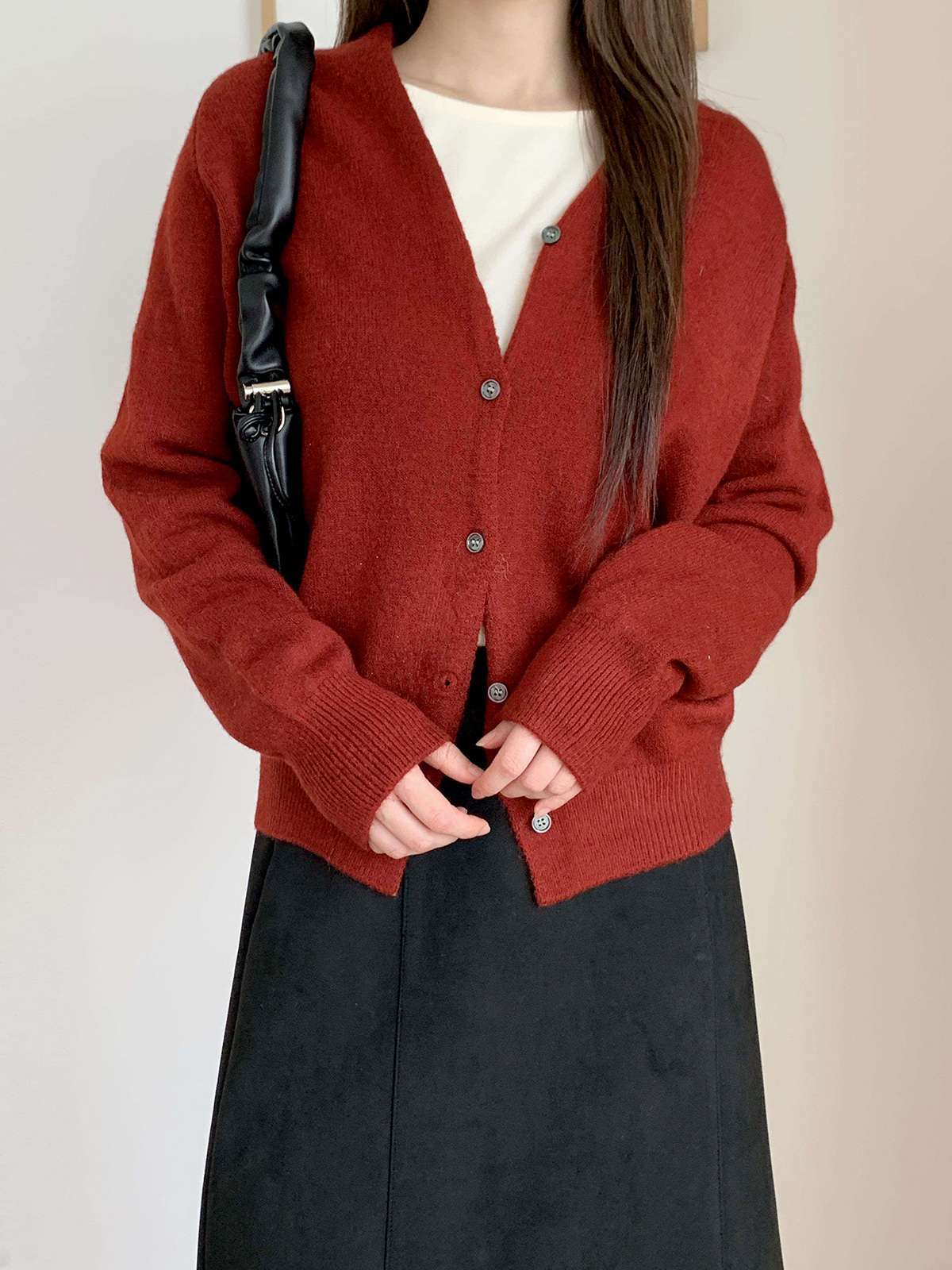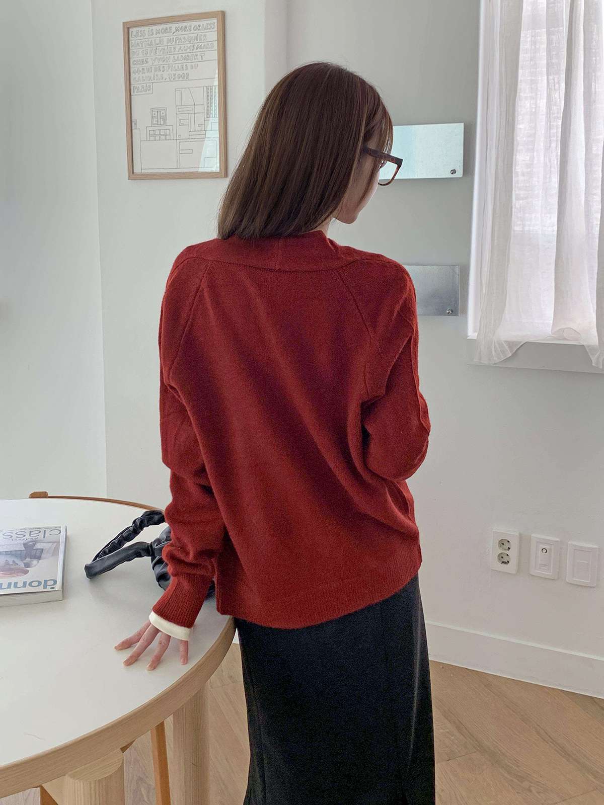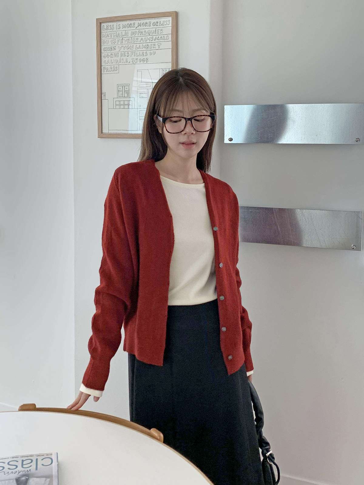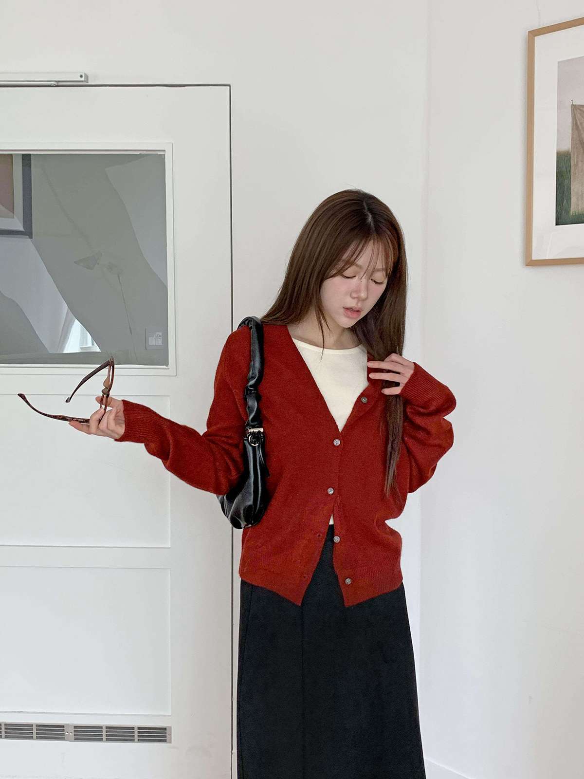 [ CD3629K59-표로히 심플 베이직 브이넥 니트 가디건 ]