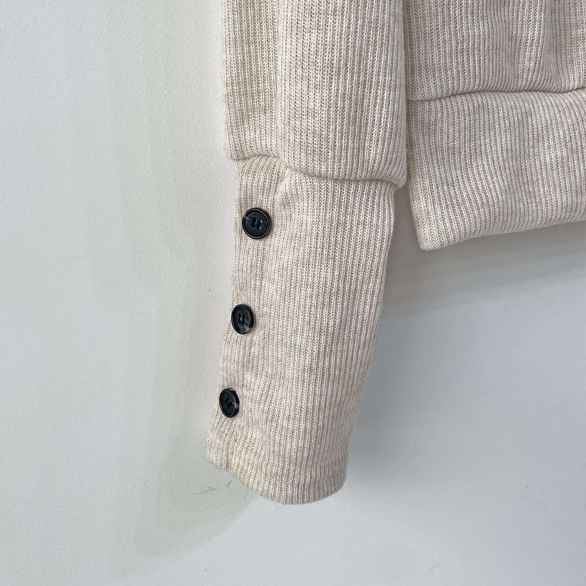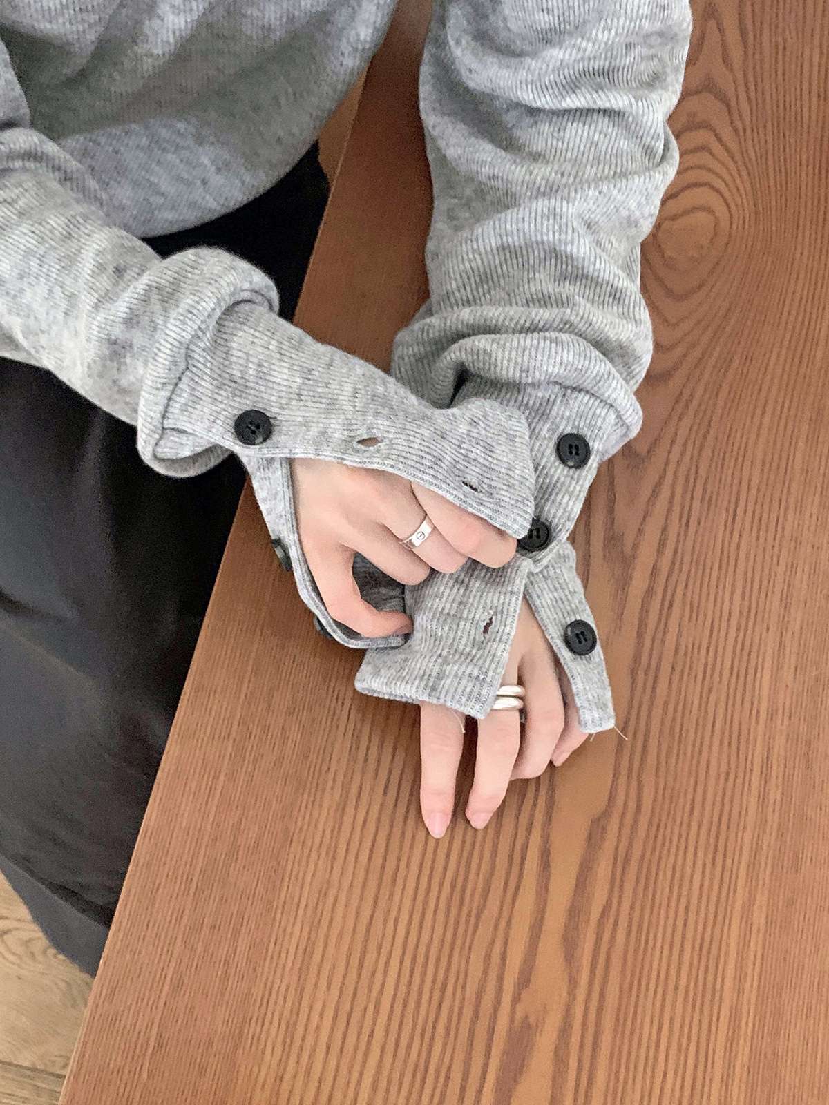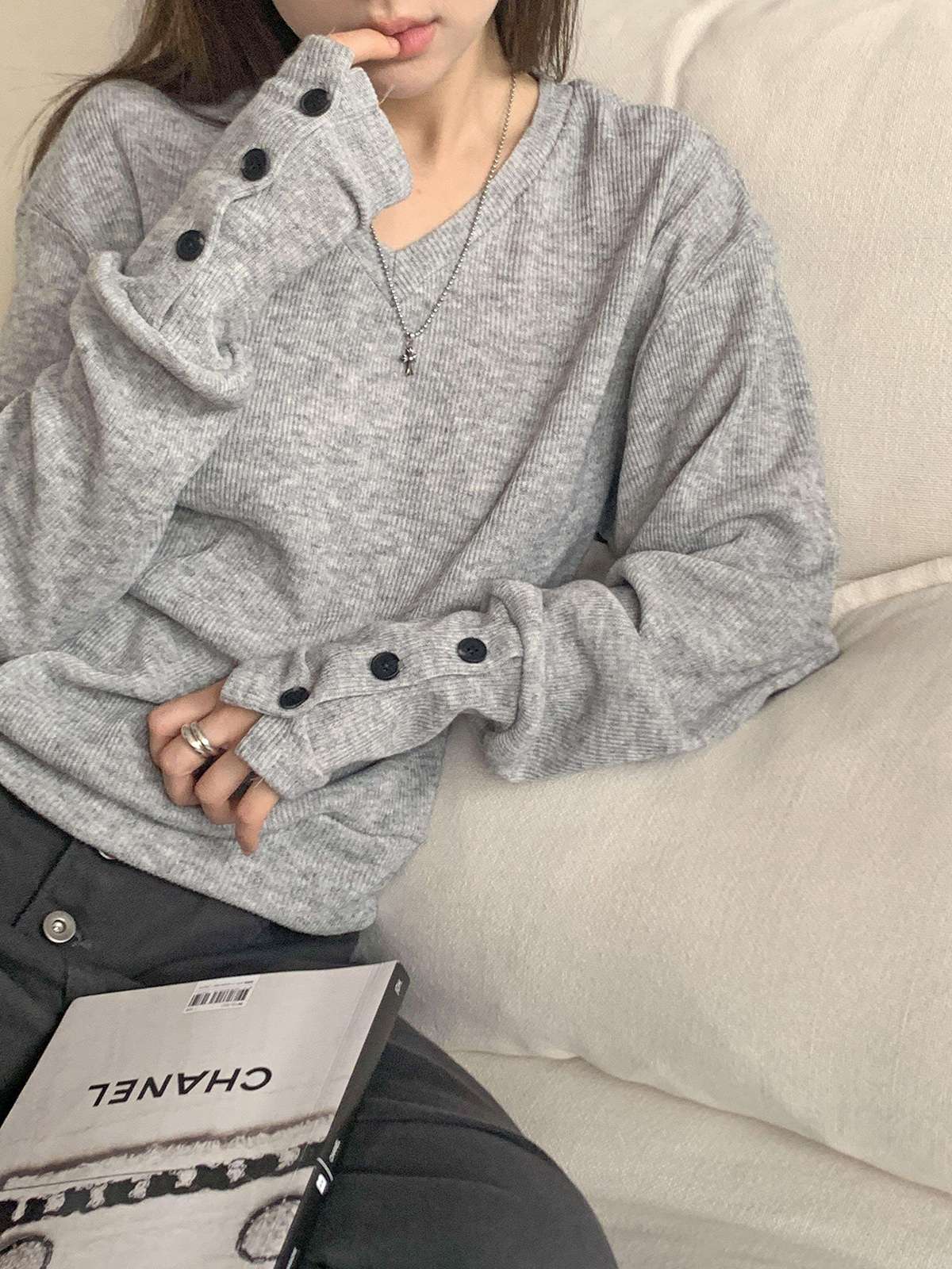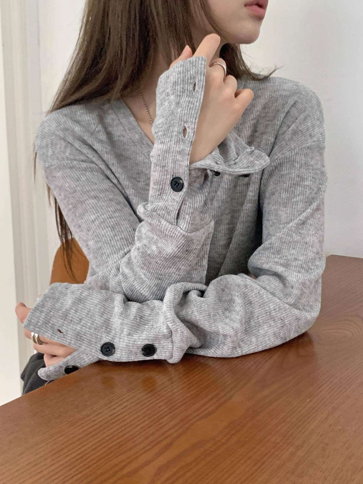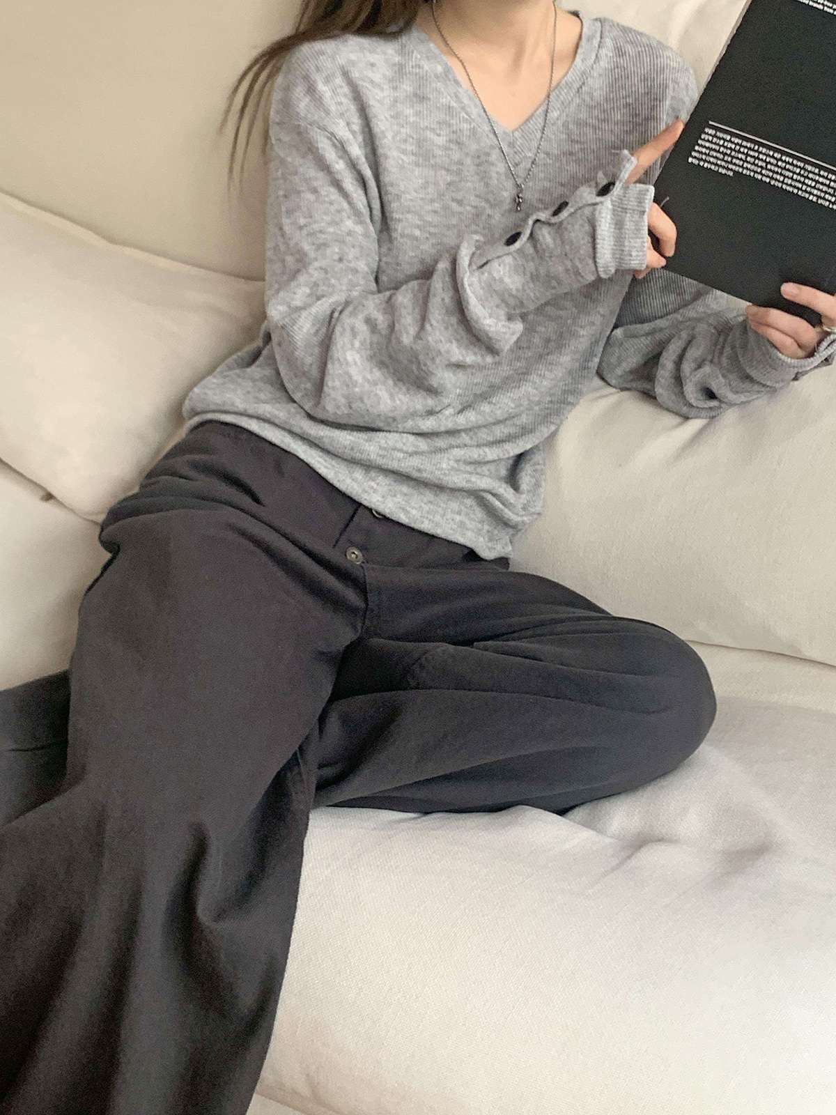 길어보이는 목선을 연출해주는 브이넥과 낙낙한 품과 긴소매 디자인과 소매버튼으로