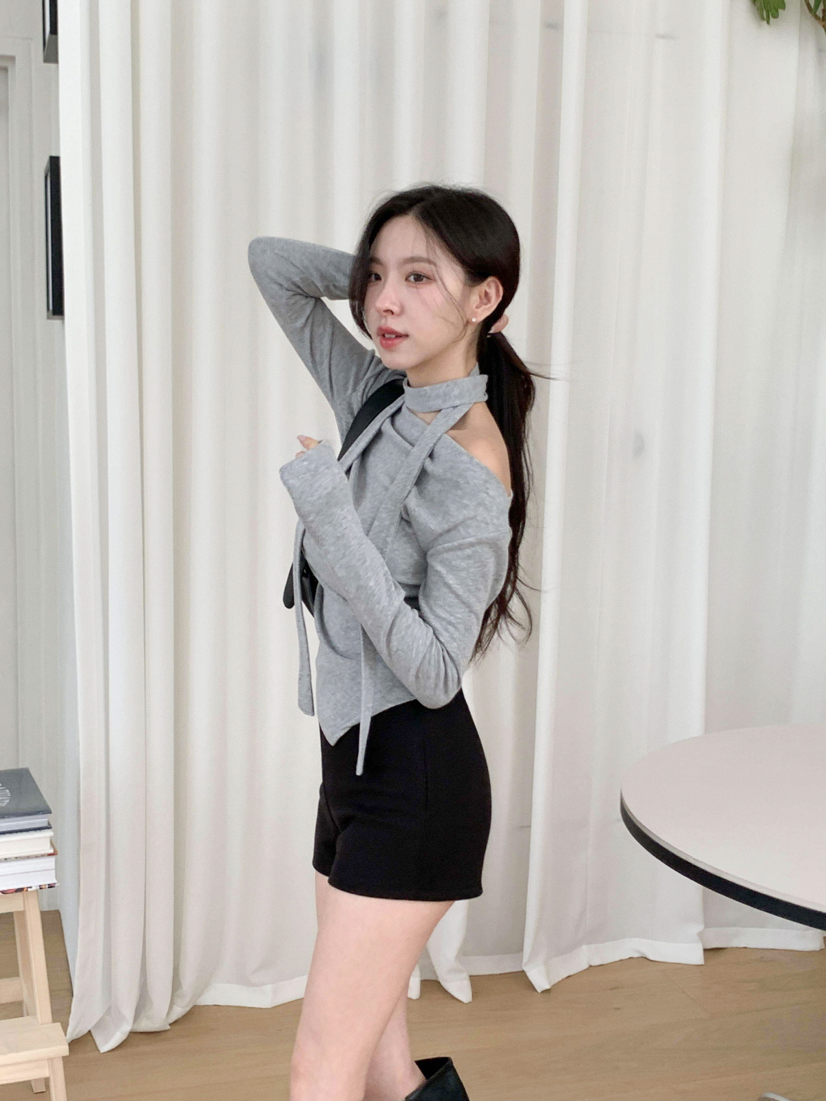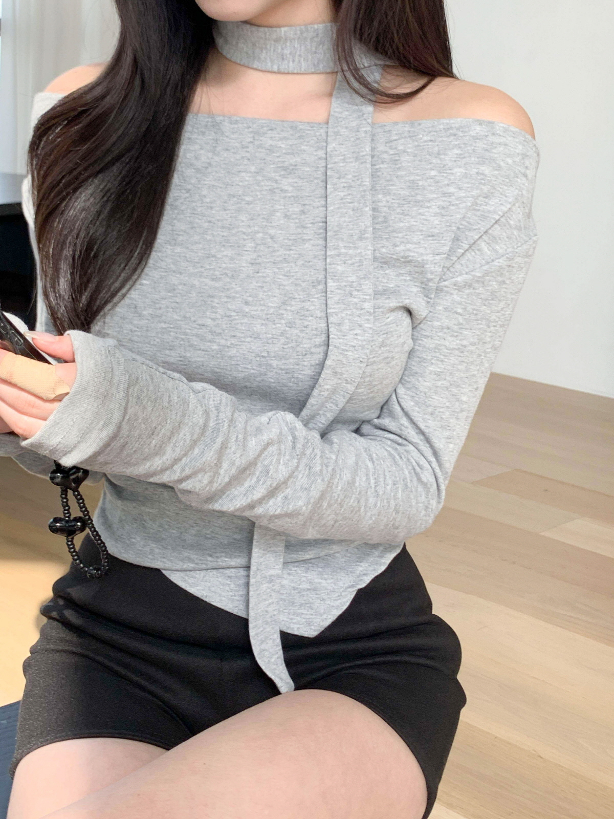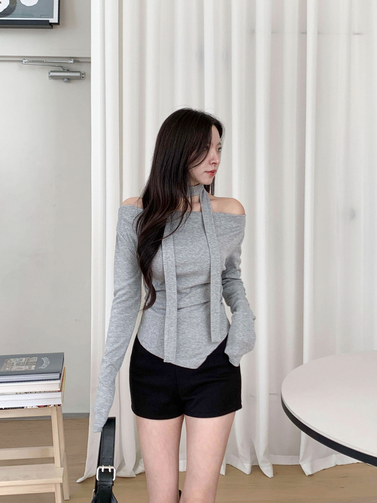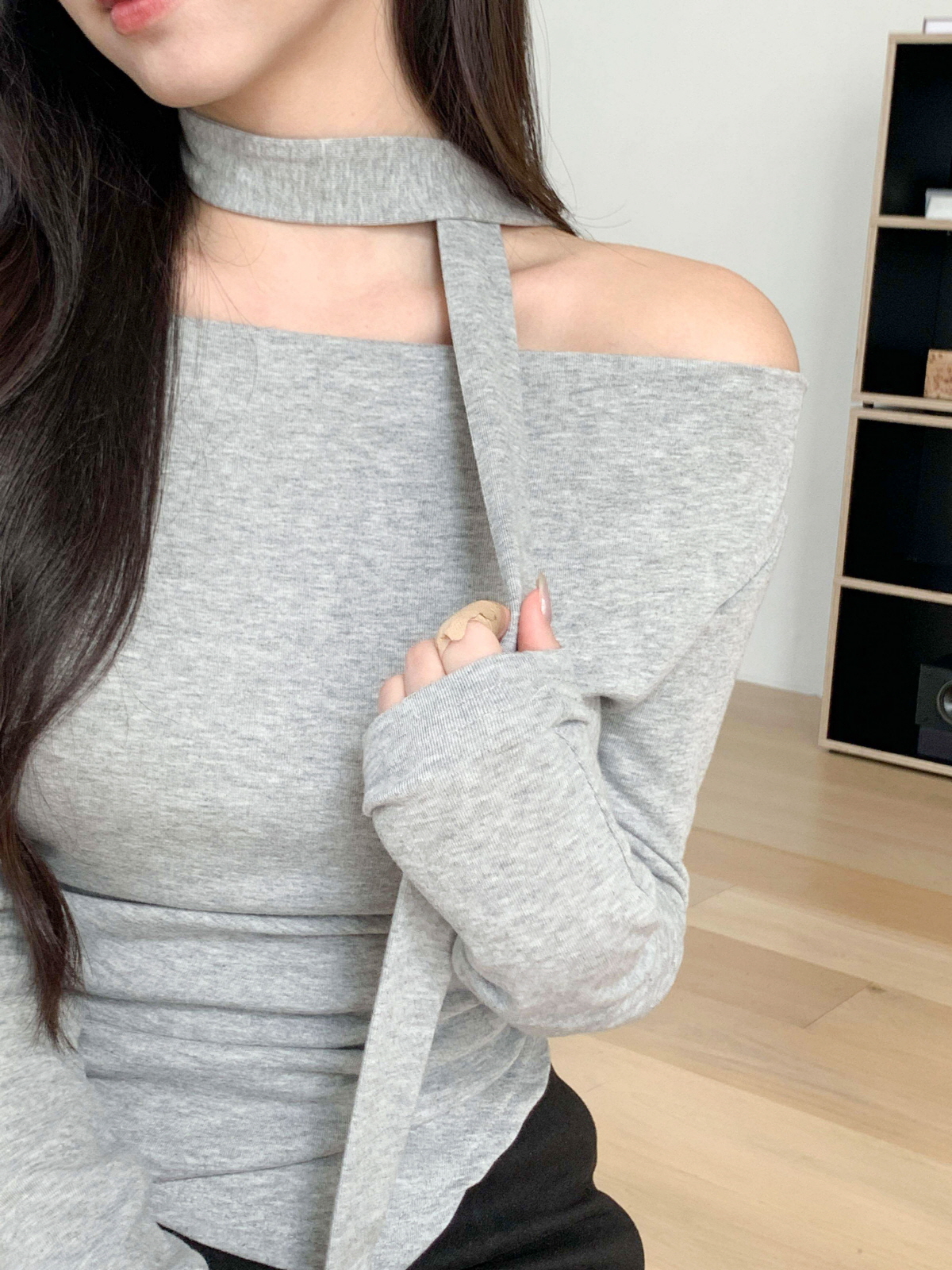 #티셔츠#라운드티셔츠#여성티셔츠#데일리룩#데일리코디#데일리#캐쥬얼#오프숄더티셔츠#머플러세트#스카프세트#드레이프티셔츠