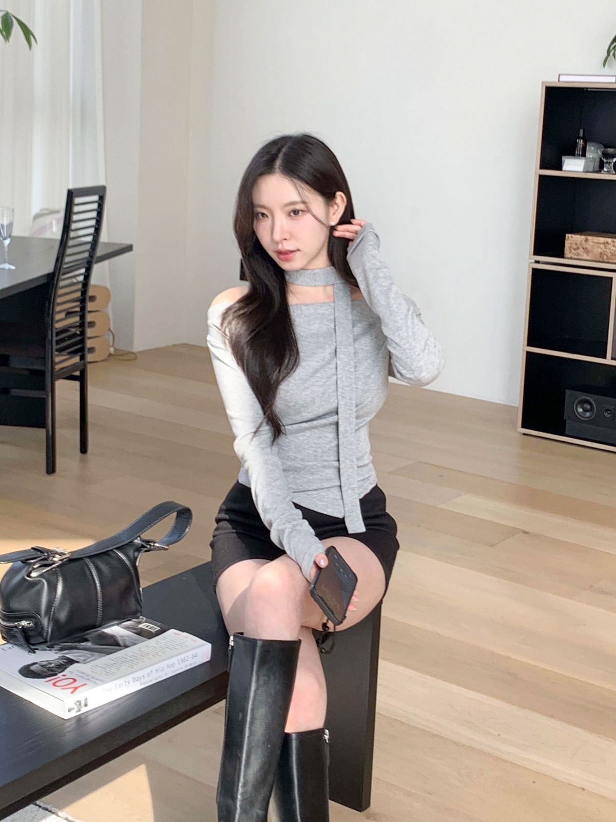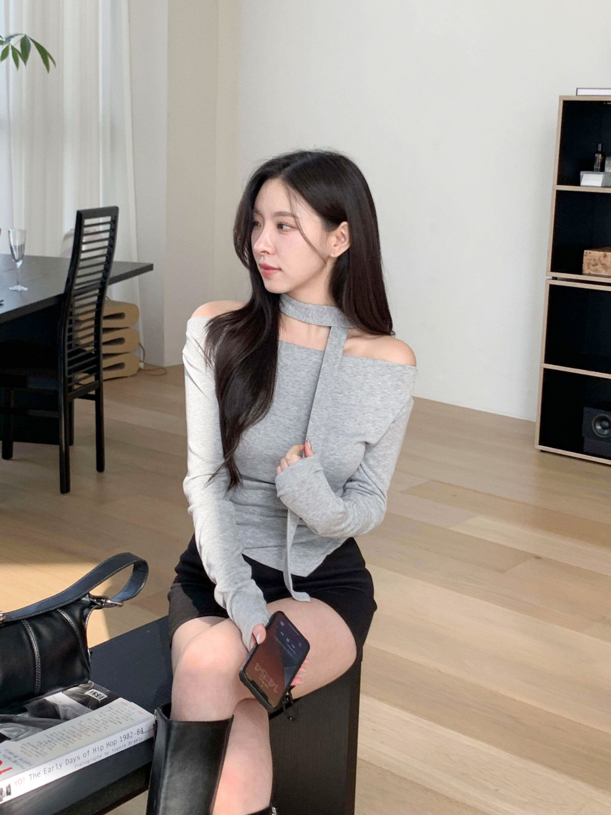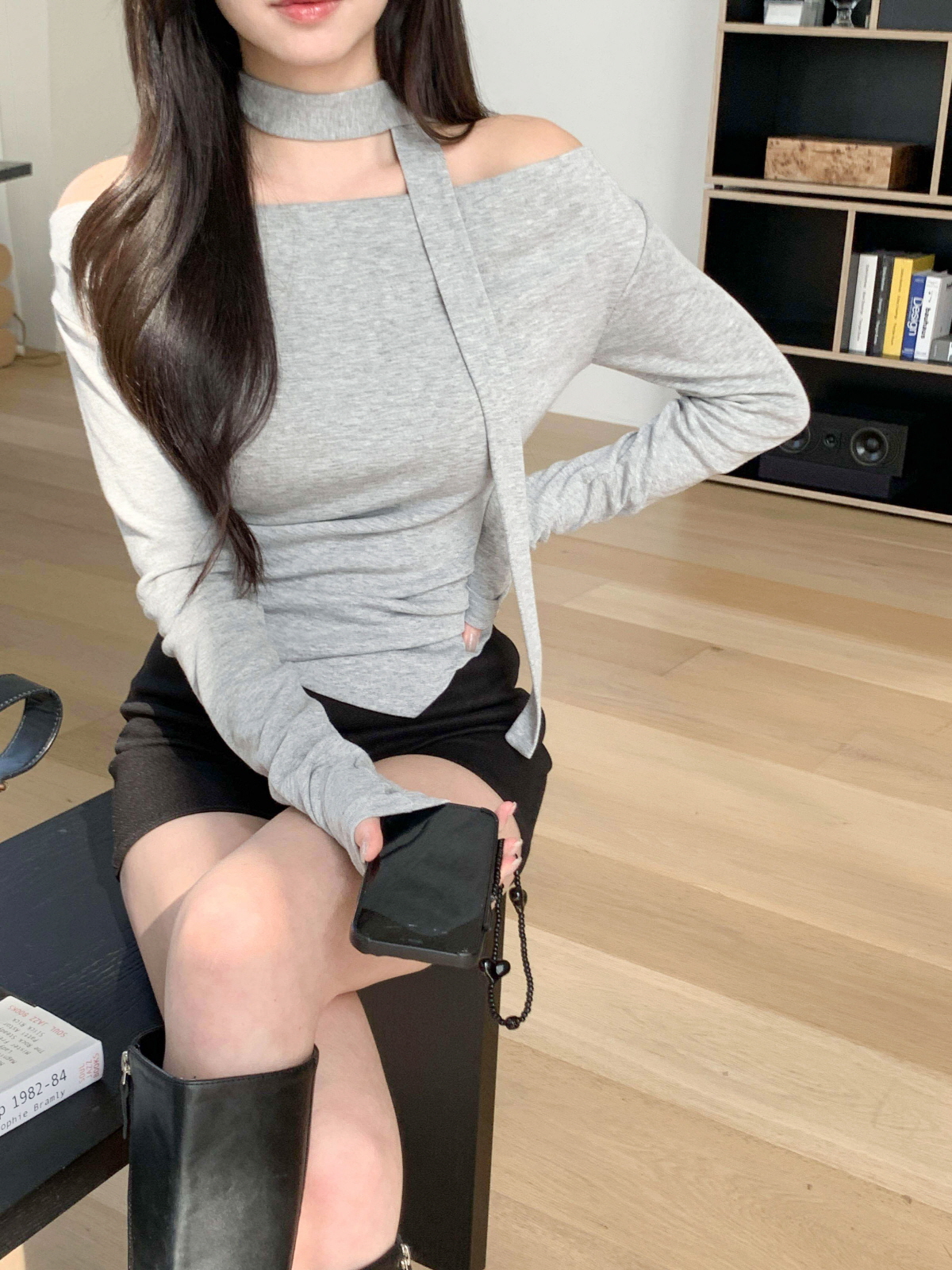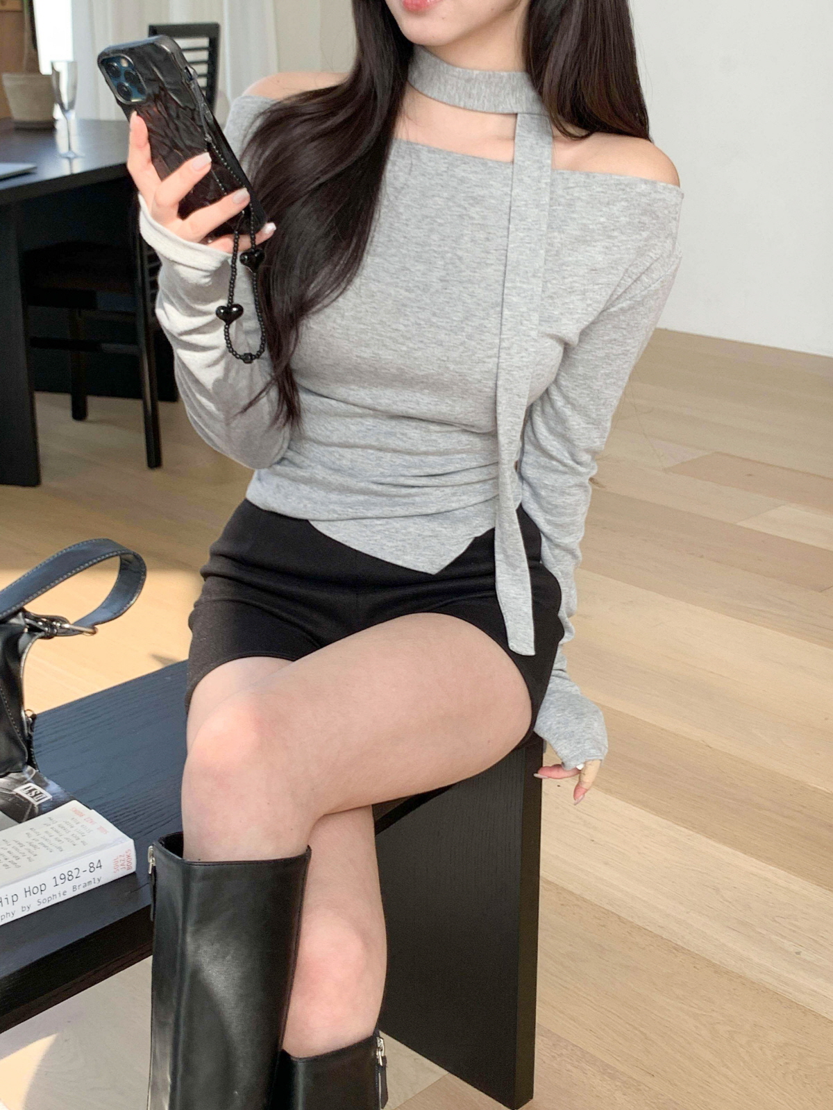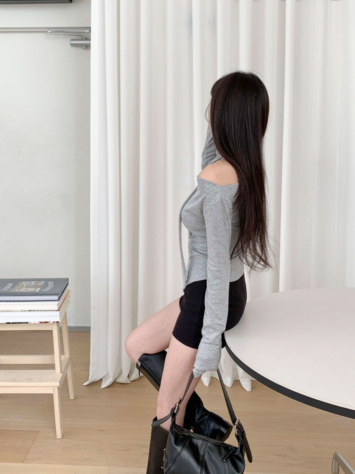 #티셔츠#라운드티셔츠#여성티셔츠#데일리룩#데일리코디#데일리#캐쥬얼#오프숄더티셔츠#머플러세트#스카프세트#드레이프티셔츠