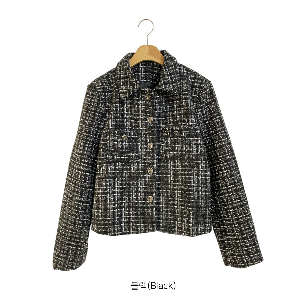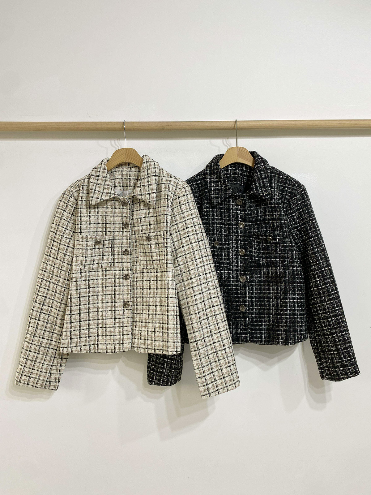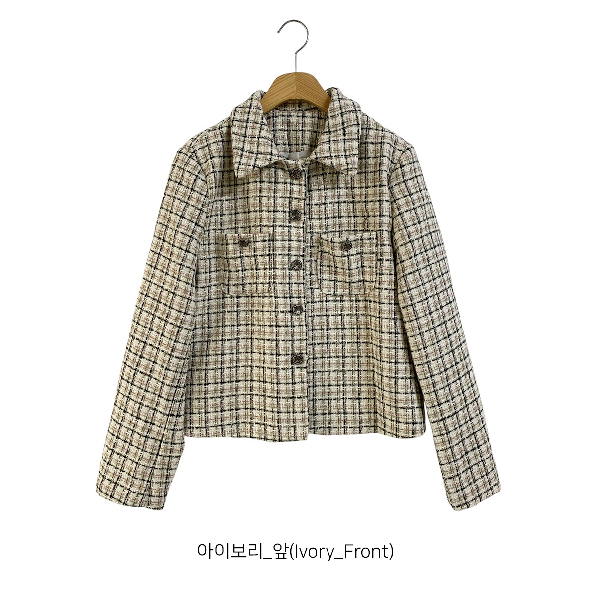 JK6066K59-처르비 버튼 체크 트위드 자켓
