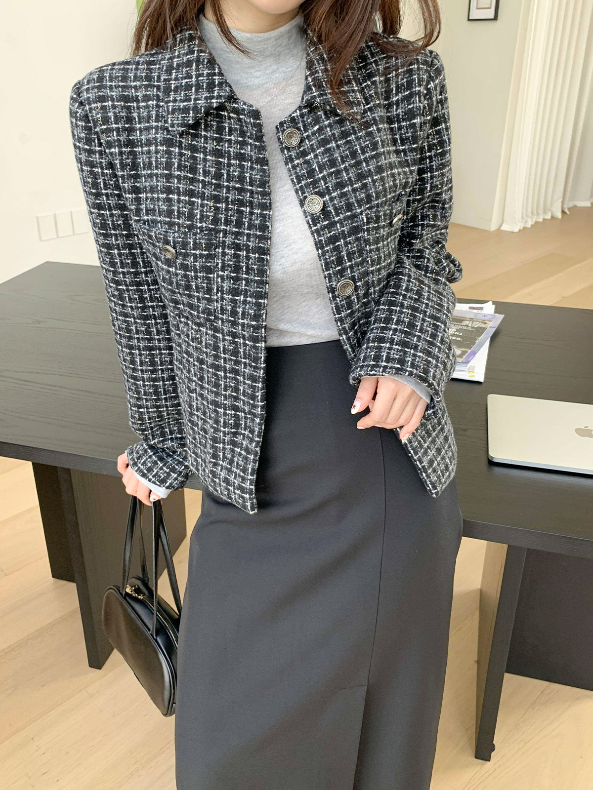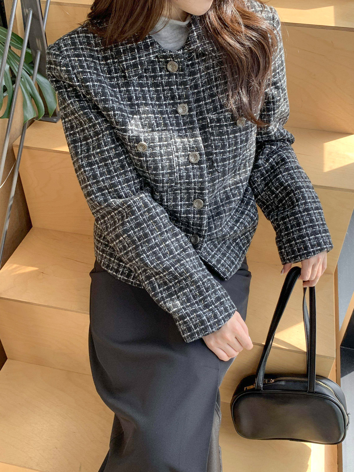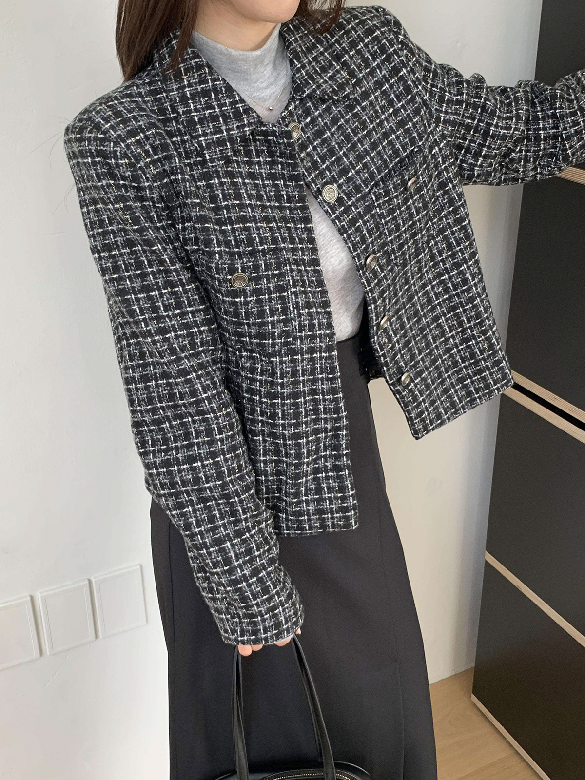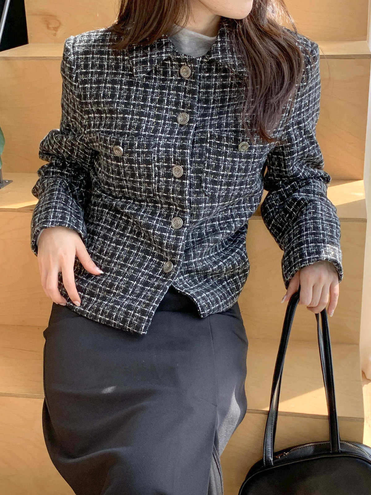 JK6066K59-처르비 버튼 체크 트위드 자켓