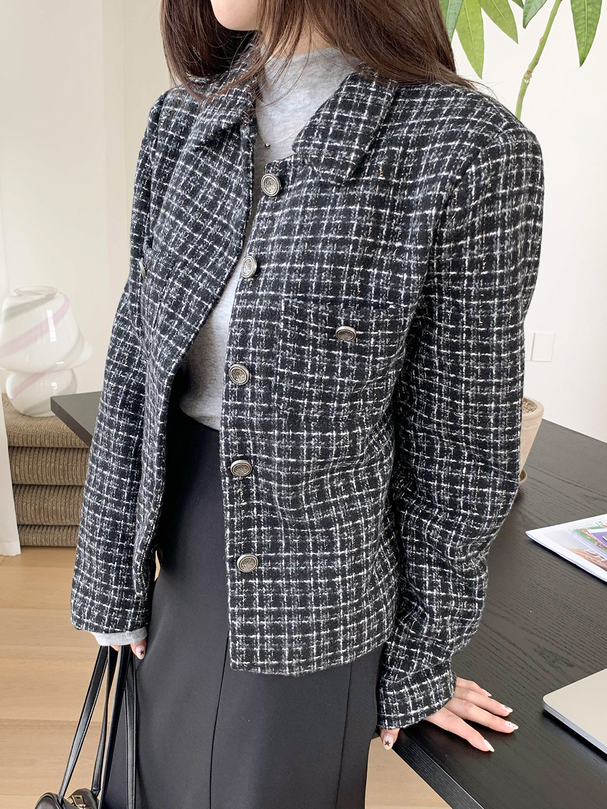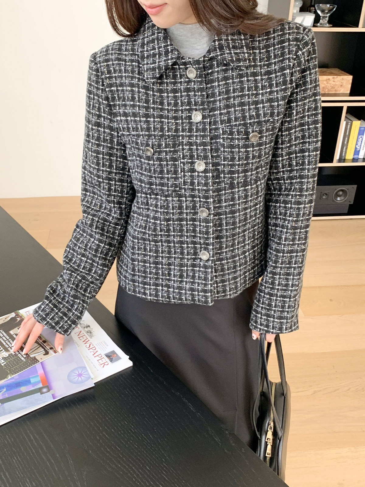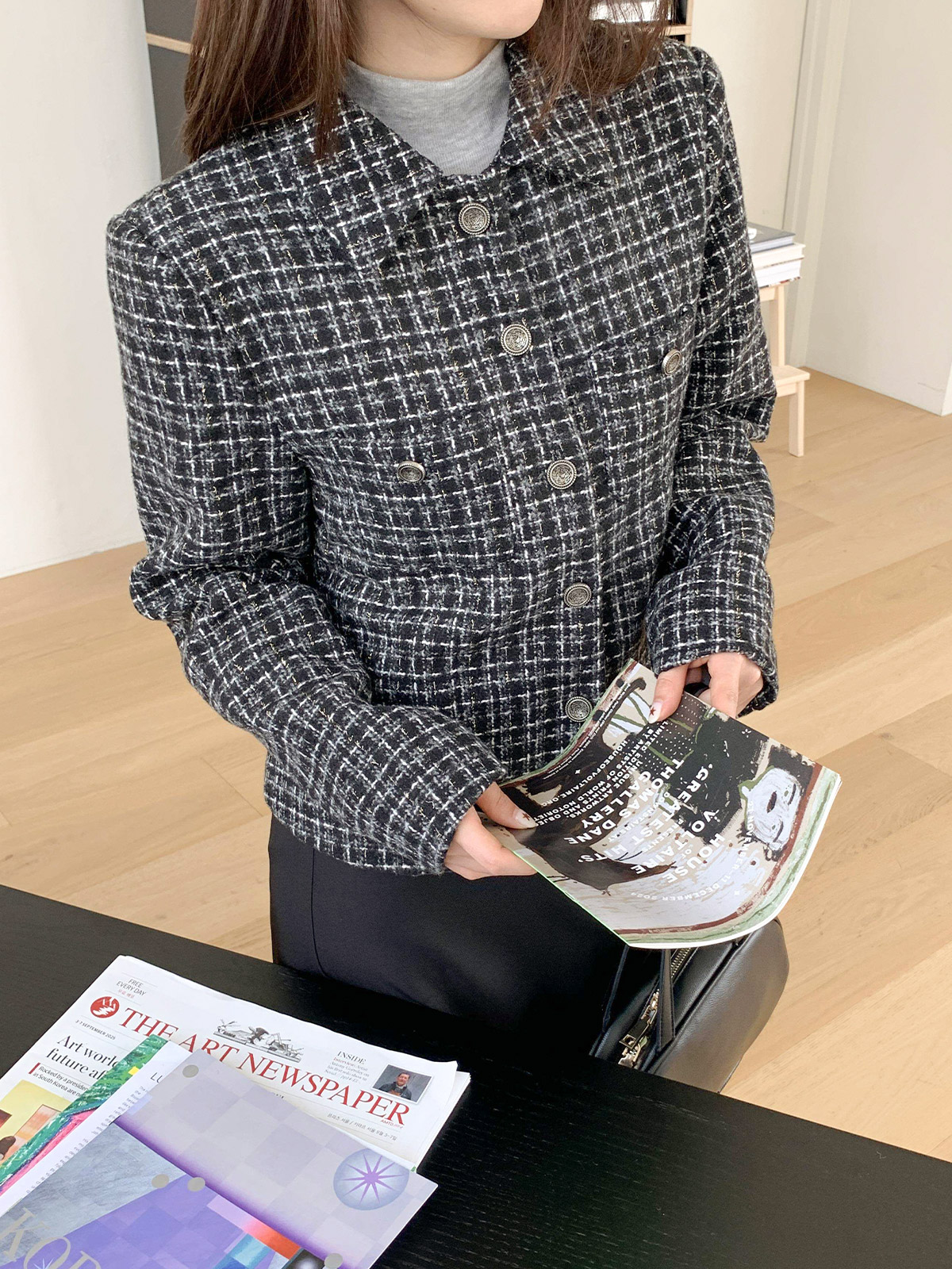 클래식한 트위드 체크 패턴이 돋보이는 숏 자켓