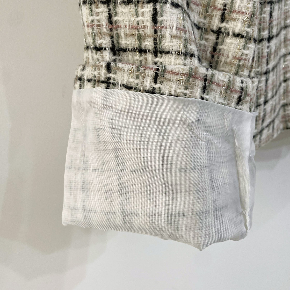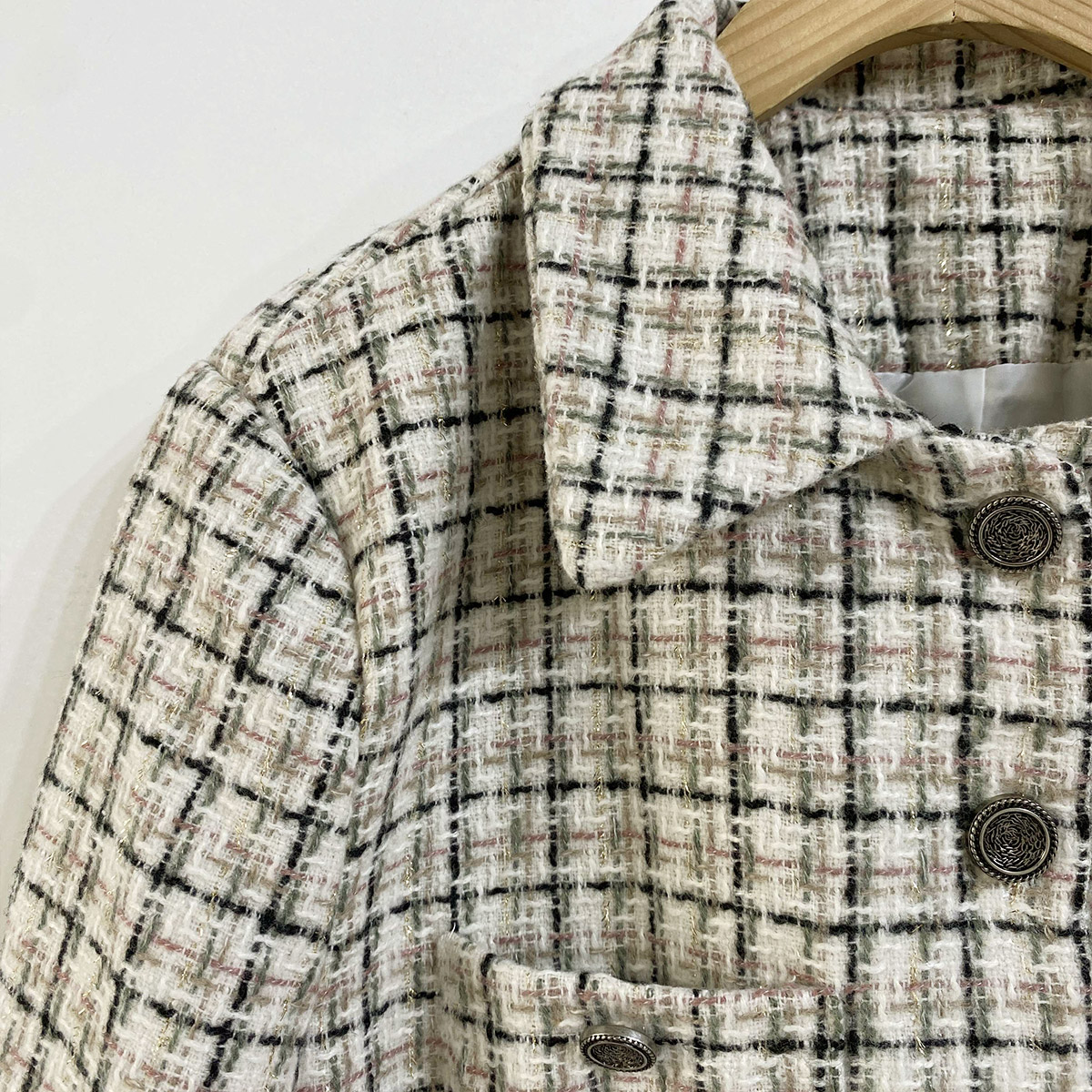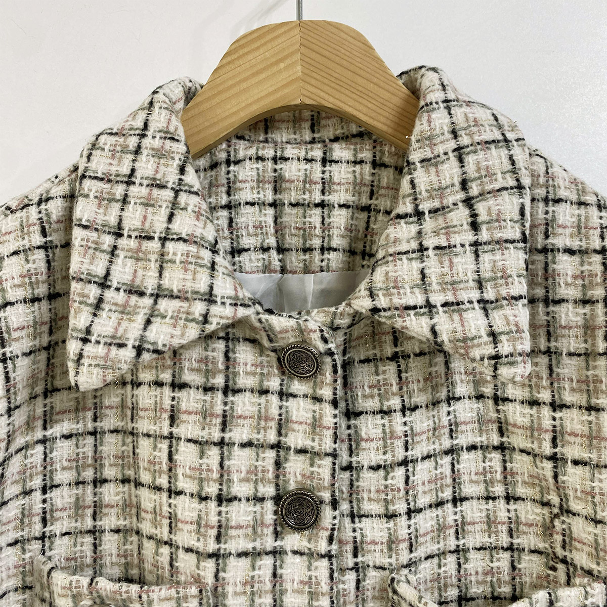 클래식한 트위드 체크 패턴이 돋보이는 숏 자켓