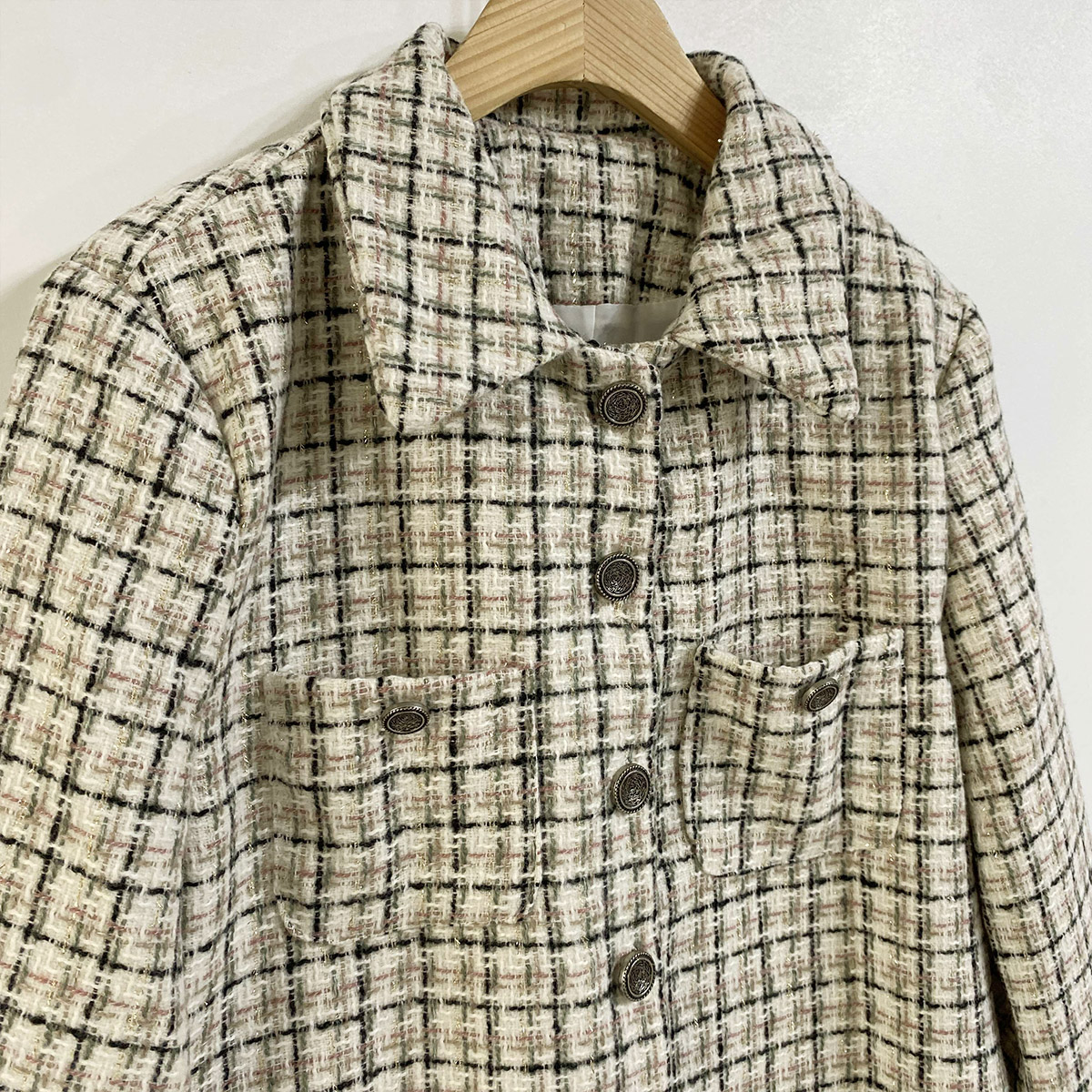[ JK6066K59-처르비 버튼 체크 트위드 자켓 ]