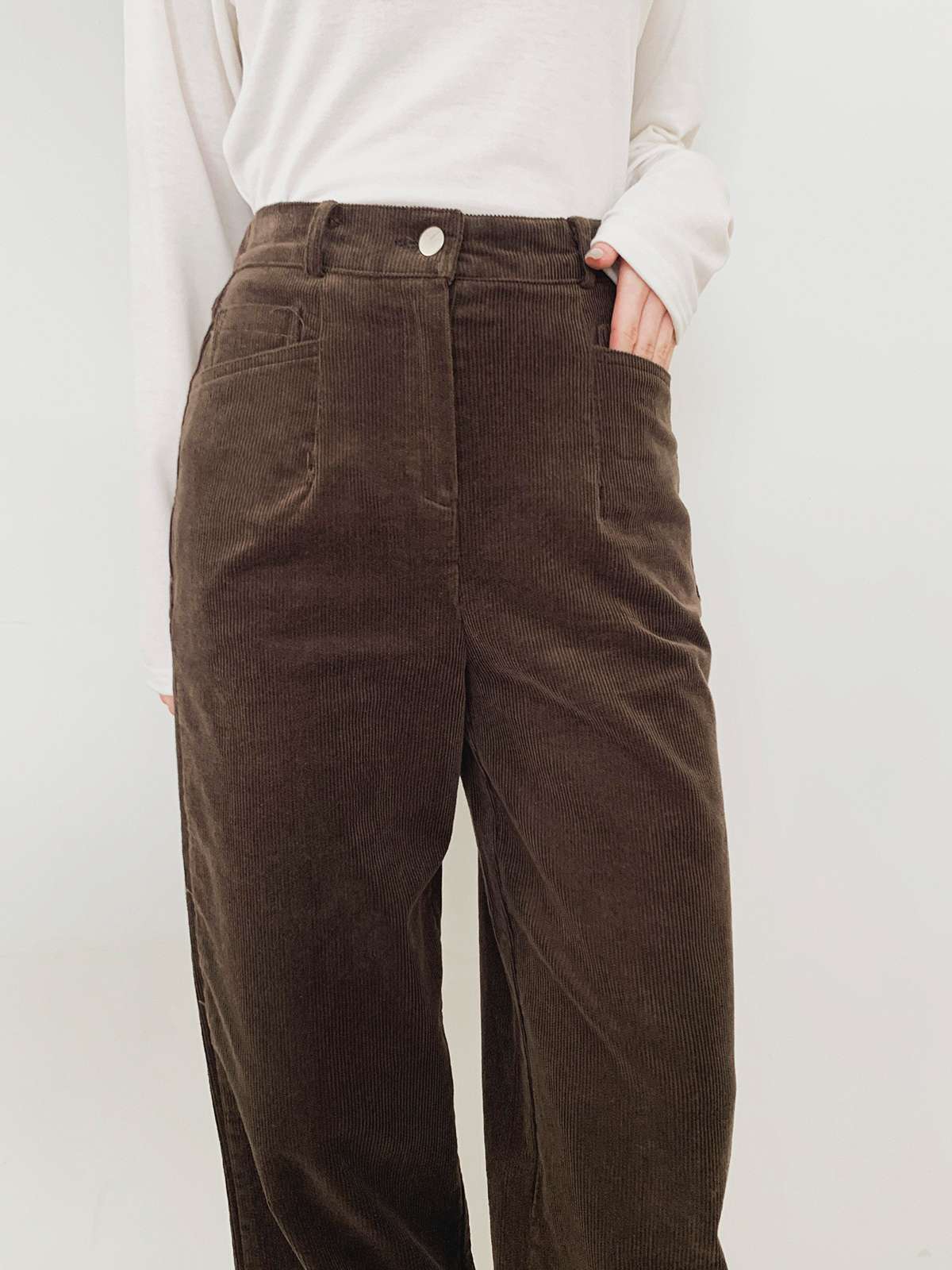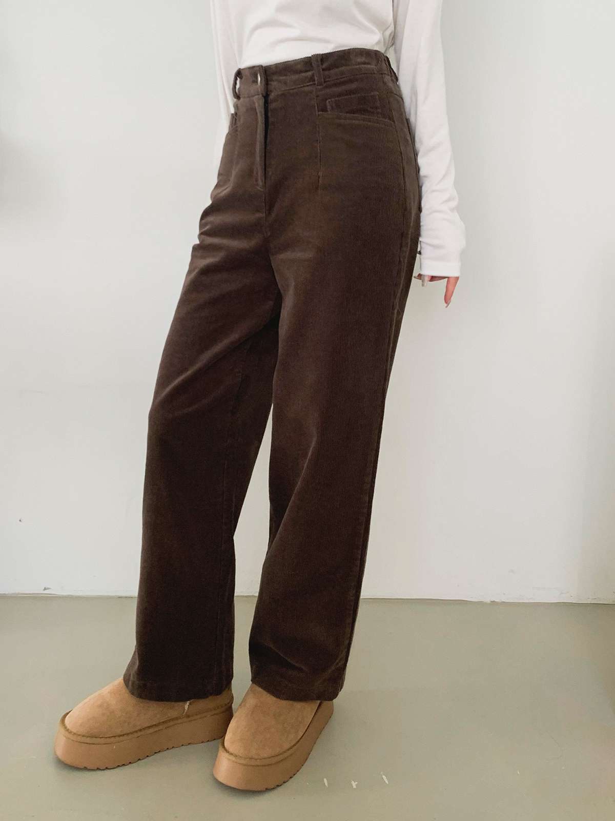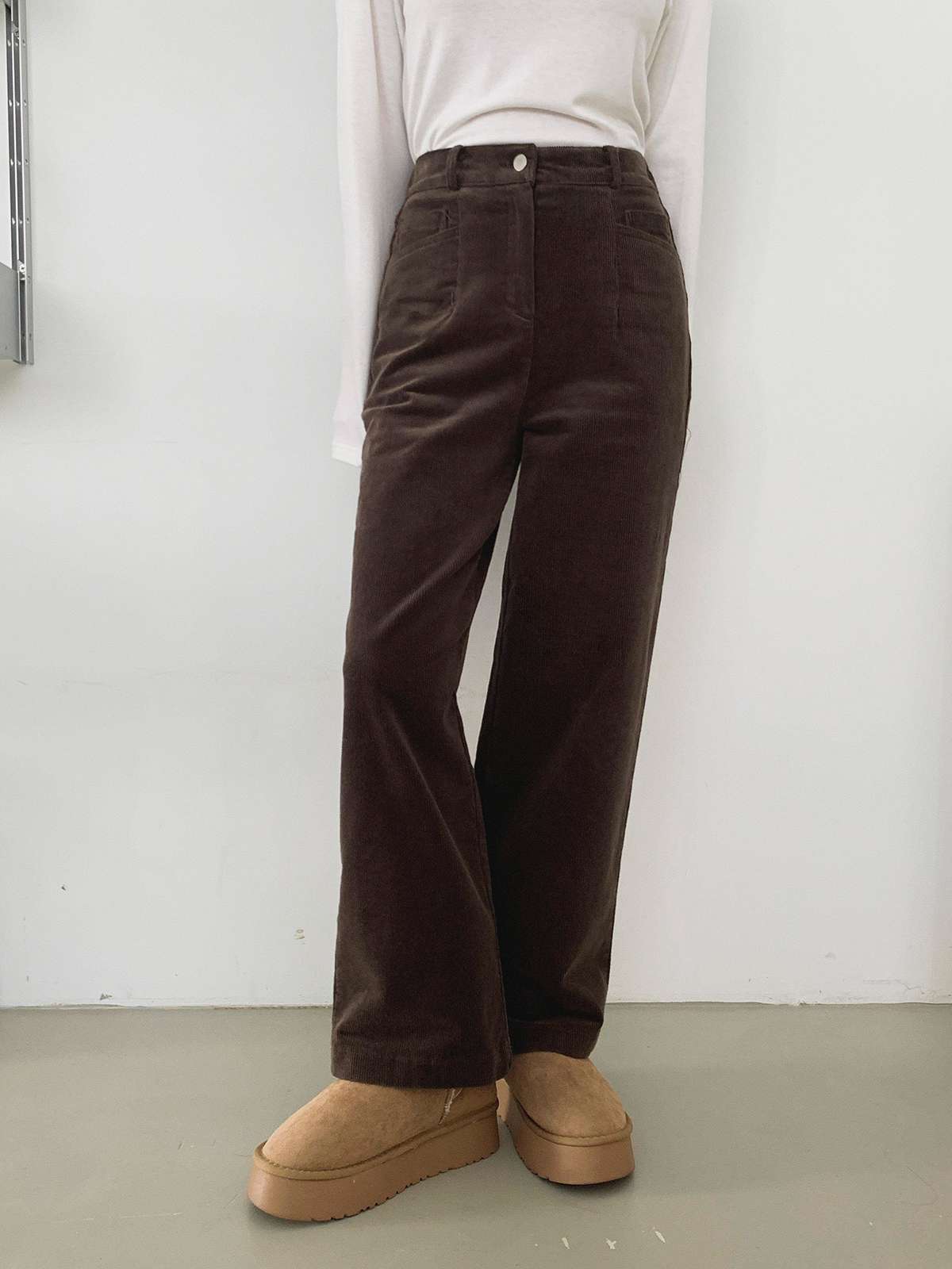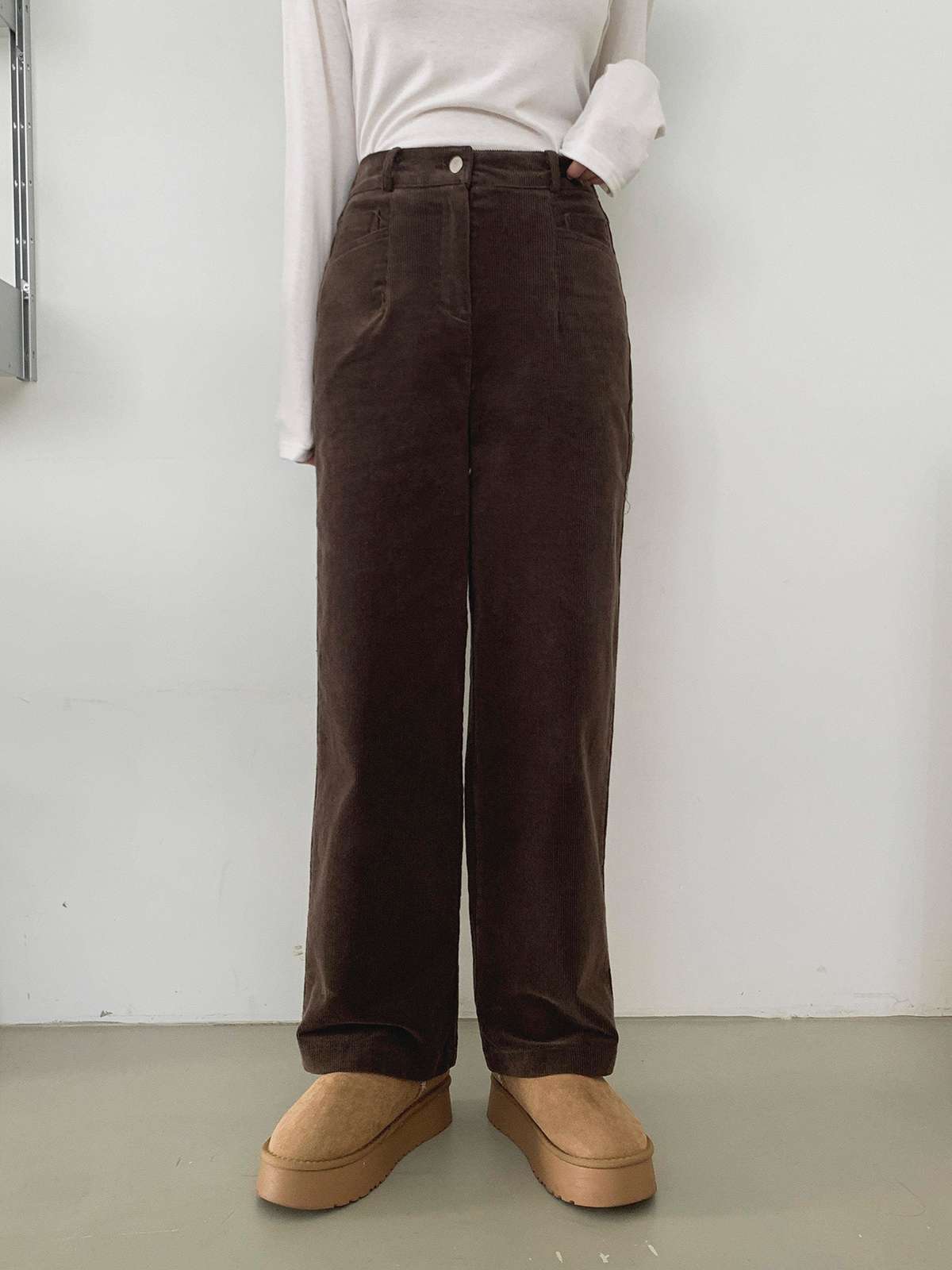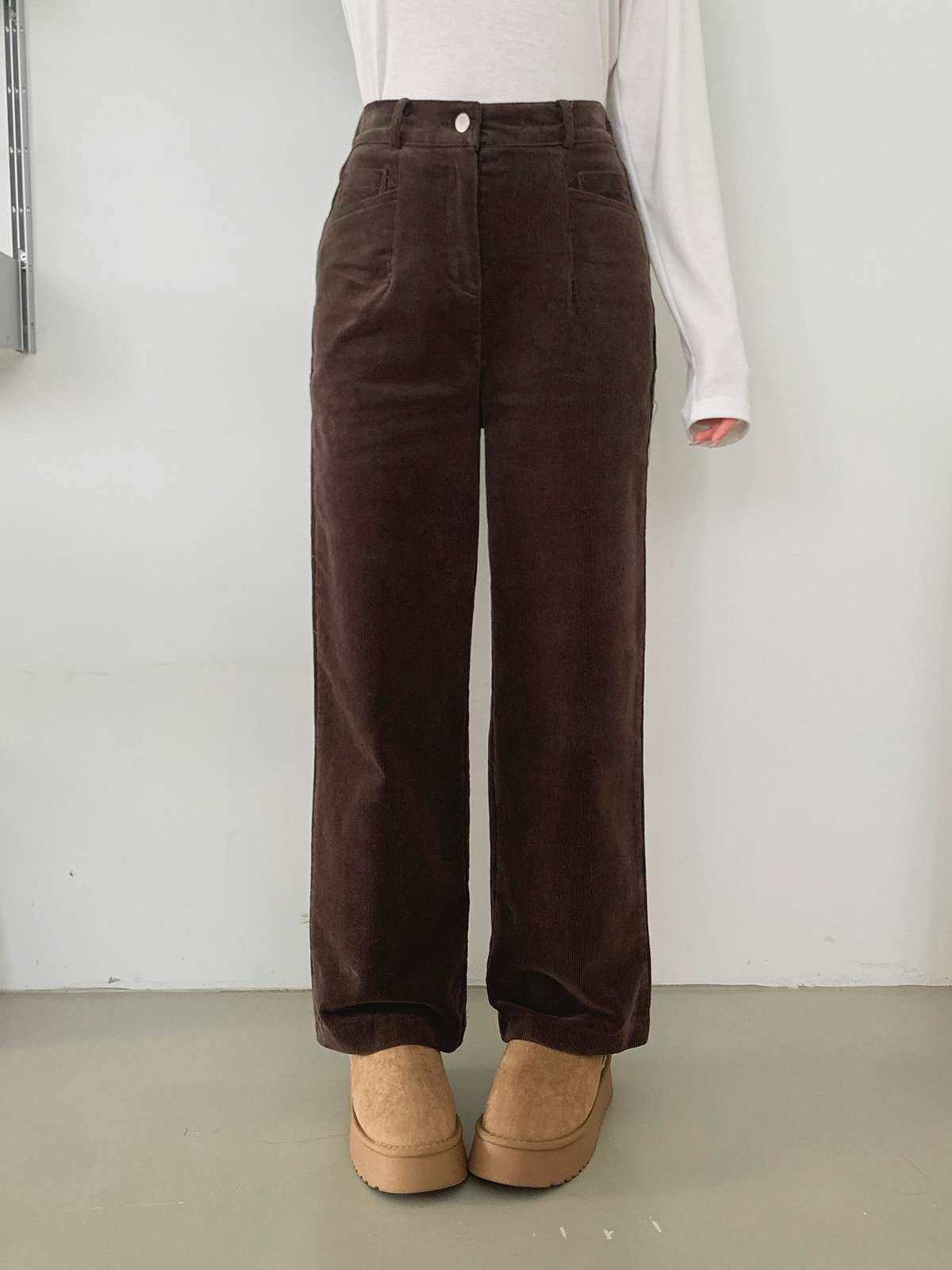 깔끔한 핏의 코듀로이 소재의 일자 팬츠로