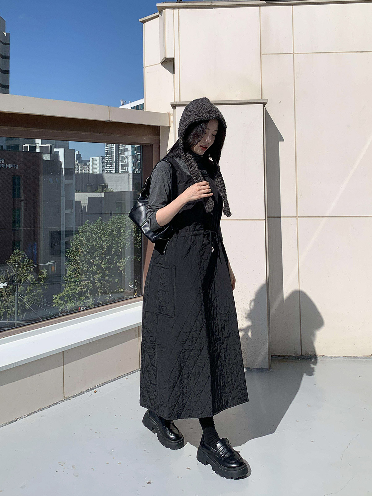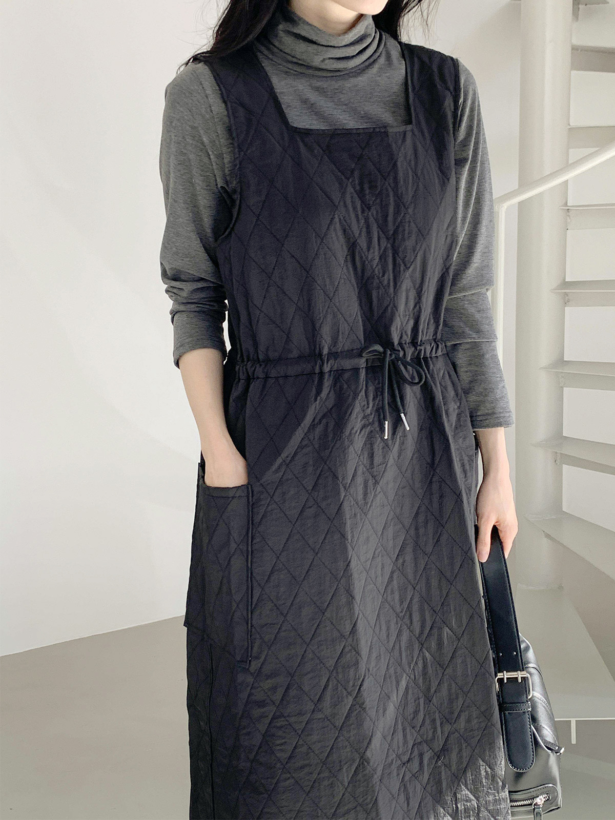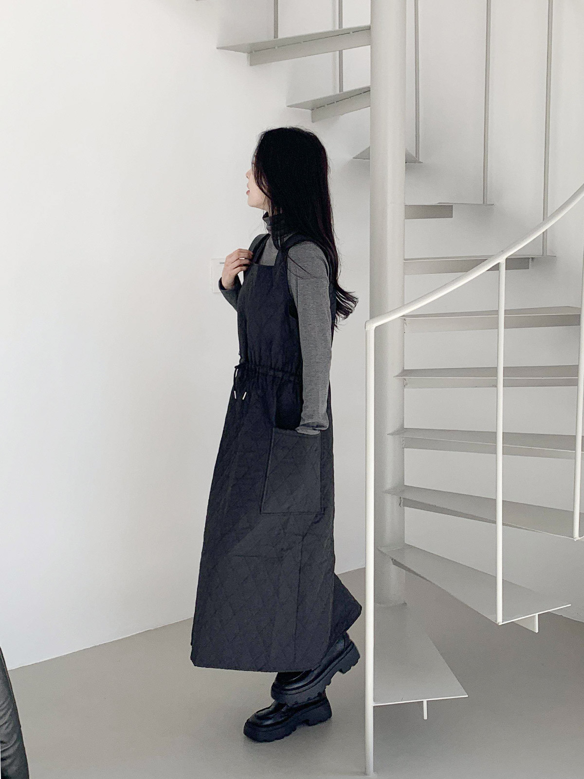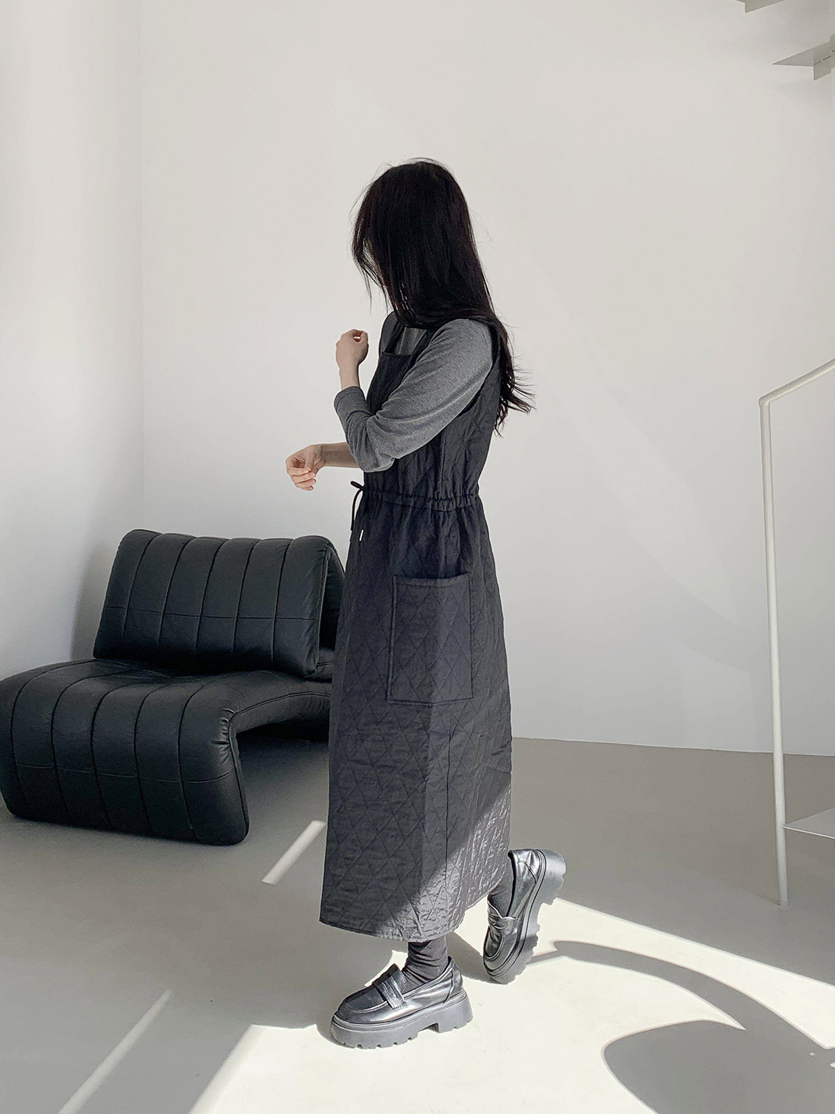 따뜻한 누빔 디테일이 돋보이는 나시 원피스예요!