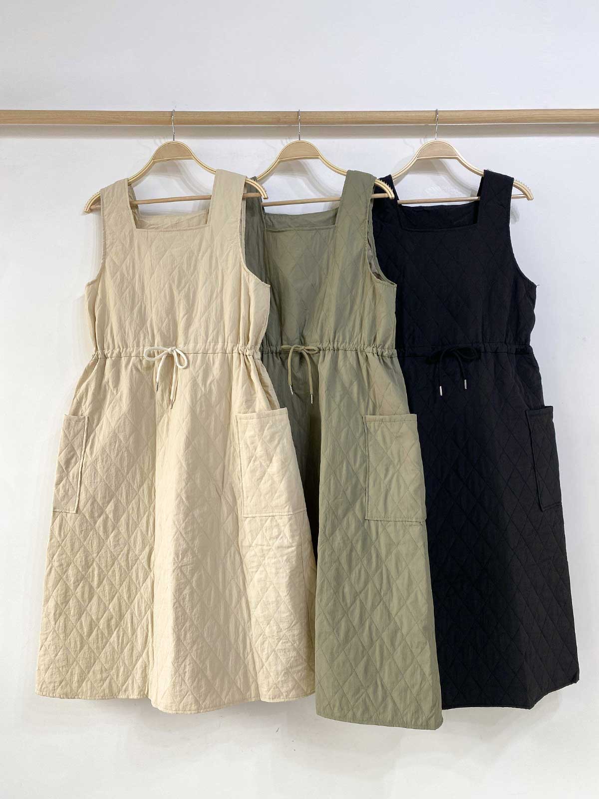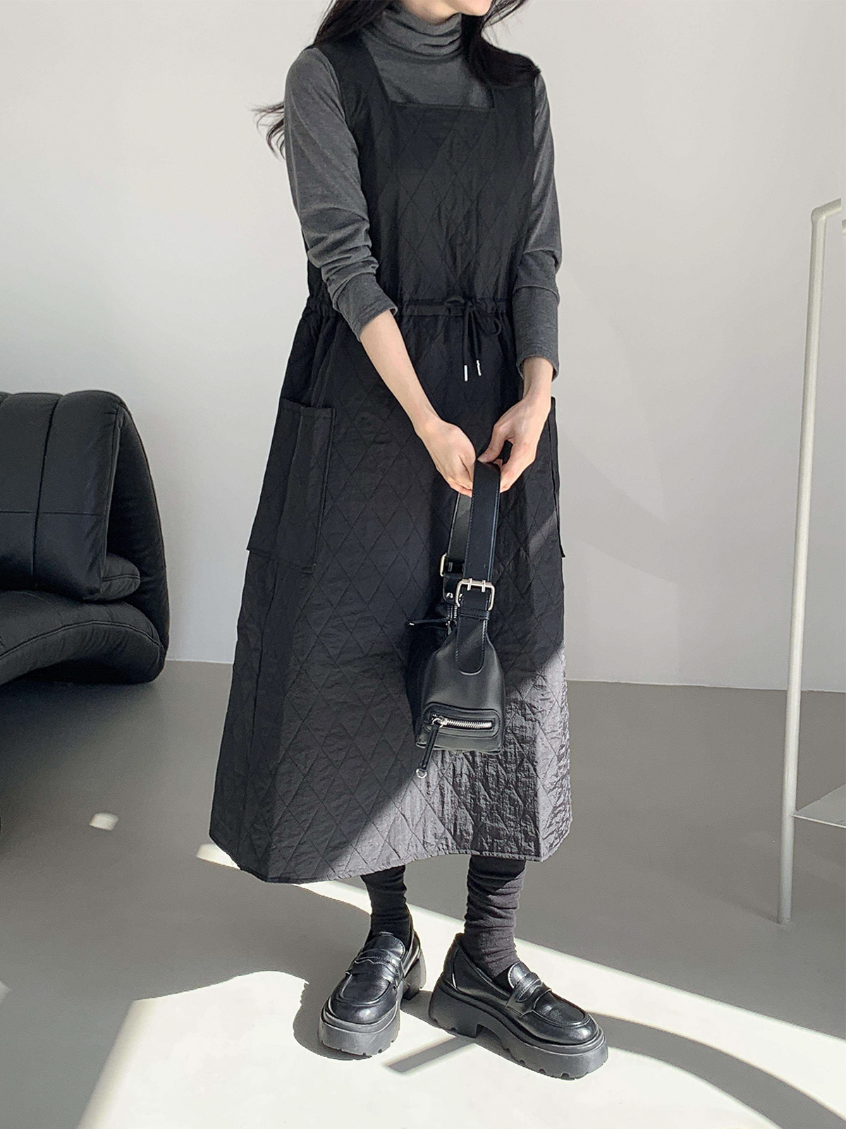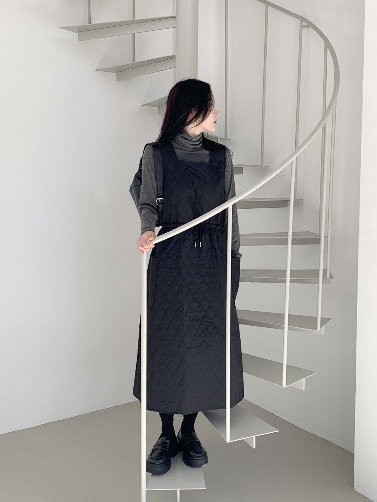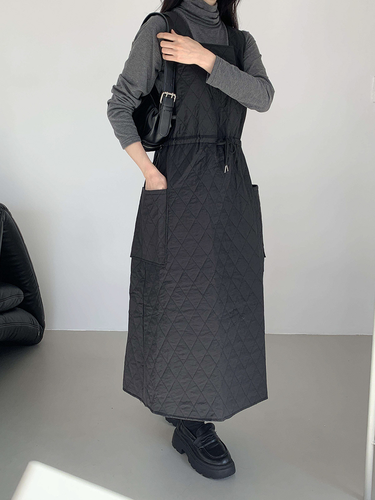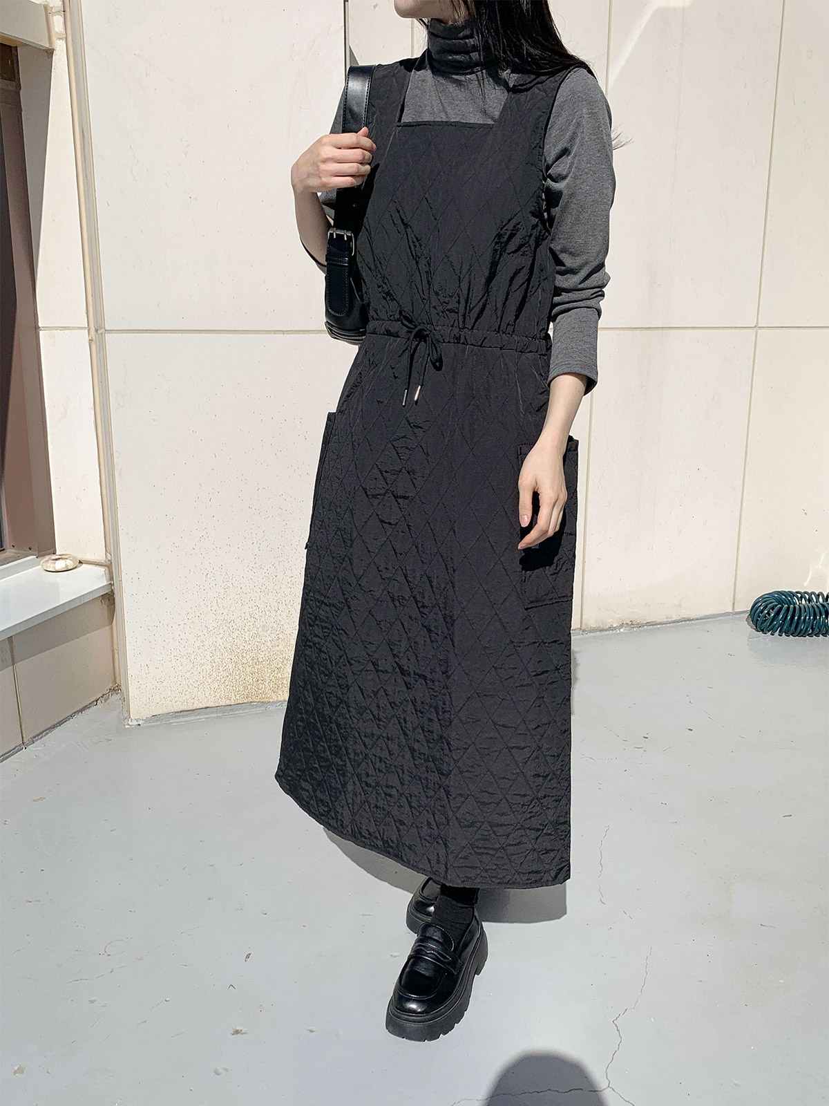 따뜻한 누빔 디테일이 돋보이는 나시 원피스예요!