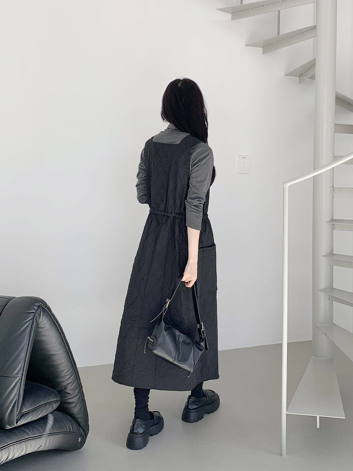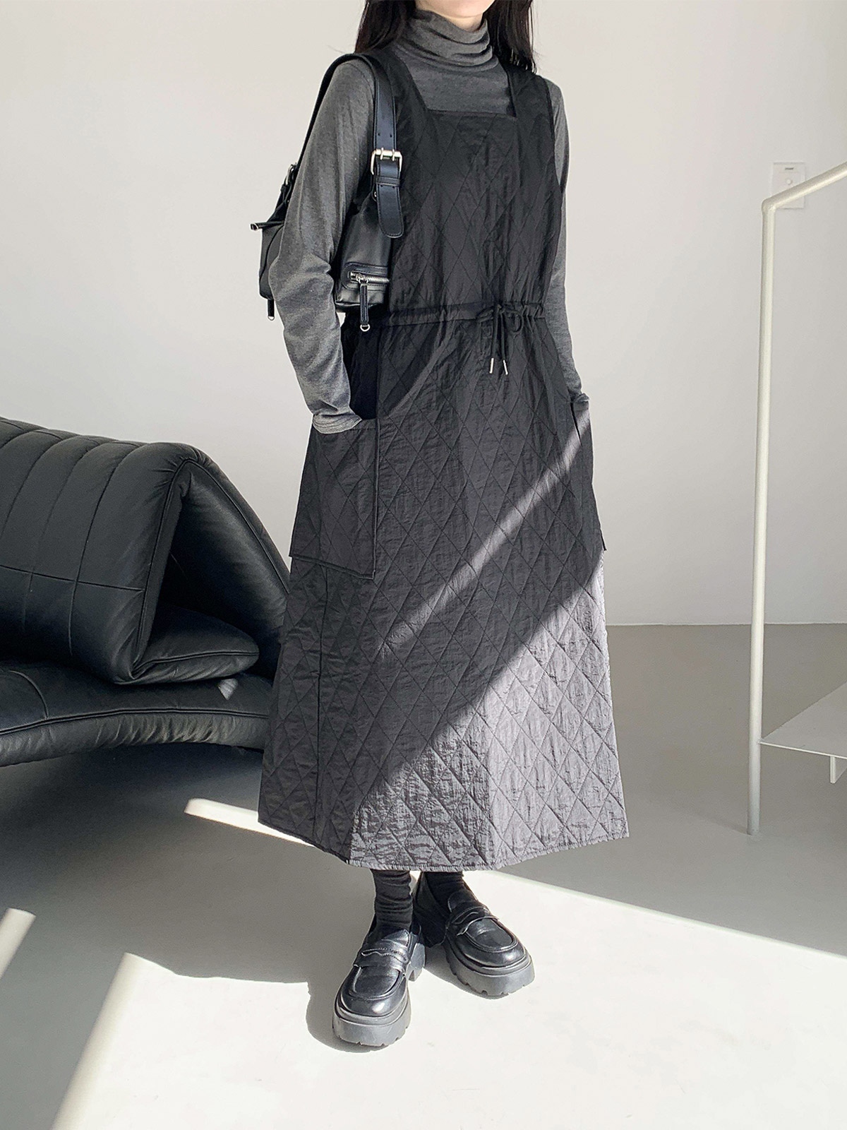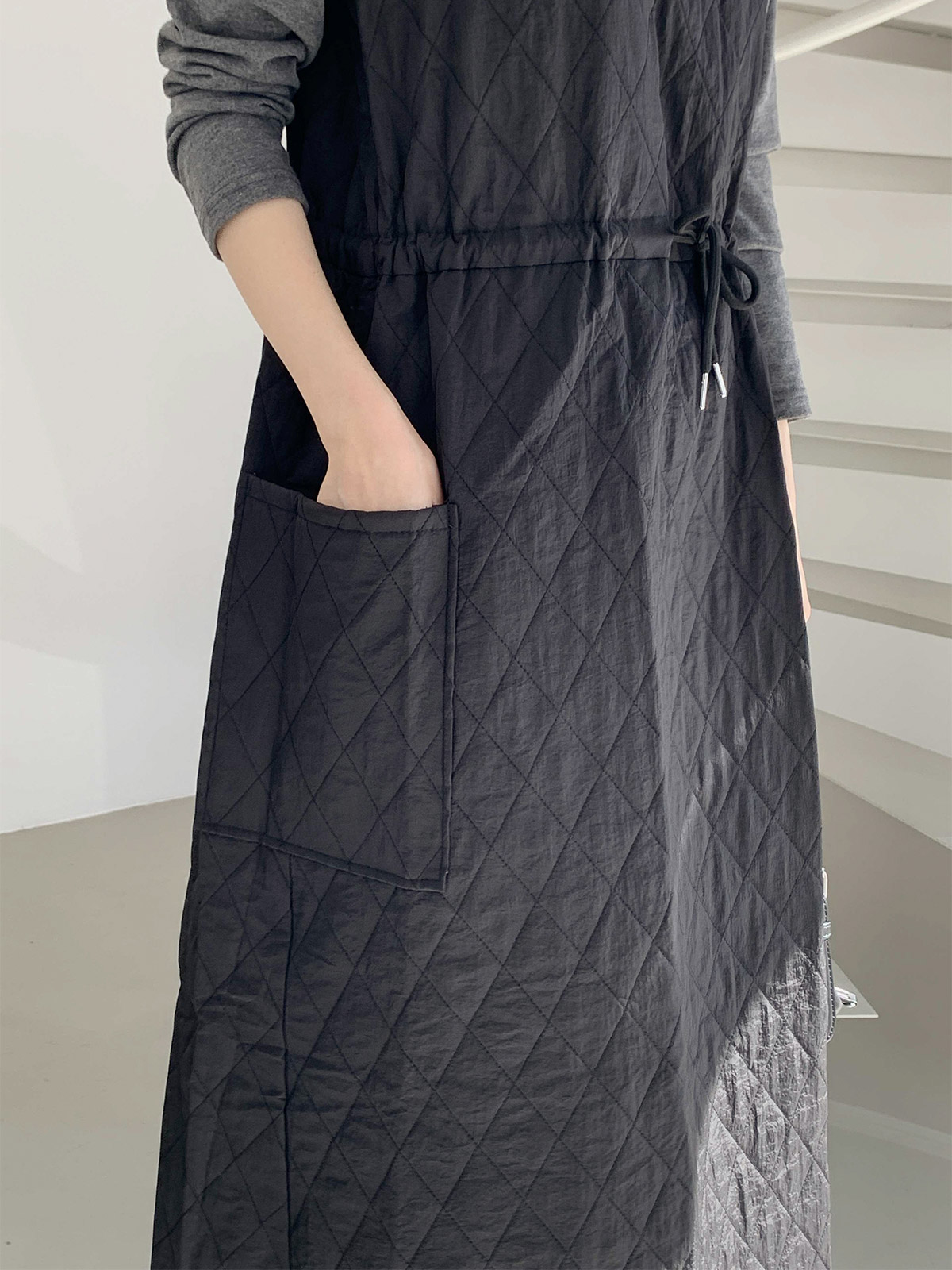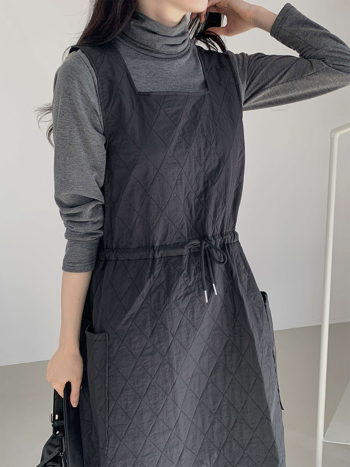 따뜻한 누빔 디테일이 돋보이는 나시 원피스예요!