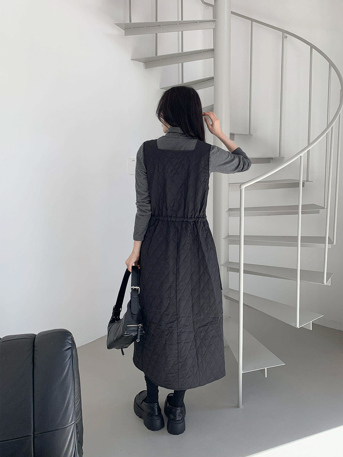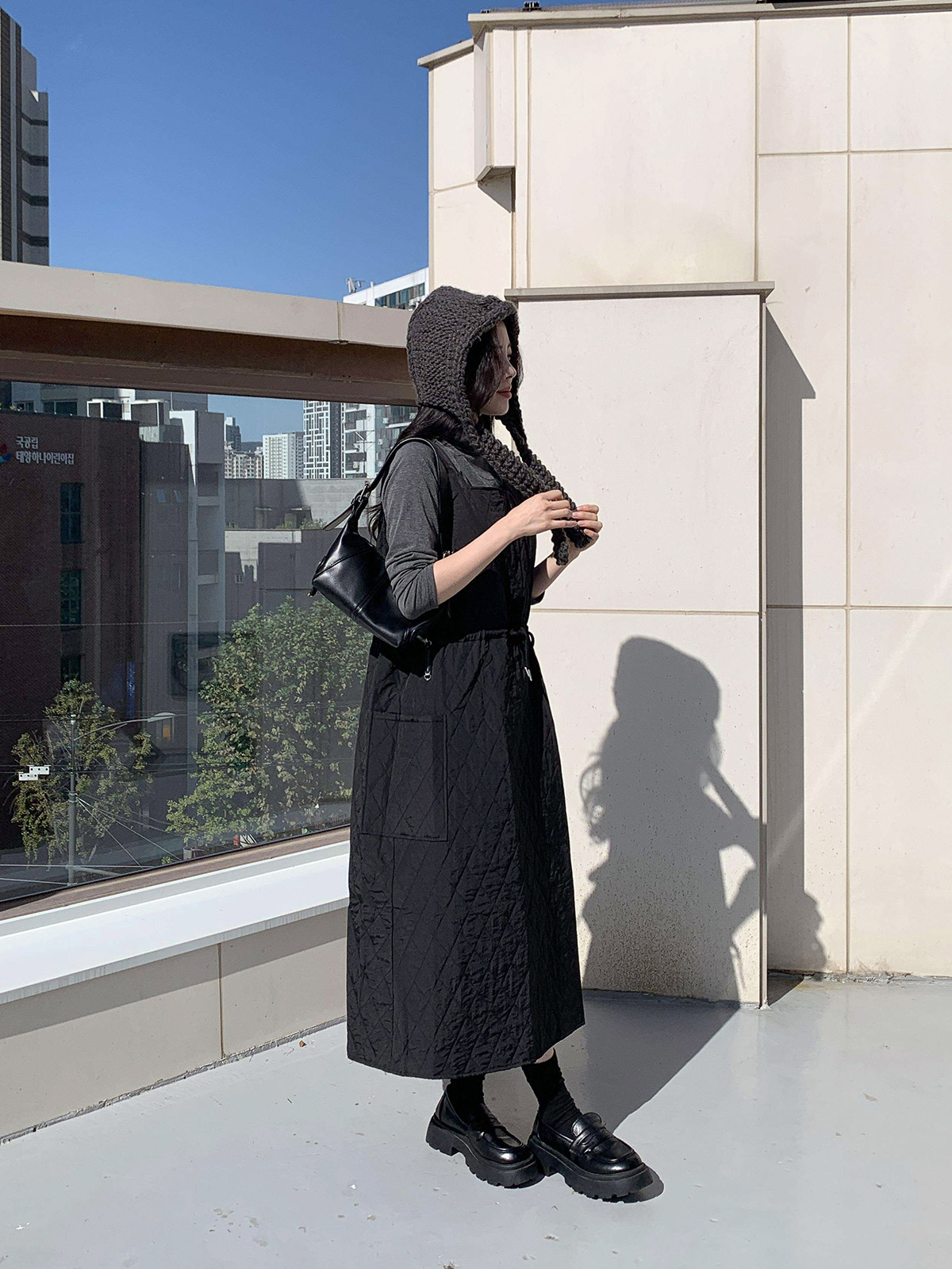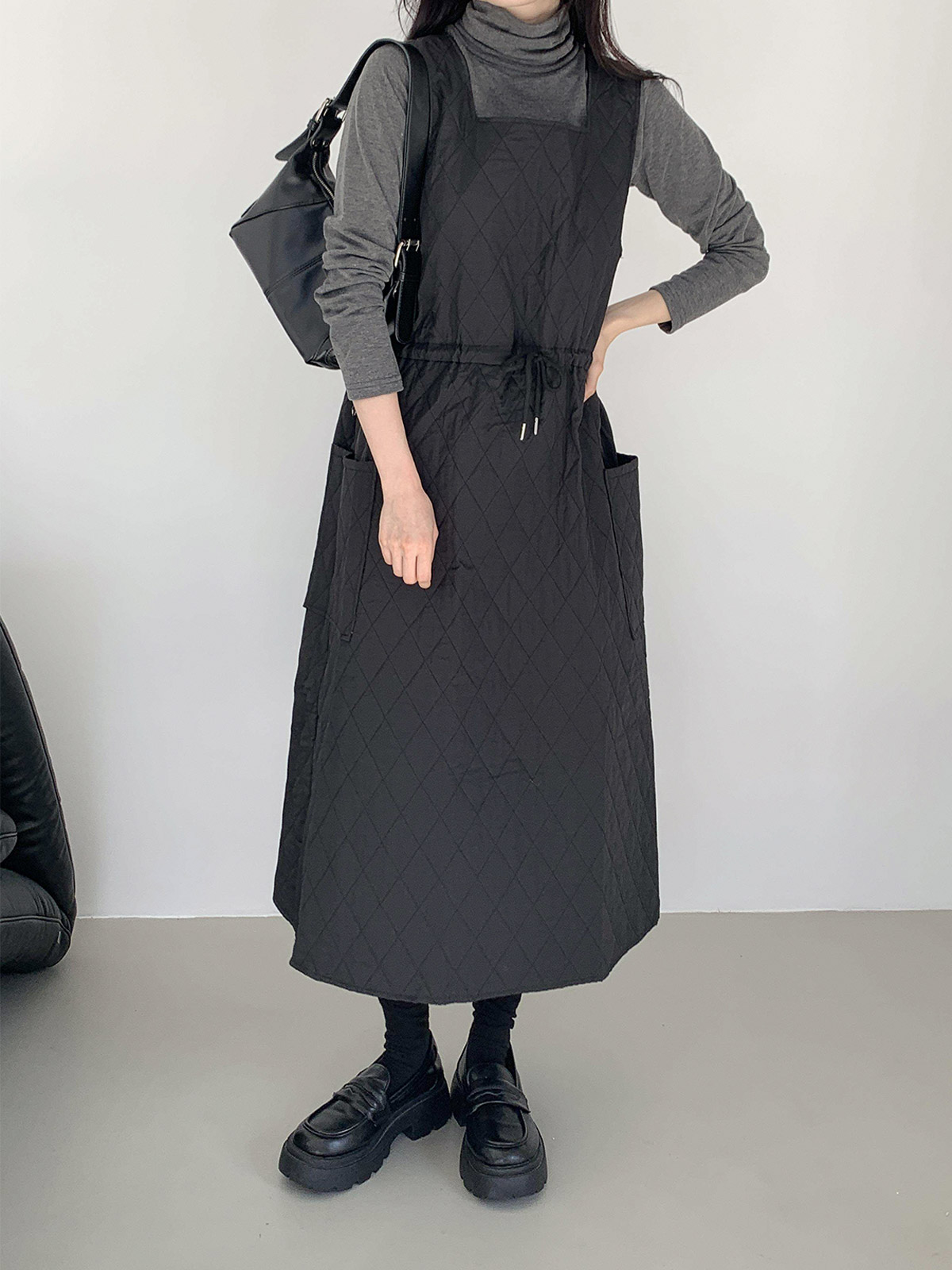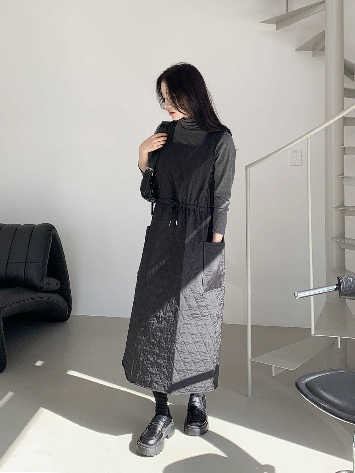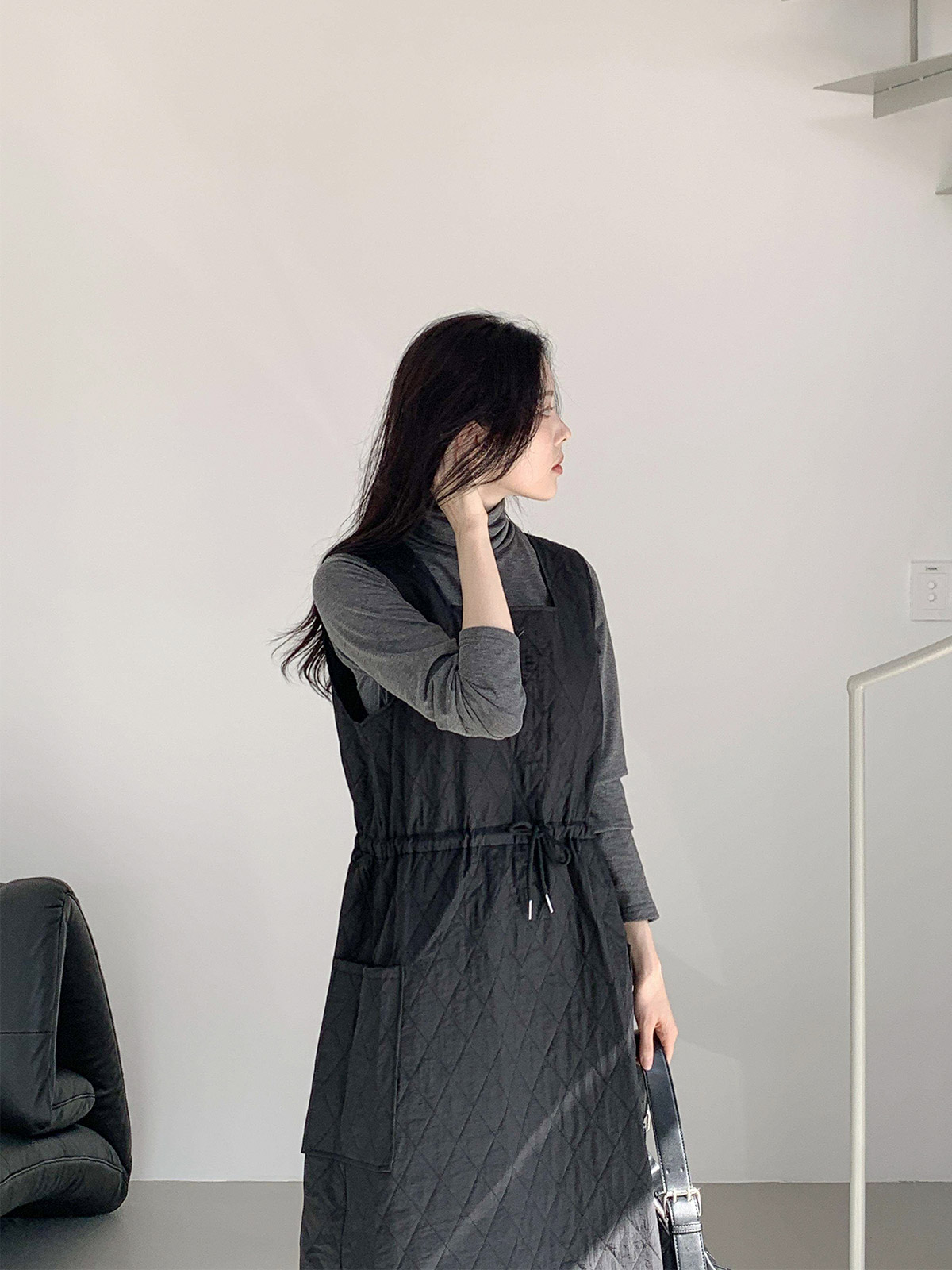 따뜻한 누빔 디테일이 돋보이는 나시 원피스예요!