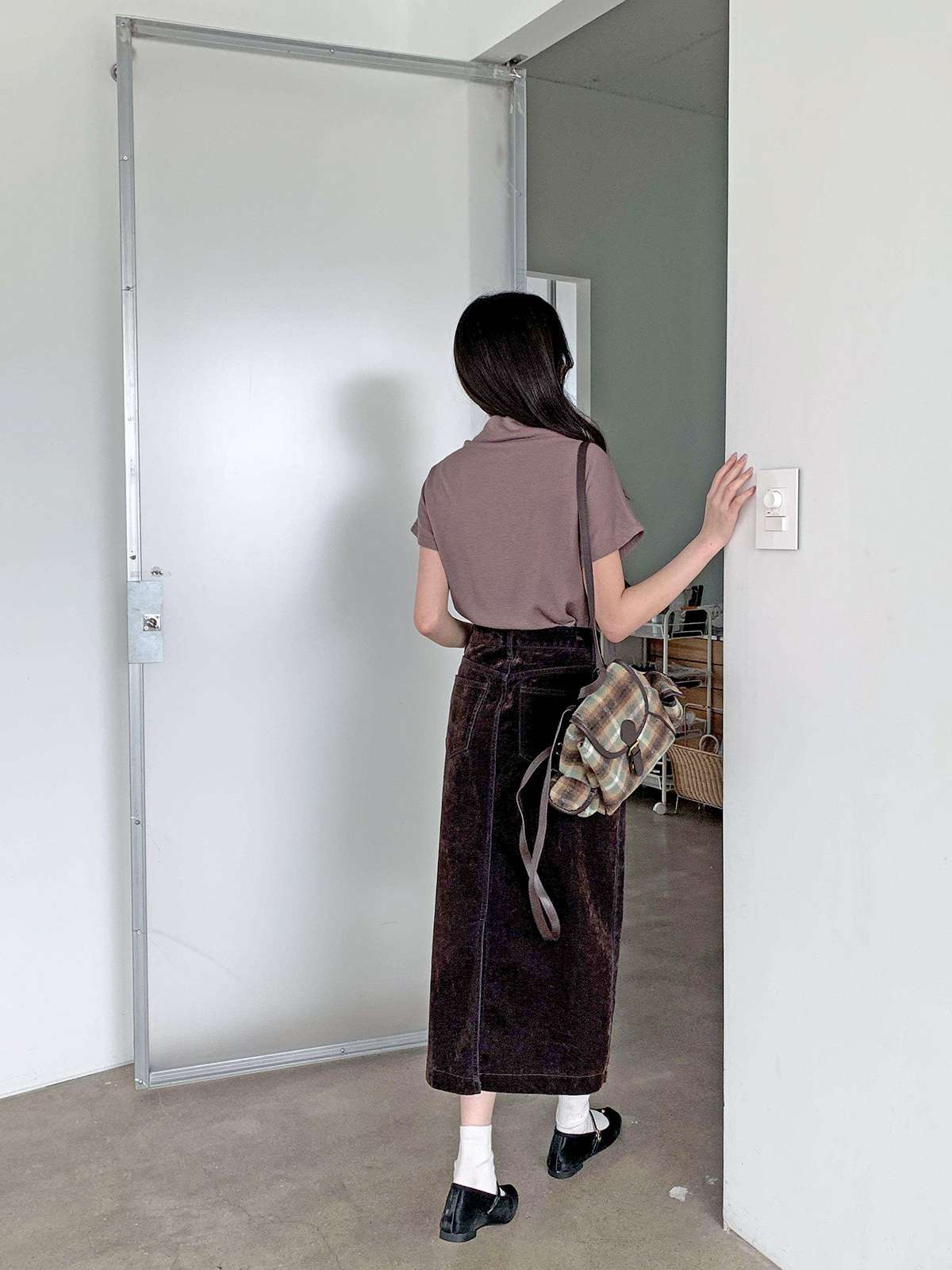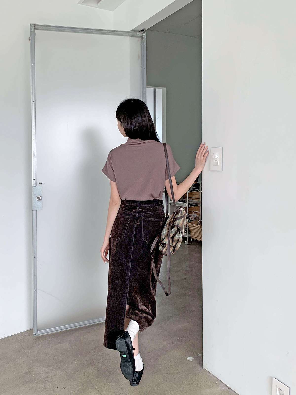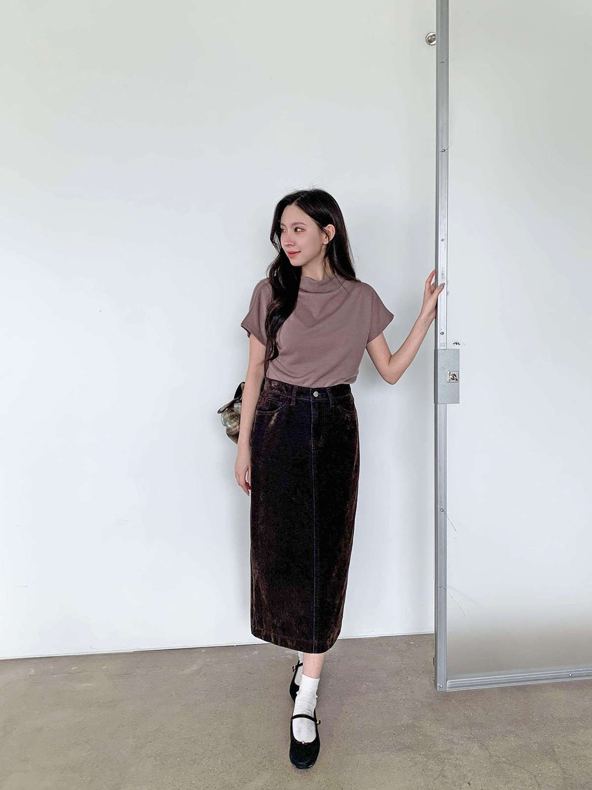 벨벳소재의 데임 롱 스커트