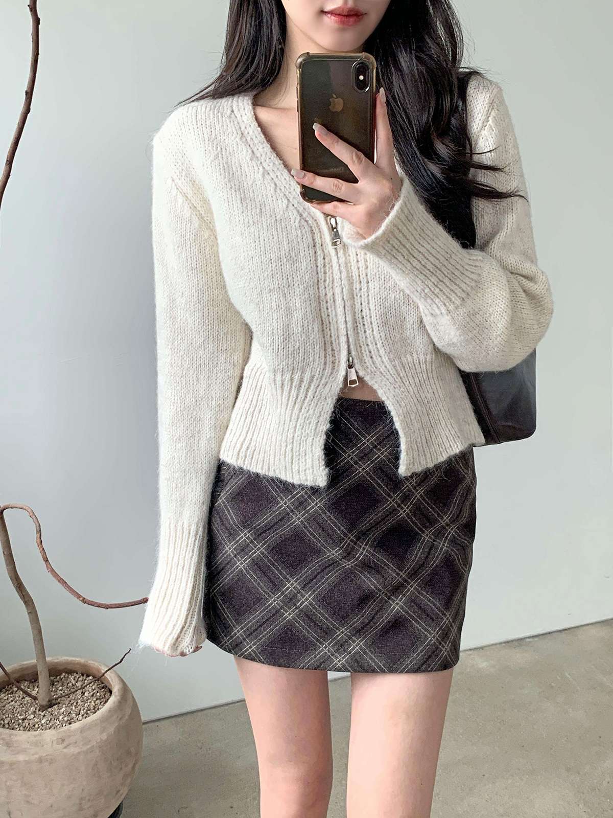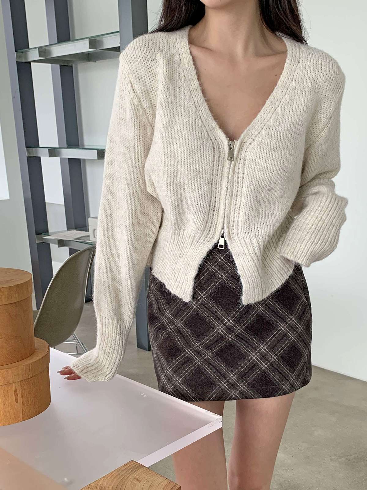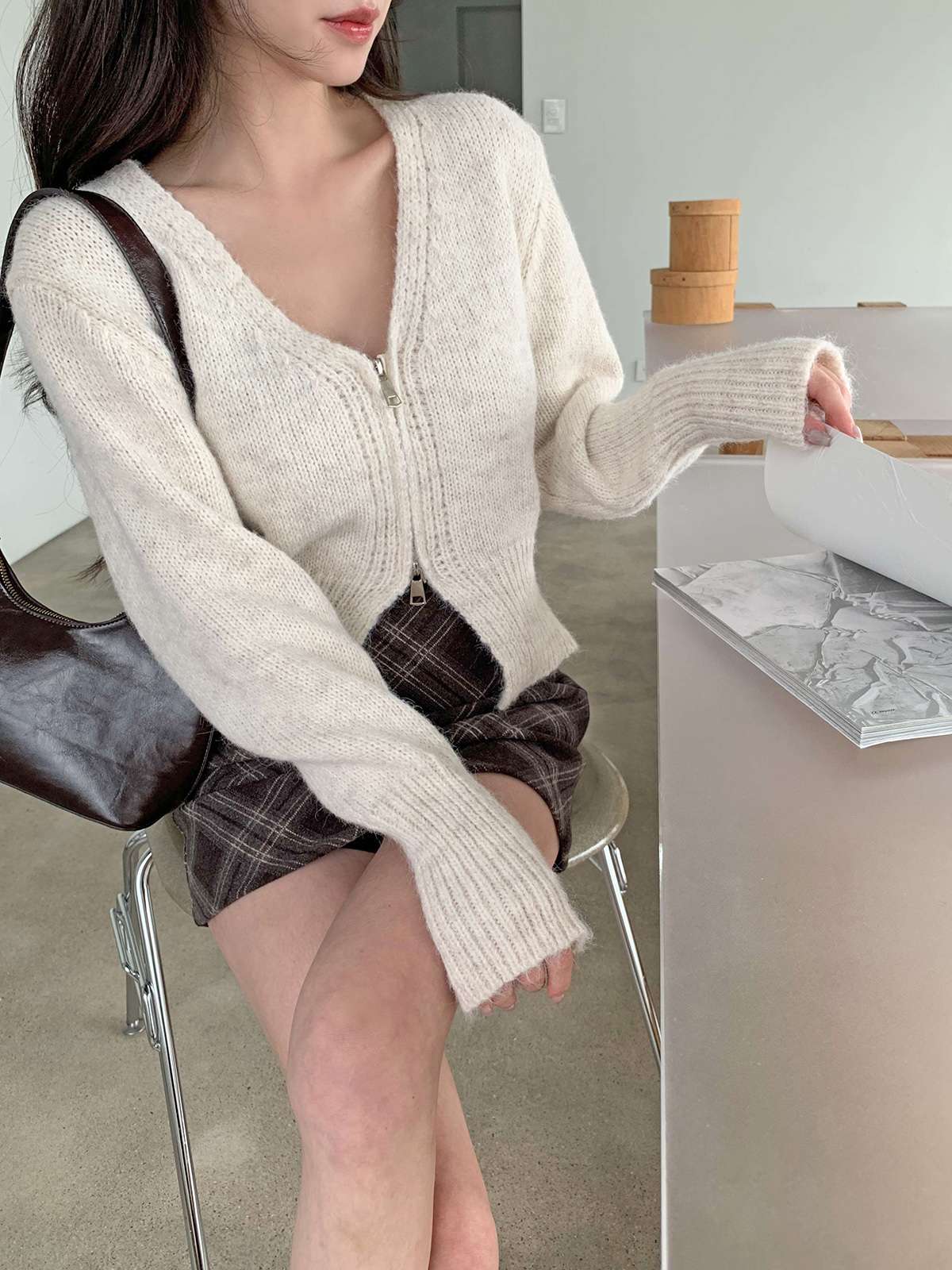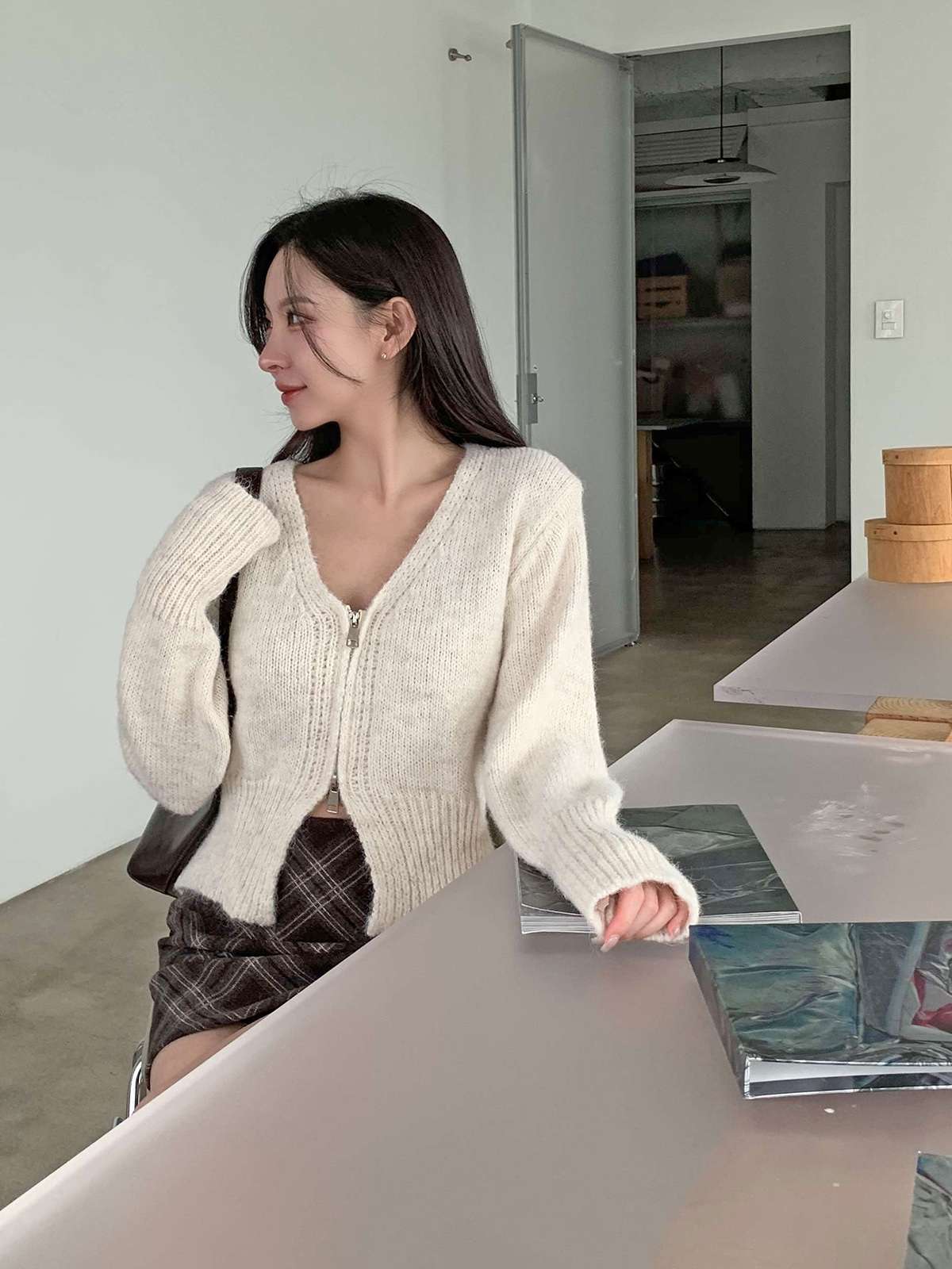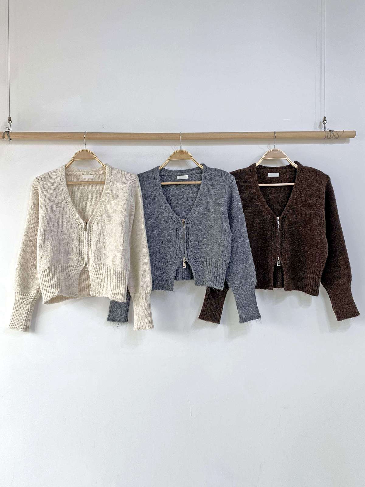 [ CD3636K5A-흐오리 브이넥 세미크롭 투웨이 집업 가디건 ]
