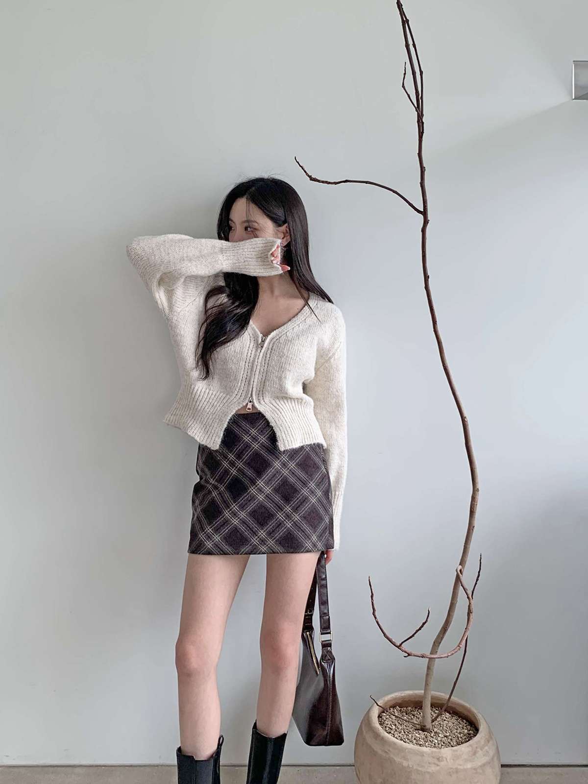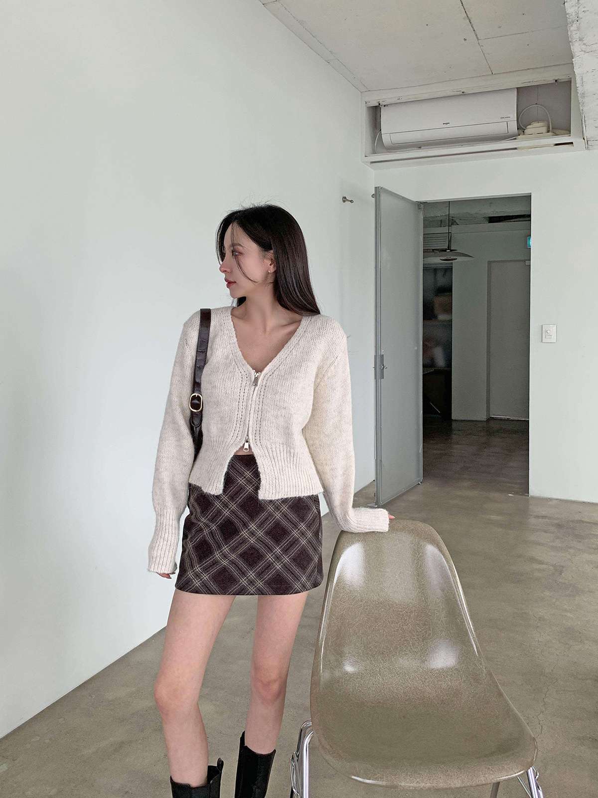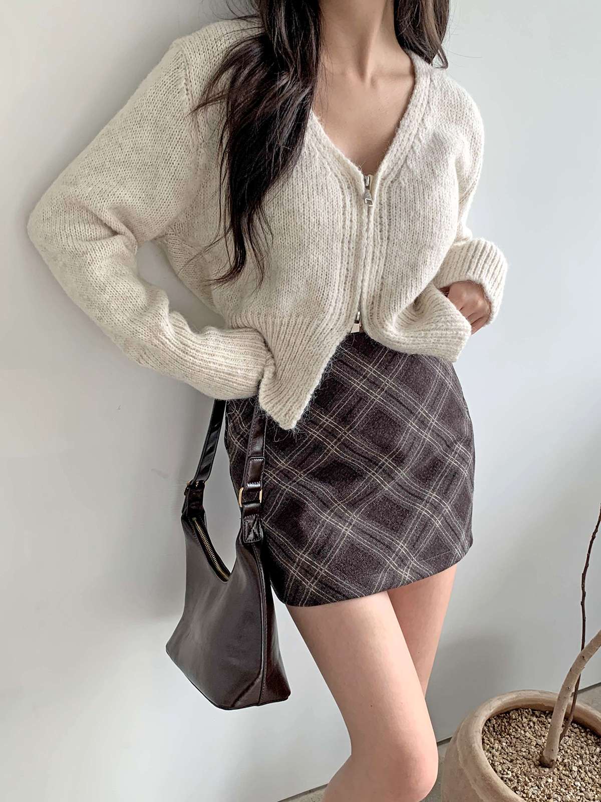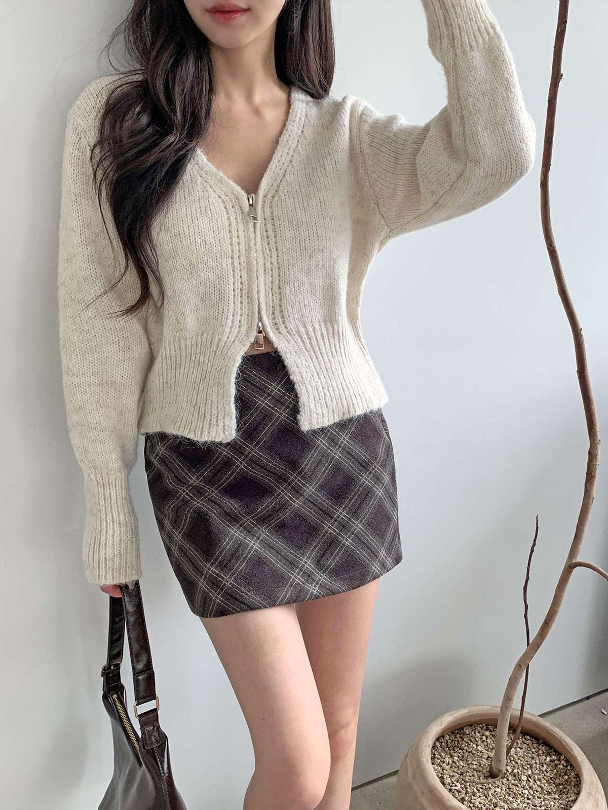 [ CD3636K5A-흐오리 브이넥 세미크롭 투웨이 집업 가디건 ]
