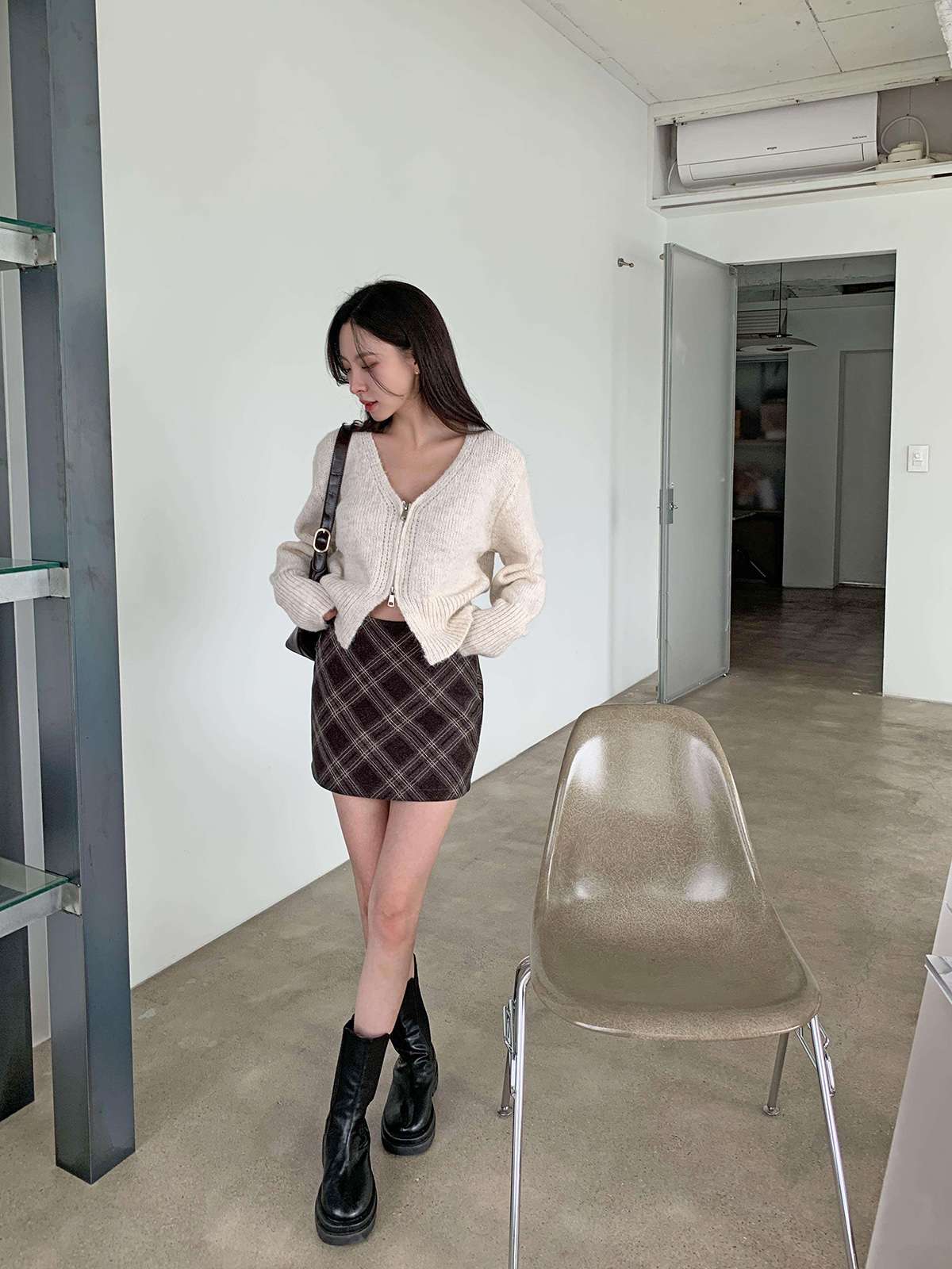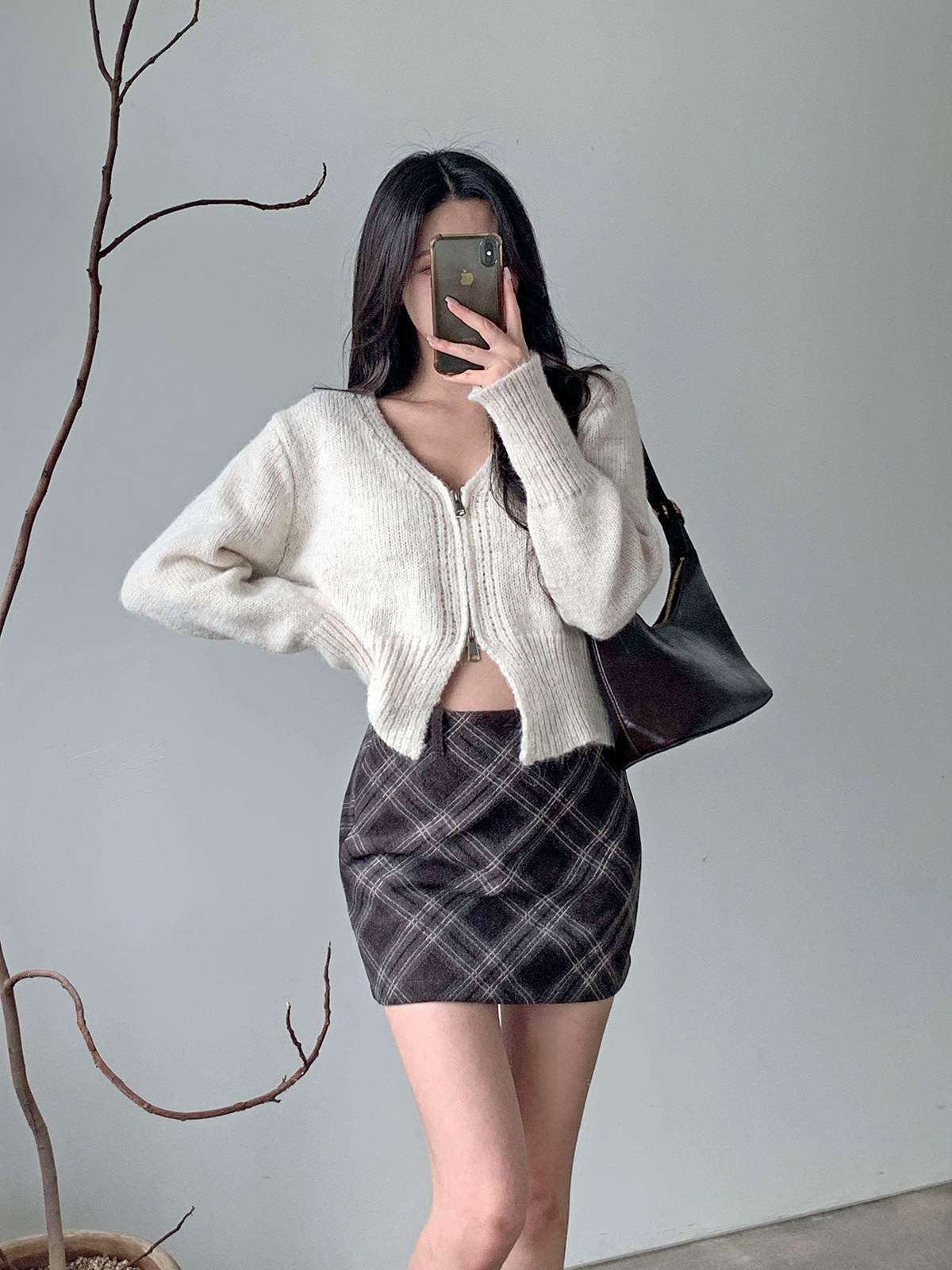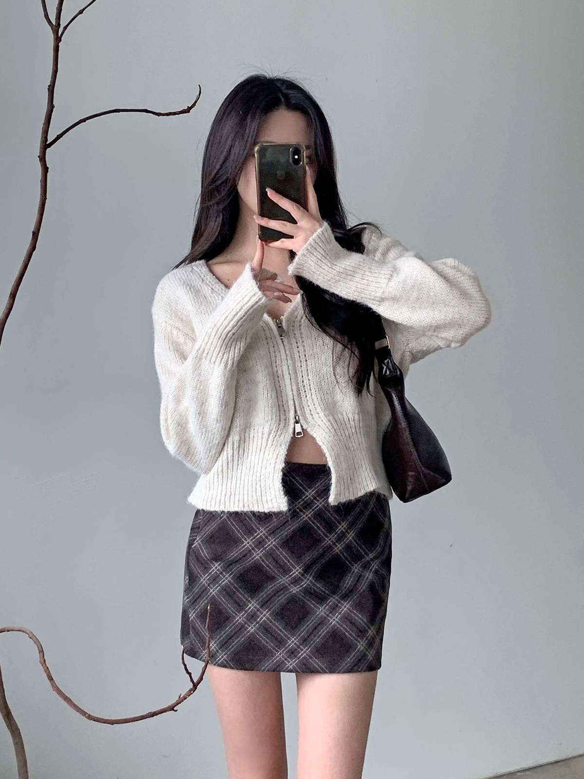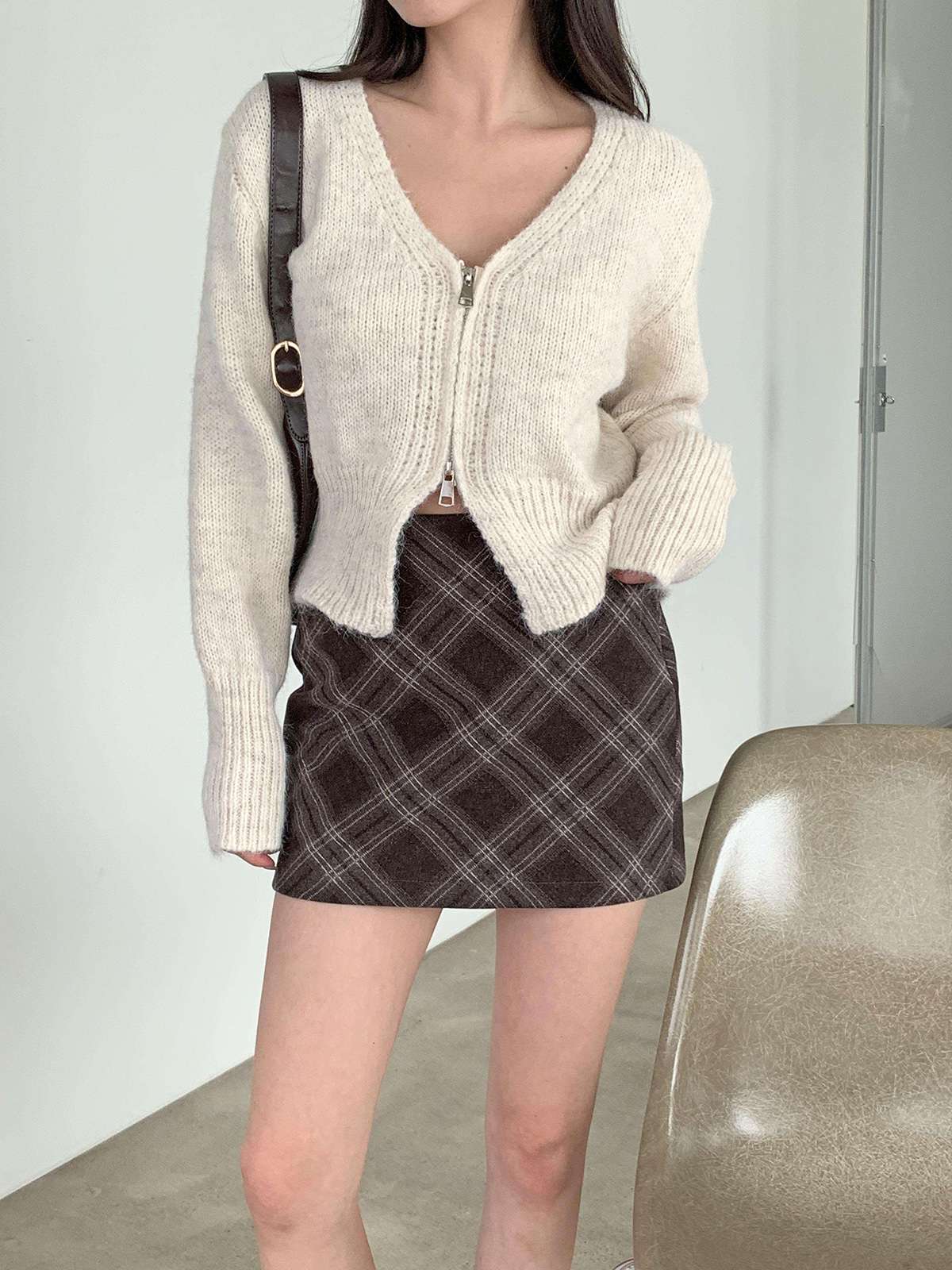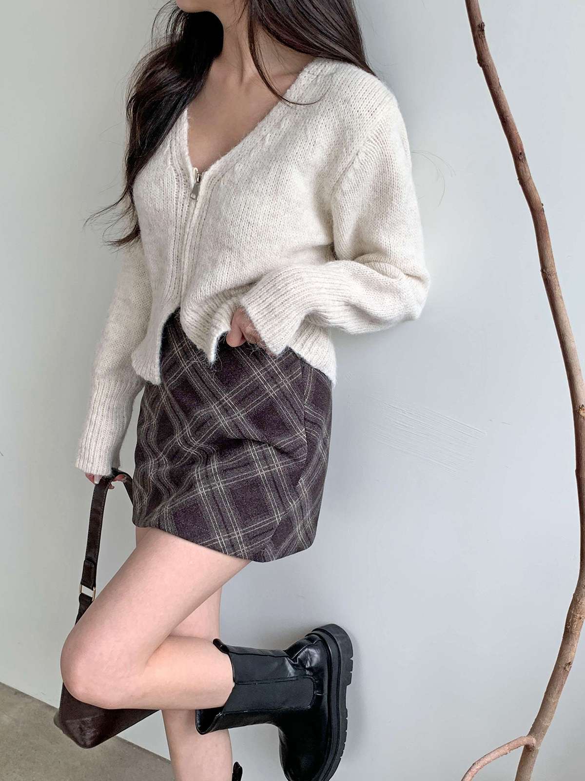 [ CD3636K5A-흐오리 브이넥 세미크롭 투웨이 집업 가디건 ]