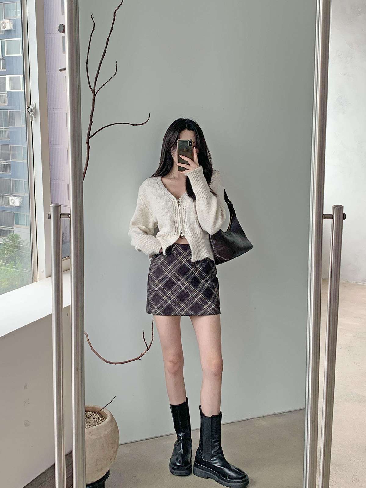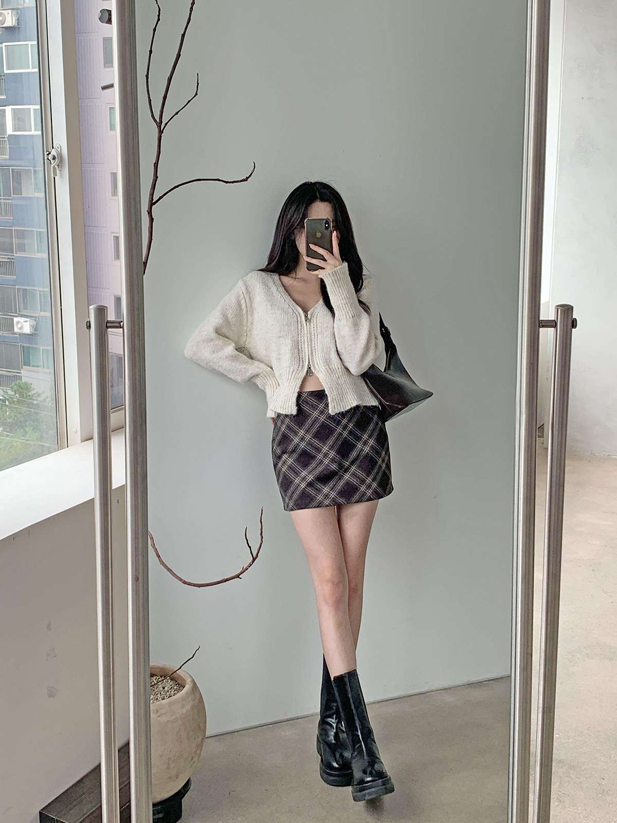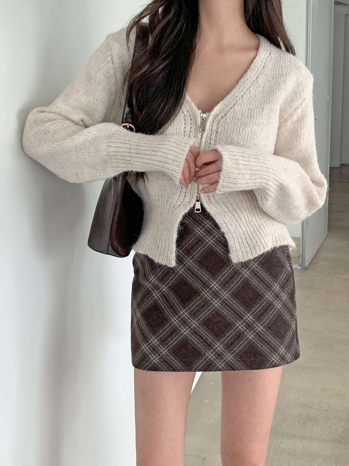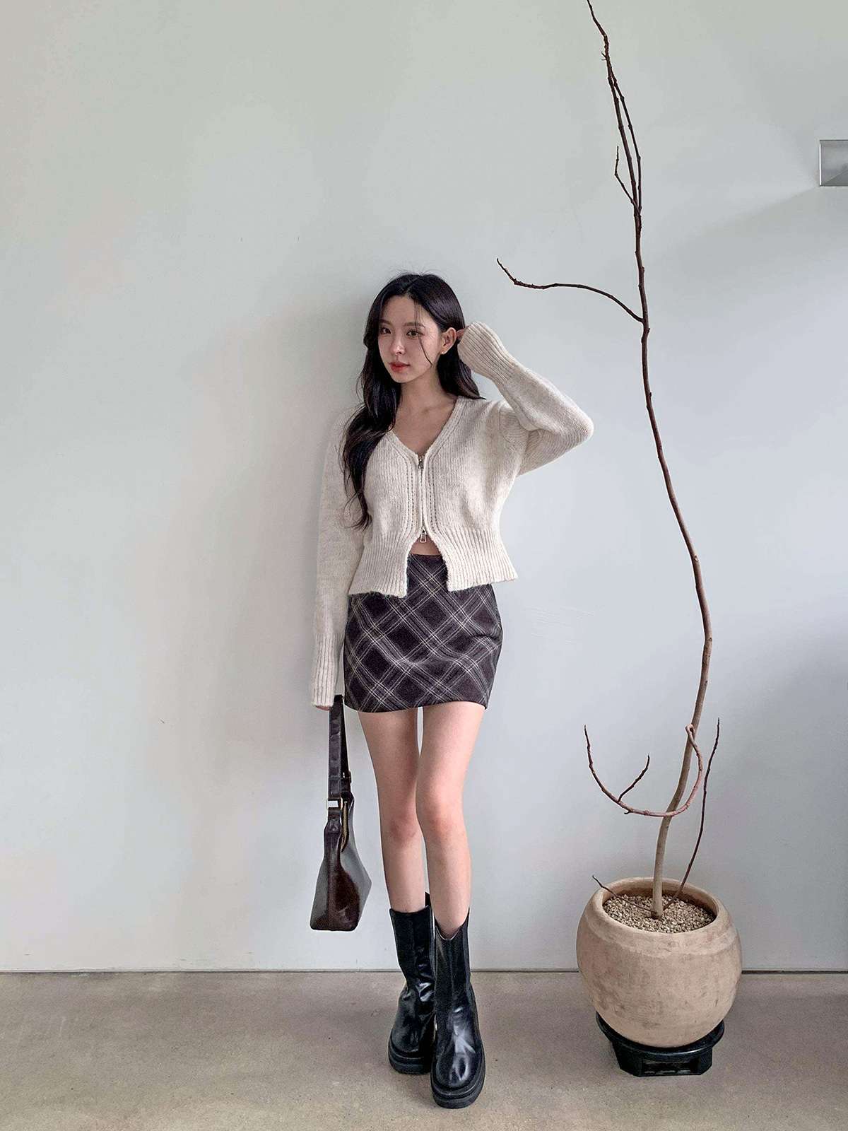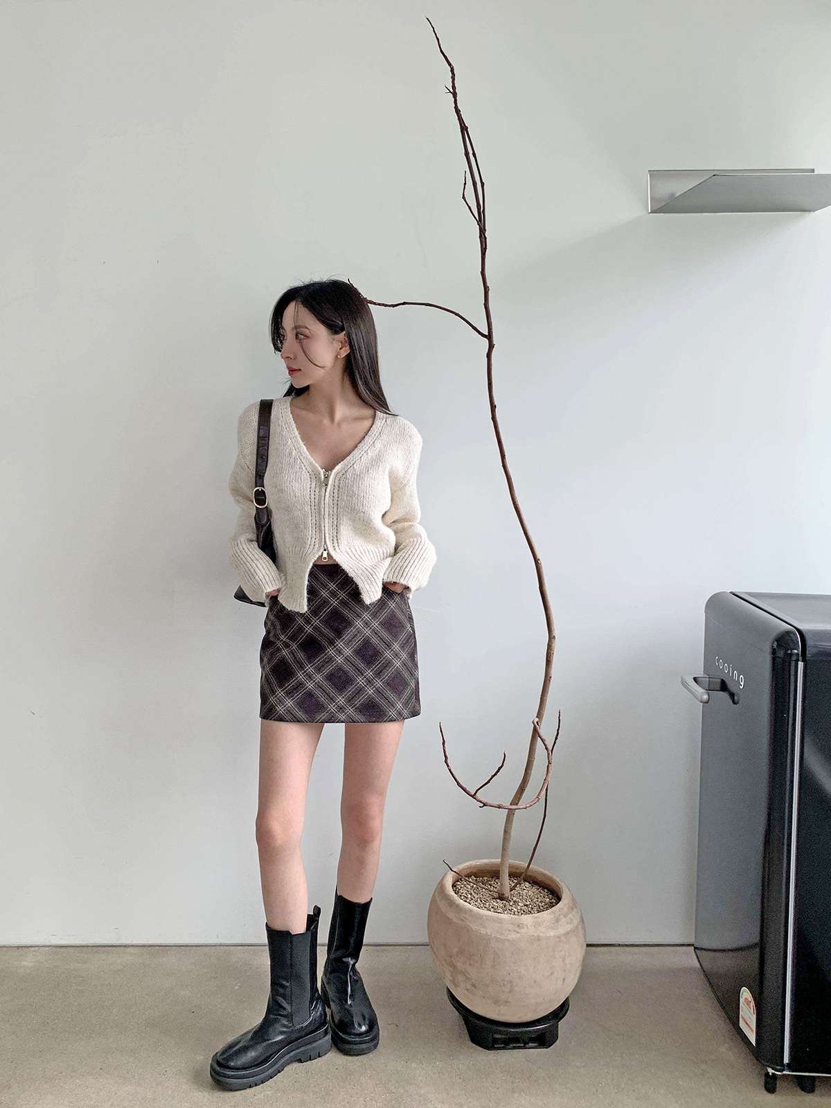 [ CD3636K5A-흐오리 브이넥 세미크롭 투웨이 집업 가디건 ]
