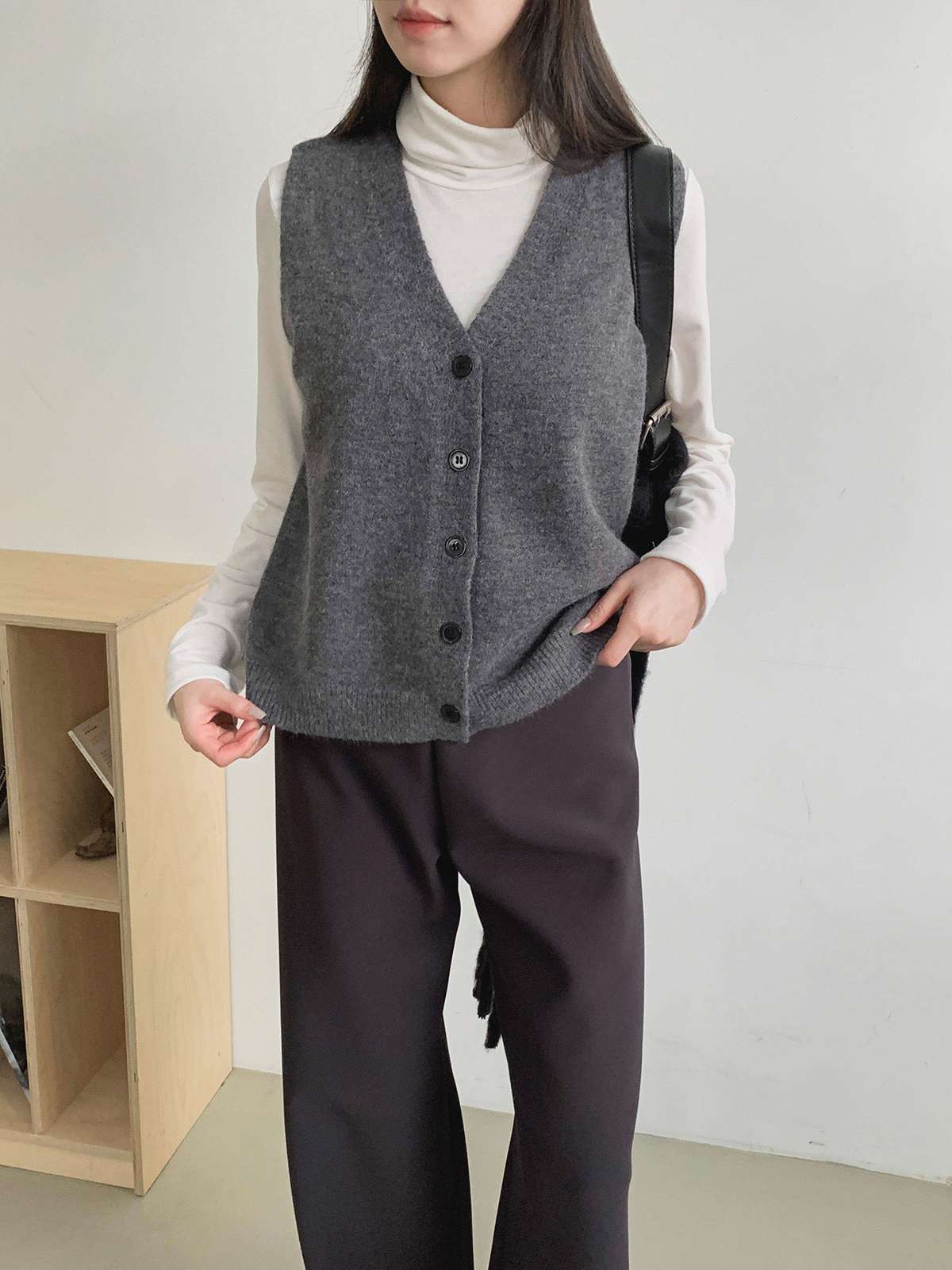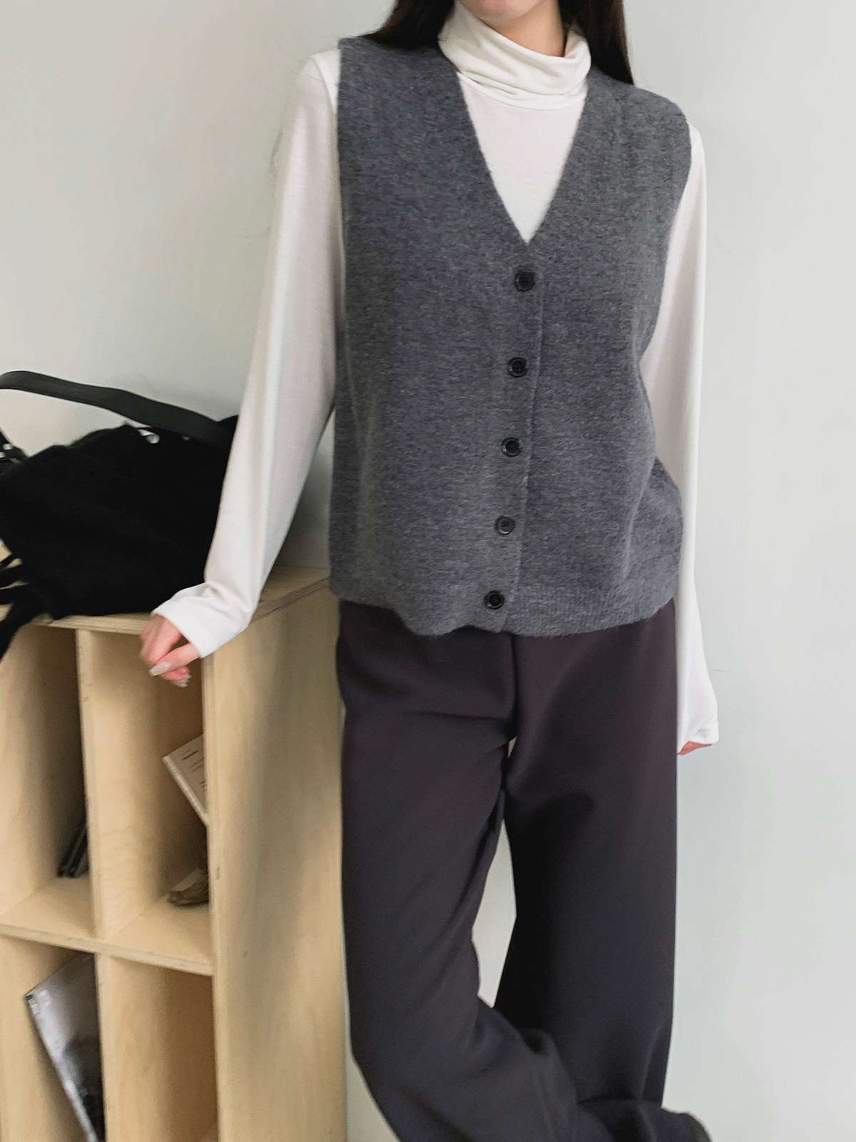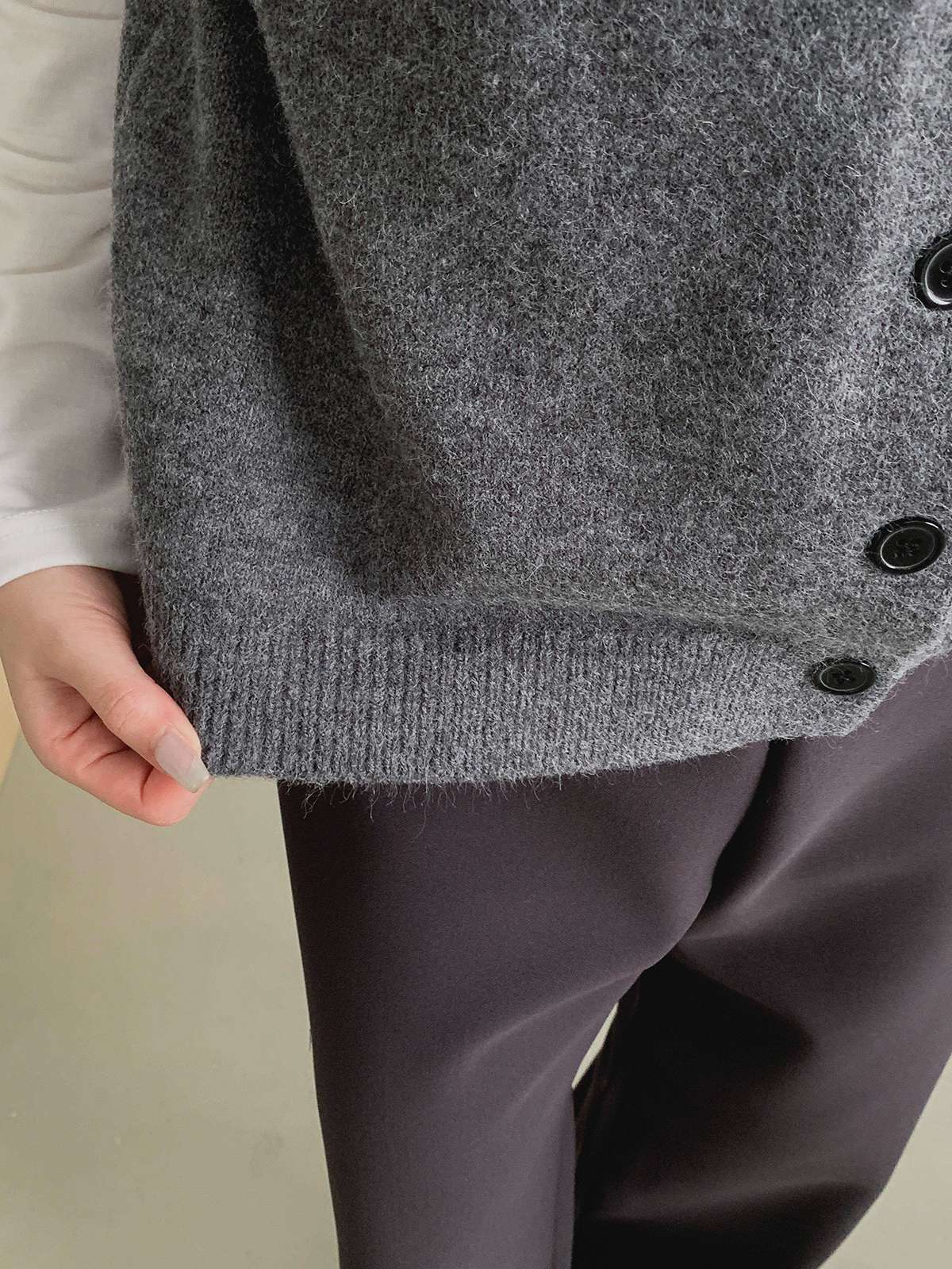 오버핏 사이즈의 부드러운 버튼 니트 베스트