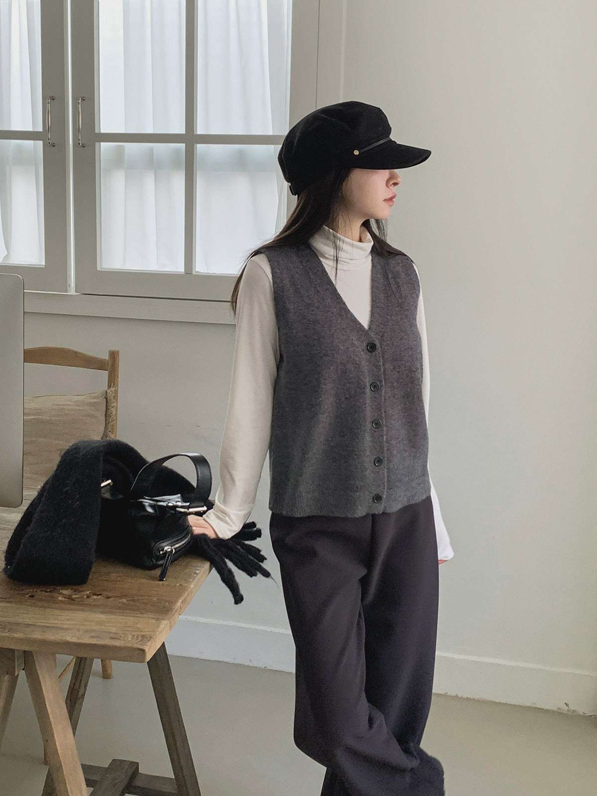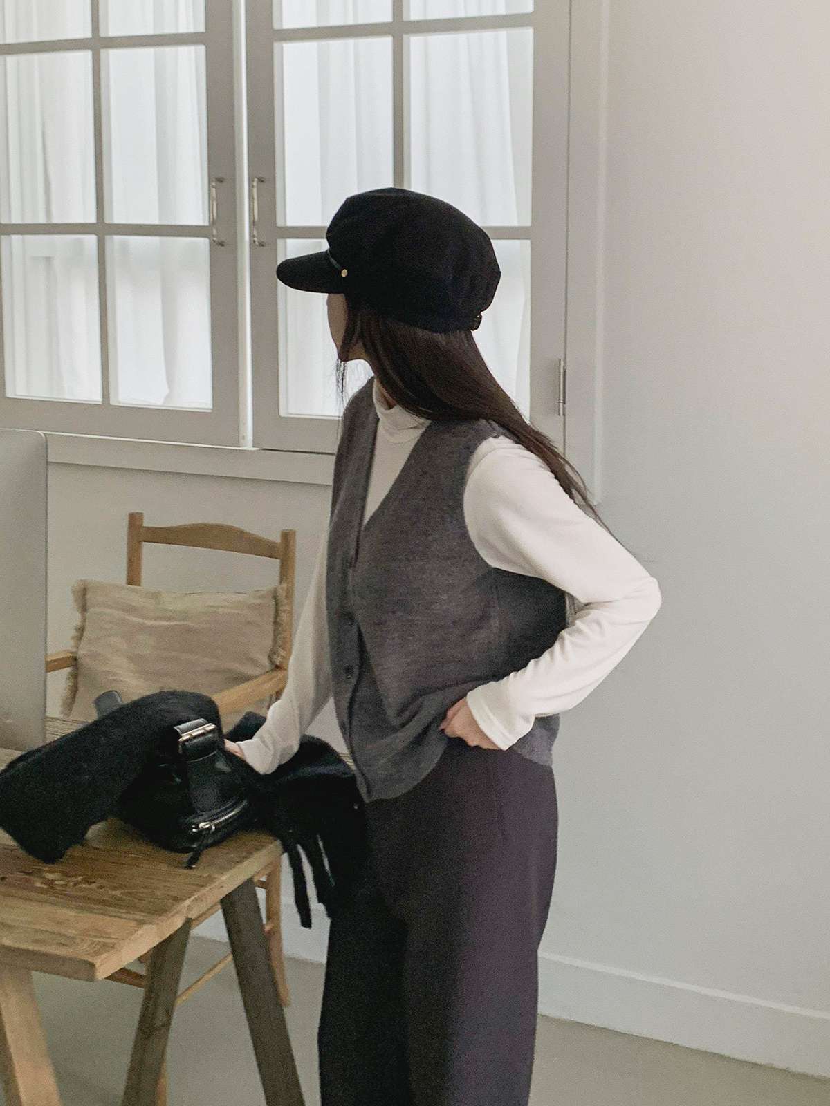 V넥이 매력적인 니트 베스트예요!