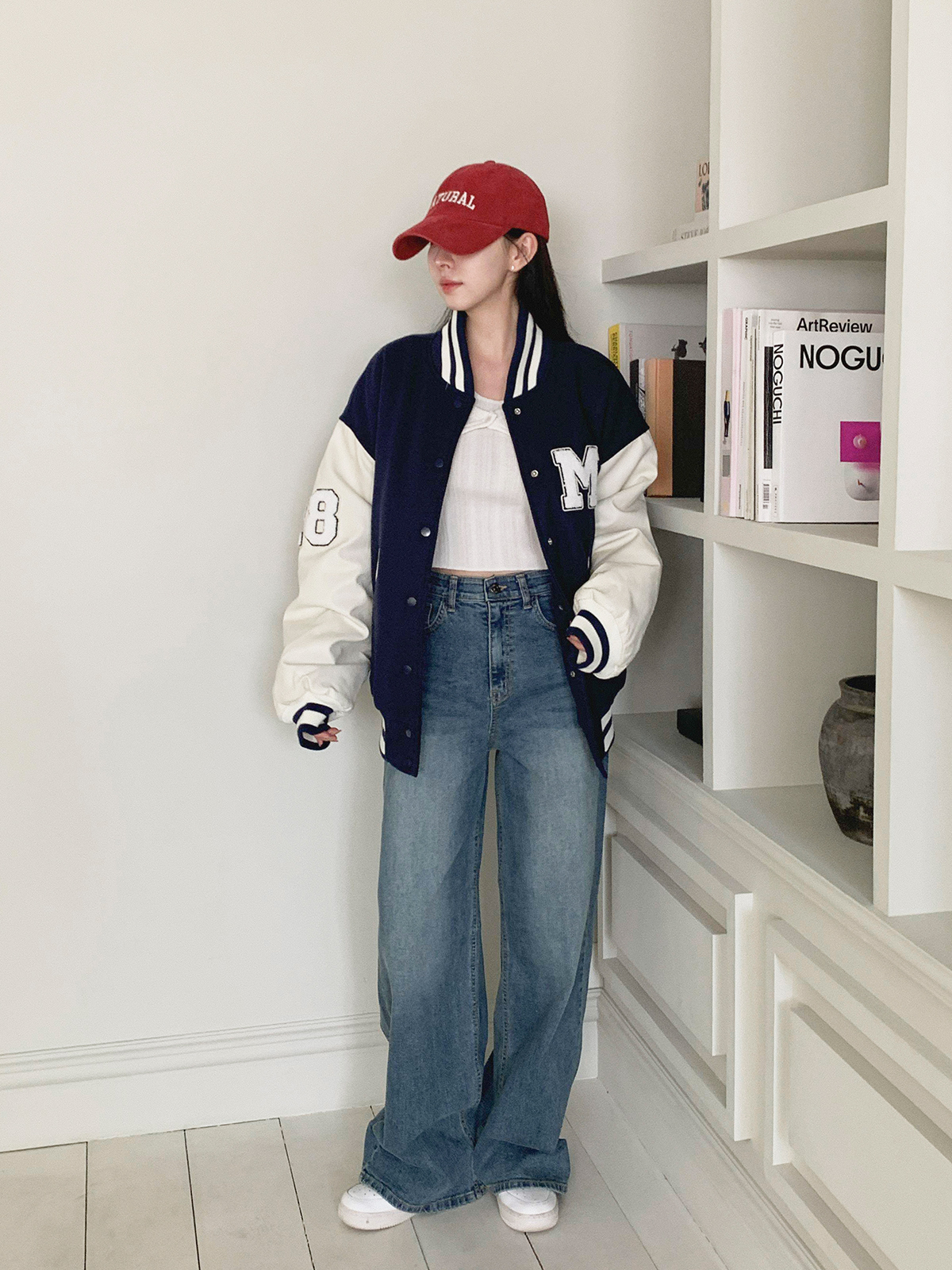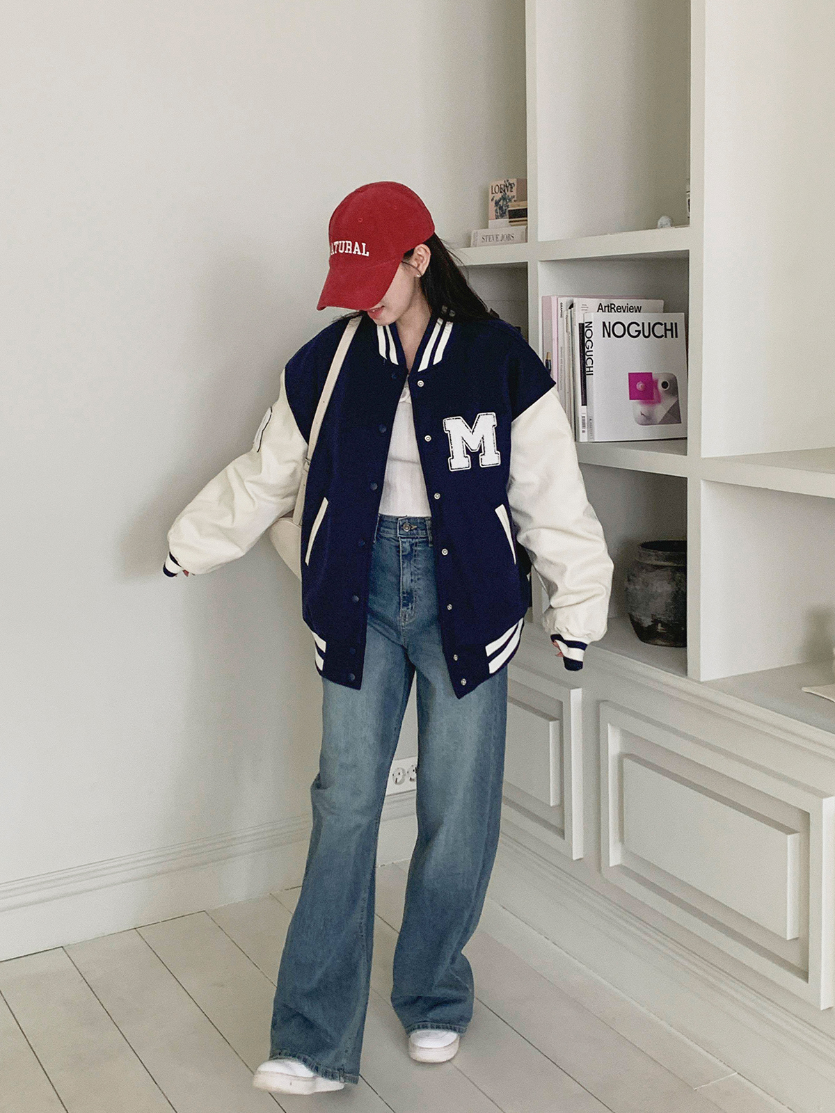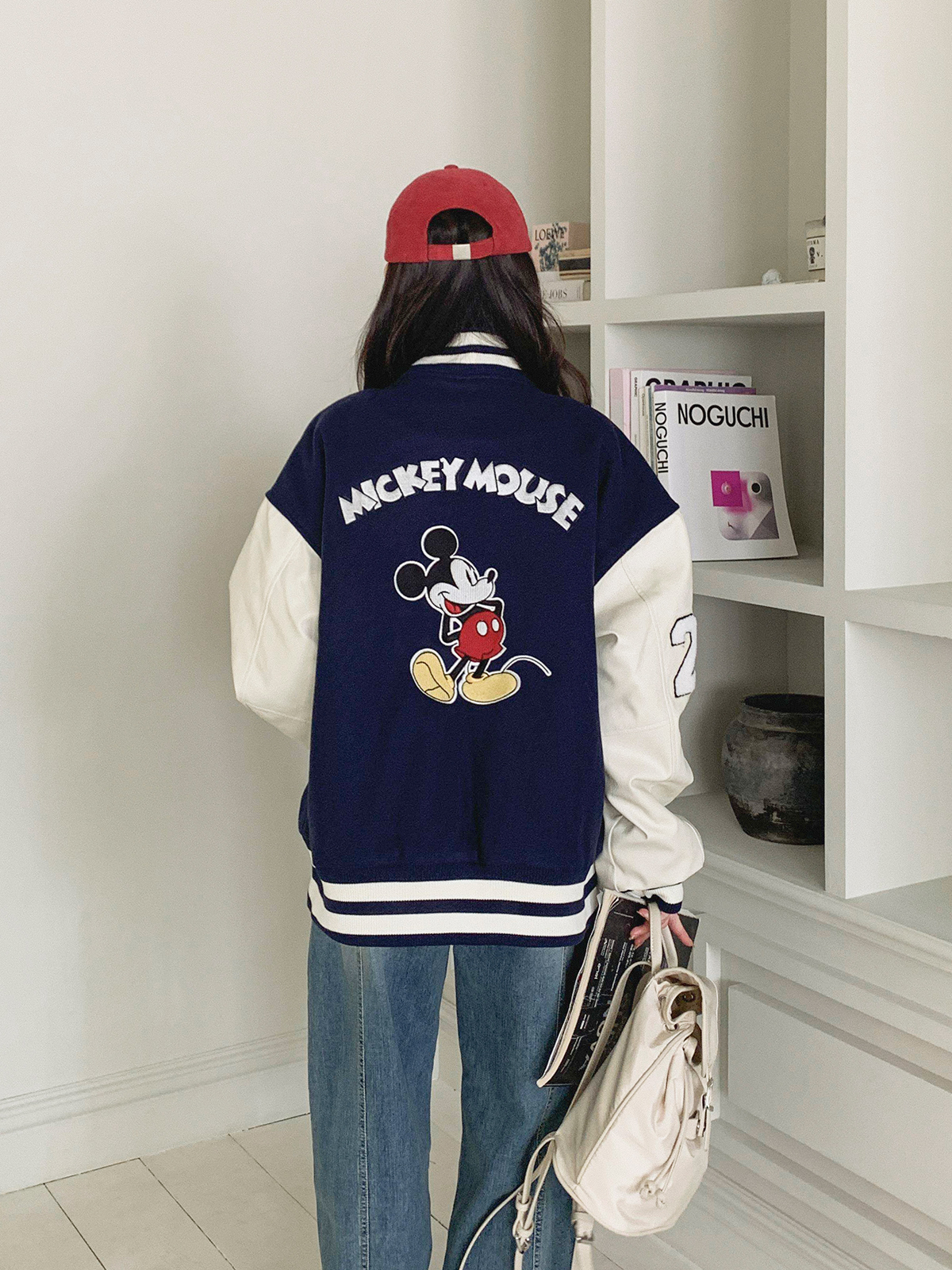 심플하면서도 캐주얼한 무드에 귀여운 미키 야구점퍼로