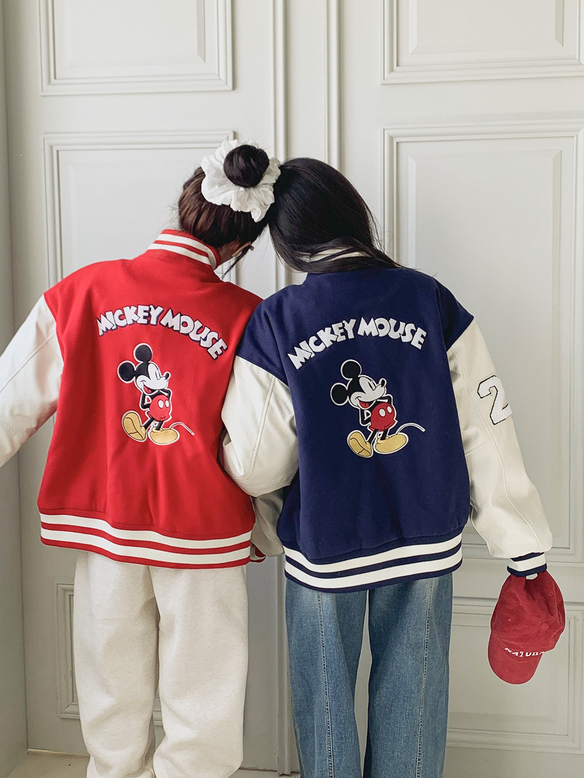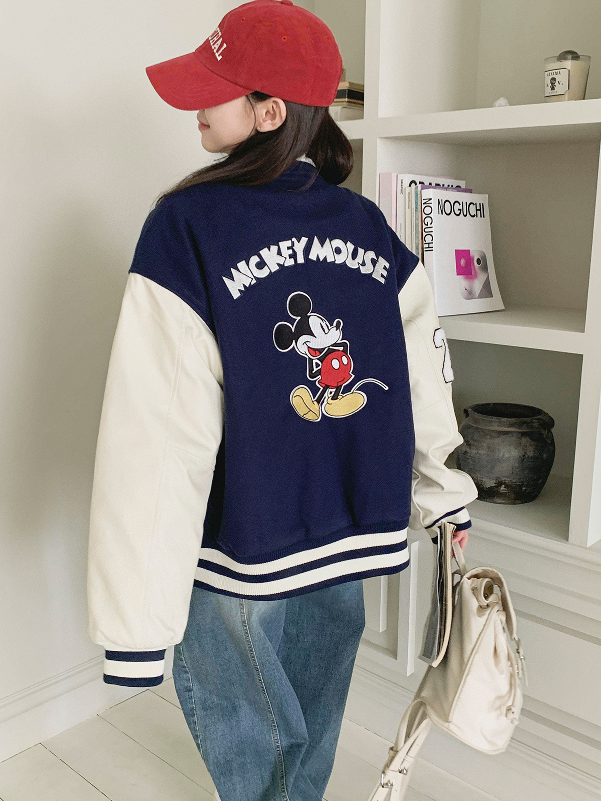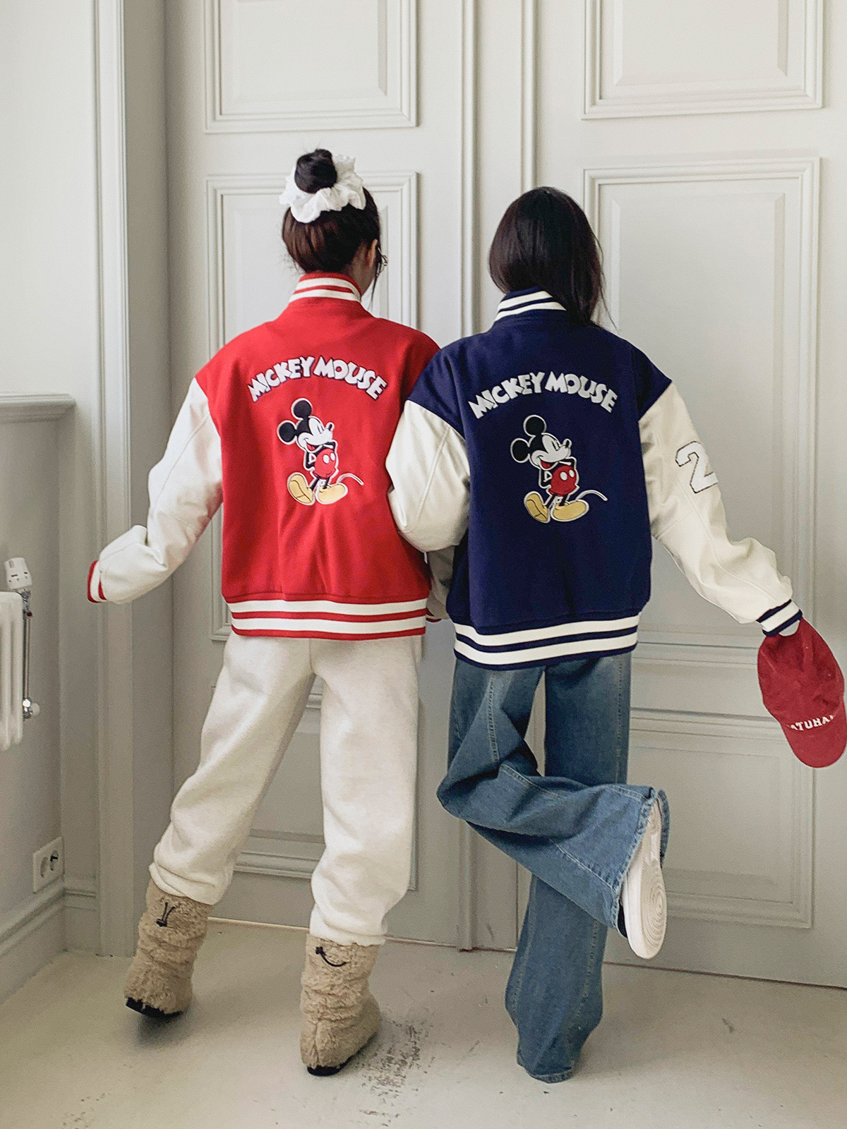 남여공용으로도 입기 넉넉한 안감 누빔으로 따듯한 미키마우스 자수 야구 점퍼